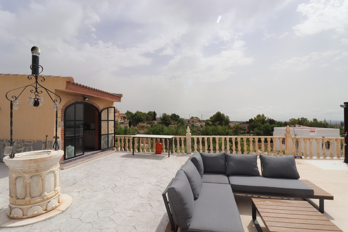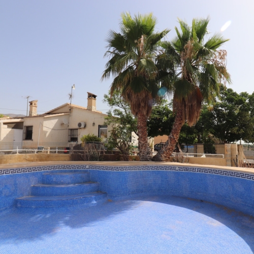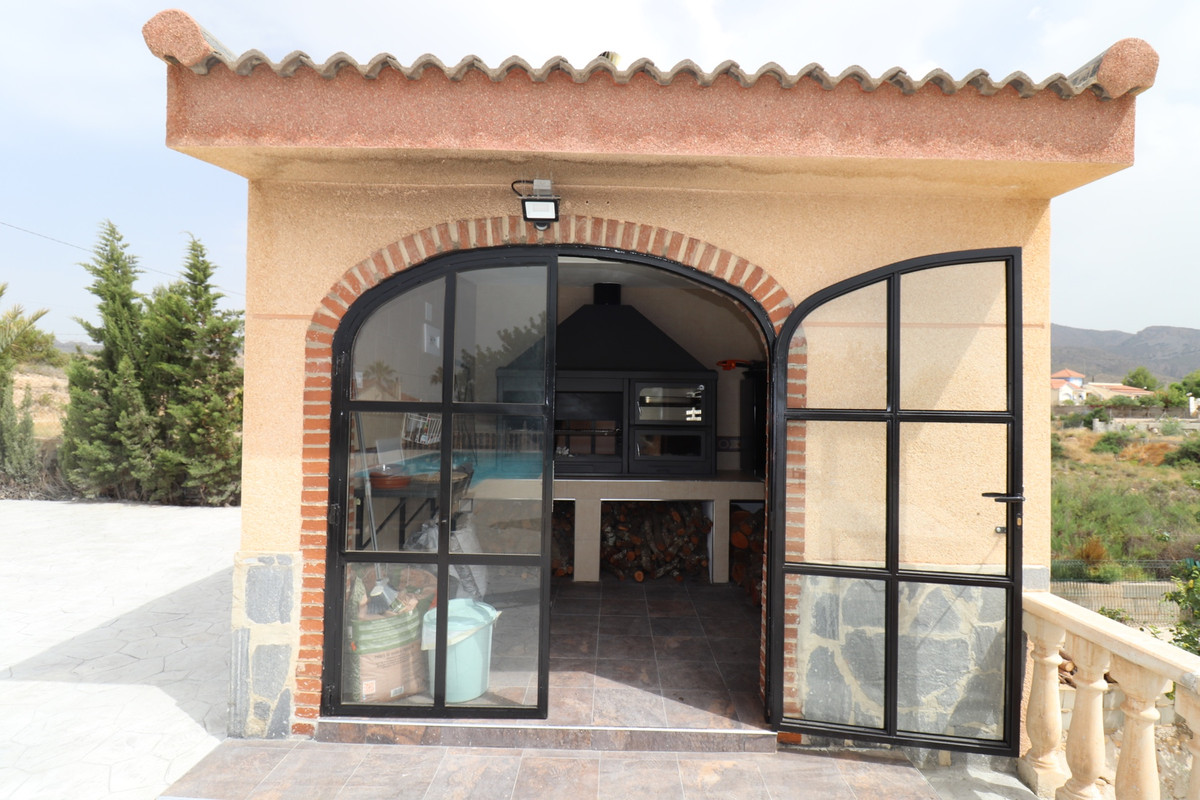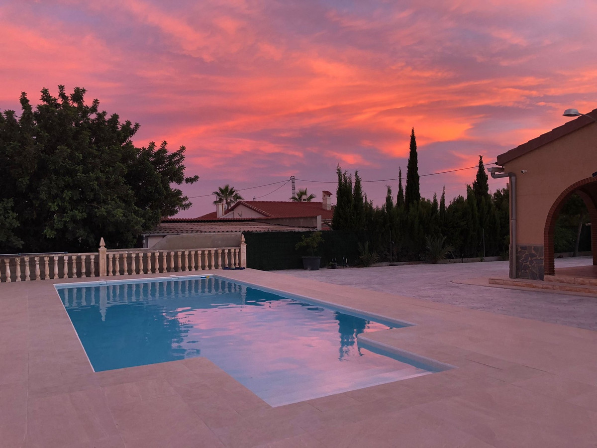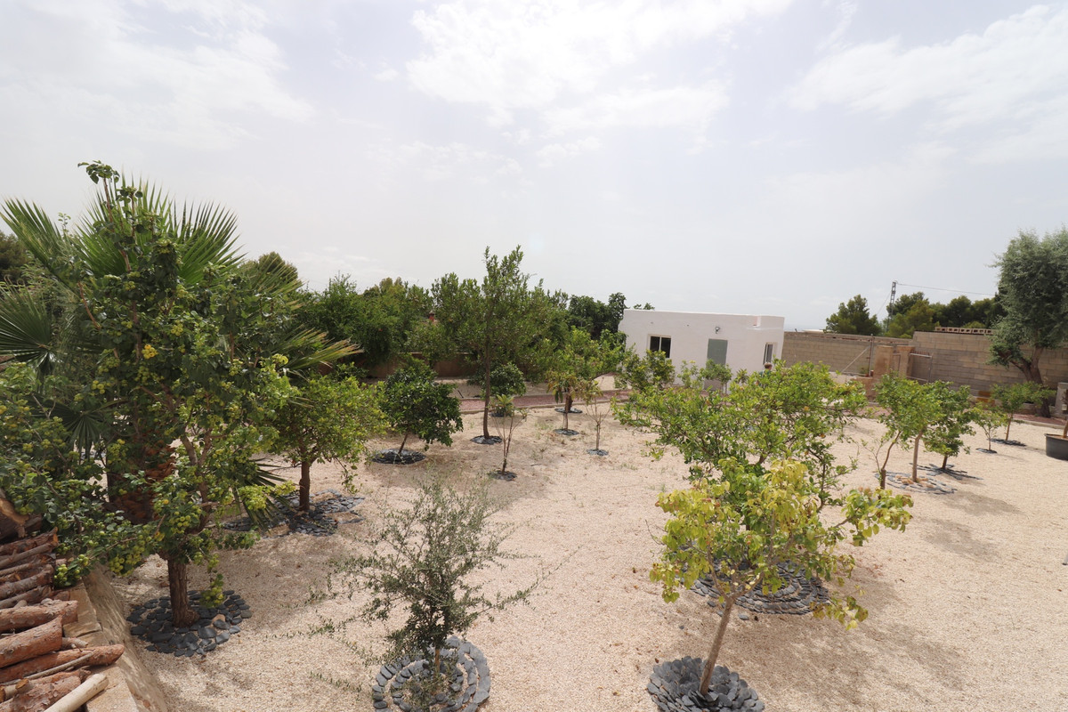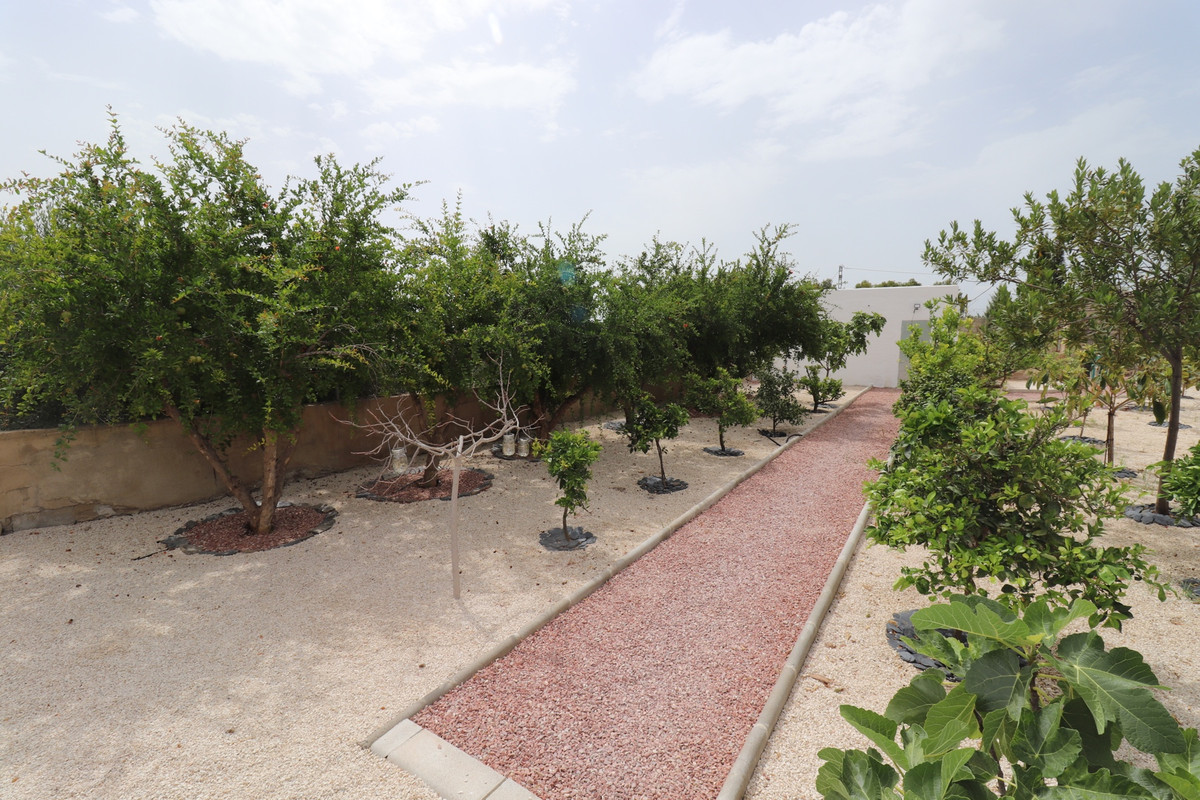 New listing direct from the owner! Beautiful detached country house in Albatera. This beautiful finca has neighbors but is privately located and has 4 very large bedrooms, each with air conditioning hot and cold. Upon entering the hallway, the living room and open kitchen are located on the left side of the house. The fully renovated bathroom has a walk-in shower and double sink. The open American kitchen is fully equipped with all necessary appliances and is in direct contact with the living room. The large living room has a fireplace but also a pallet burner and again an air conditioning cold and hot. The house is connected to electricity and water company Albatera. The wide veranda with direct contact with the large new swimming pool 10 x 5 and a separate outdoor kitchen with a professional barbecue makes outdoor living in this country house very pleasant. The large gardens and an olive grove give you a pleasant feeling of plenty of space and privacy. Located in a quiet area, 20 minutes from the beaches.