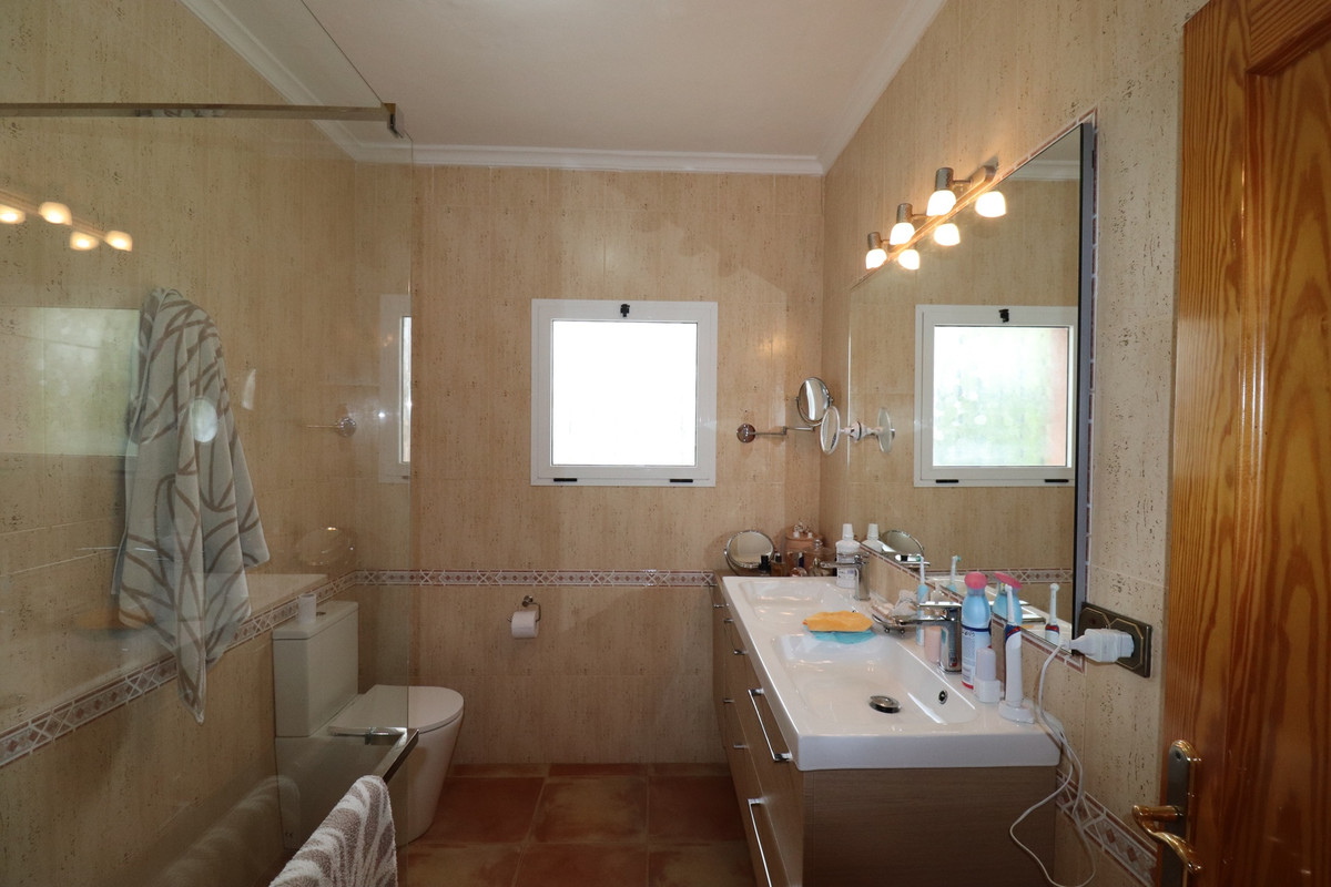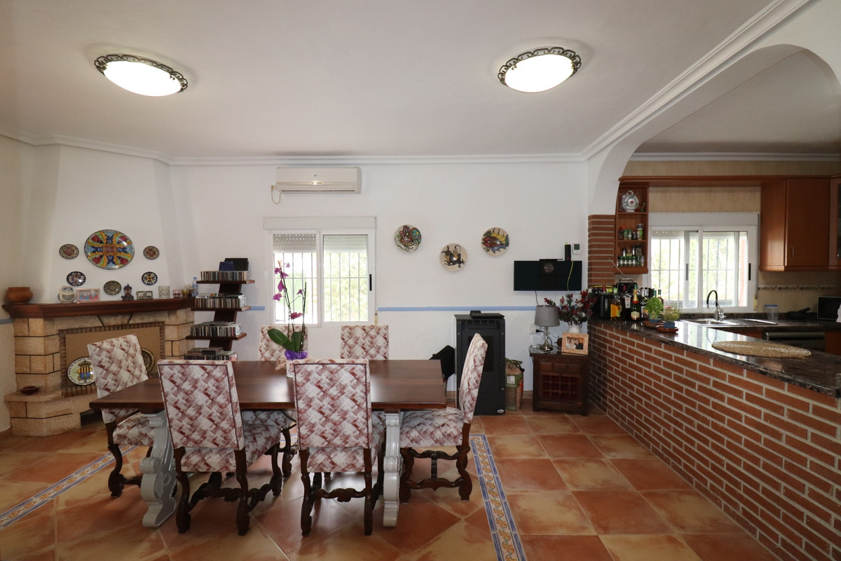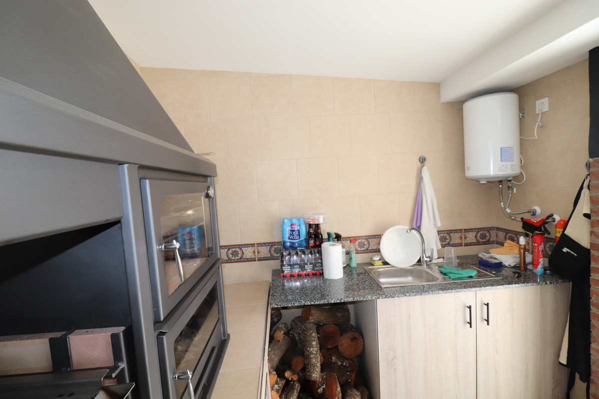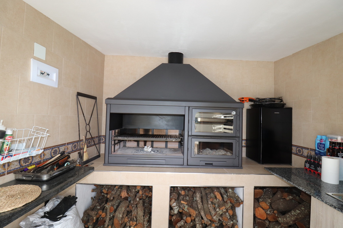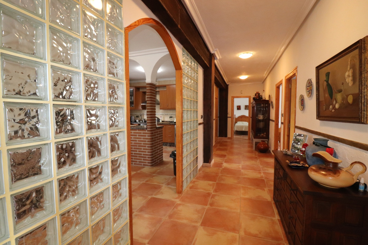 New listing direct from the owner! Beautiful detached country house in Albatera. This beautiful finca has neighbors but is privately located and has 4 very large bedrooms, each with air conditioning hot and cold. Upon entering the hallway, the living room and open kitchen are located on the left side of the house. The fully renovated bathroom has a walk-in shower and double sink. The open American kitchen is fully equipped with all necessary appliances and is in direct contact with the living room. The large living room has a fireplace but also a pallet burner and again an air conditioning cold and hot. The house is connected to electricity and water company Albatera. The wide veranda with direct contact with the large new swimming pool 10 x 5 and a separate outdoor kitchen with a professional barbecue makes outdoor living in this country house very pleasant. The large gardens and an olive grove give you a pleasant feeling of plenty of space and privacy. Located in a quiet area, 20 minutes from the beaches.