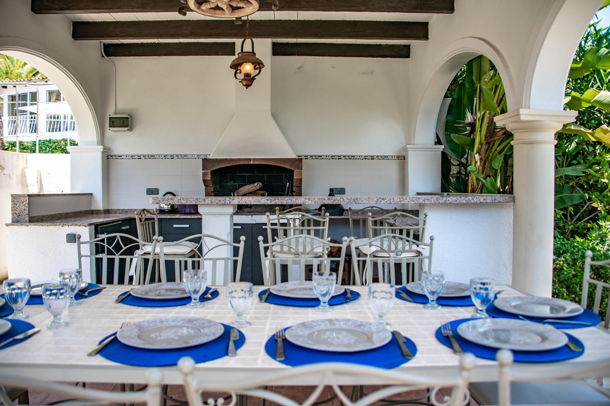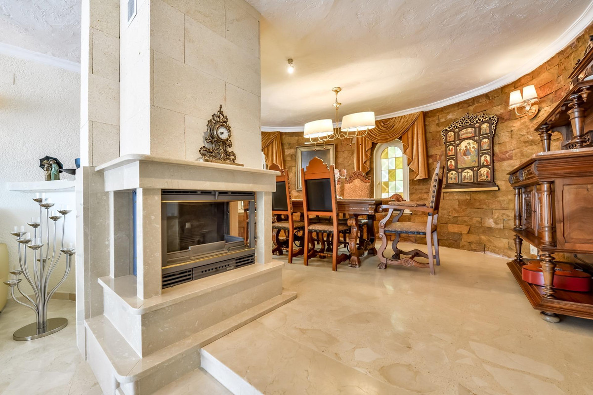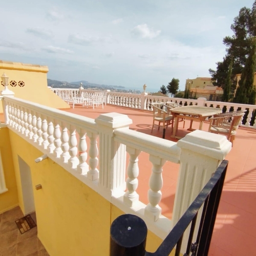 FOR SALE UNFURNISHEDThis stunning villa is for sale in the prestigious Canuta de Ifach urbanization in Calpe. Its prime location, just 63 km from Alicante, an hour's drive from Elche Airport, and an hour and a half from Valencia, makes this villa the perfect choice for comfortable living or unforgettable vacations.The villa, built on top of a terrace with breathtaking views of the valley, is spread across three levels. The upper level houses the main living area, the middle level features a stylish swimming pool, and the lower level is dedicated to a picturesque garden with a barbecue area, summer dining area, pond, and a children's playground.The main house is divided into two floors. On the first floor, you will find a spacious living room with a fireplace, a fully equipped kitchen, and three bedrooms, each with its own en-suite bathroom and dressing room. The second floor features an independent apartment with a living room, fireplace, a bedroom with sea views, and a private bathroom.Additionally, the property includes a cozy guest house with a kitchen, bedroom, and bathroom, perfect for hosting friends or family. There is also a closed garage and parking space for two cars.This villa offers everything needed for comfortable living: bright, spacious rooms, modern heating and air conditioning systems, as well as privacy and exceptional comfort. Feel free to contact us for more information or to arrange a viewing!