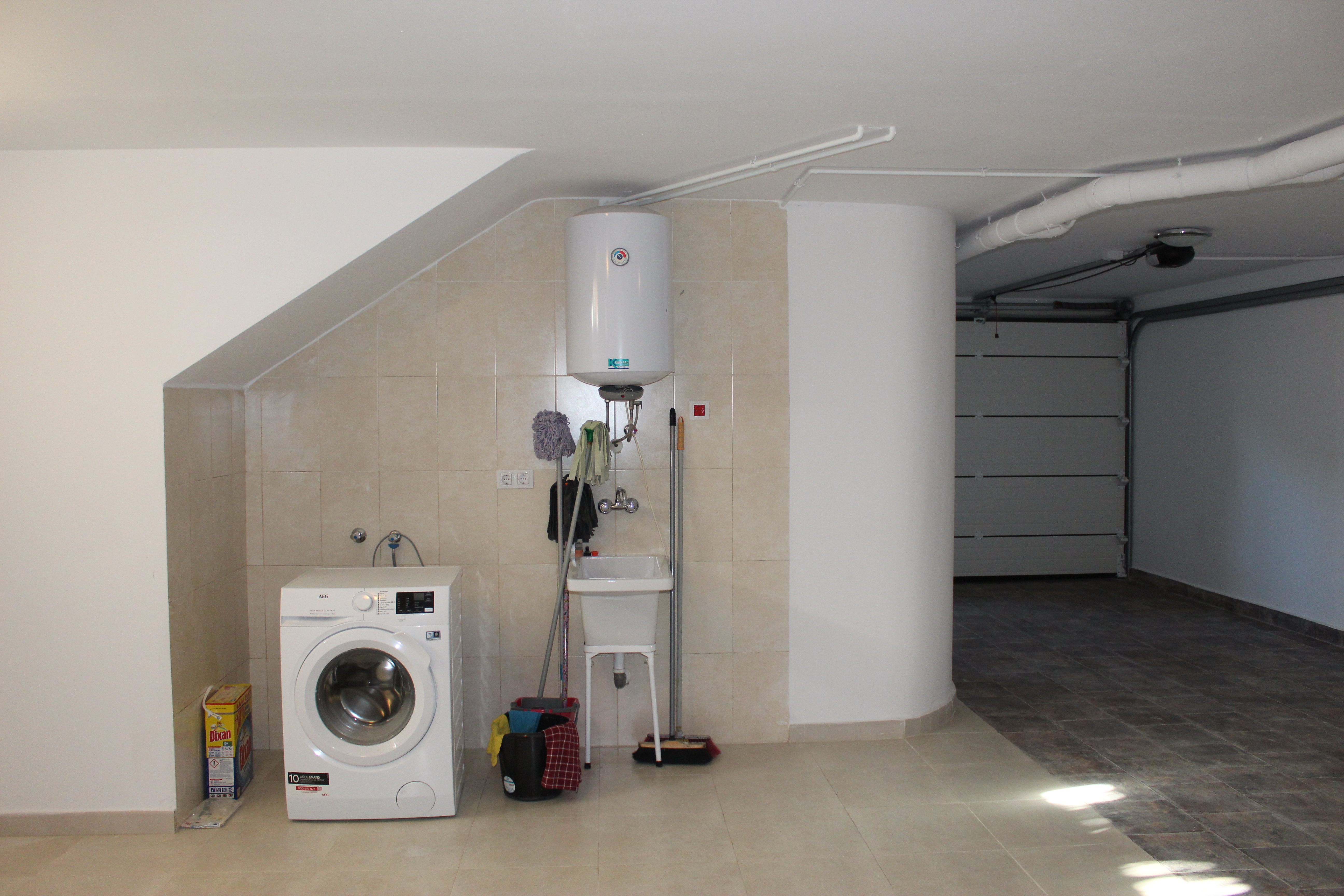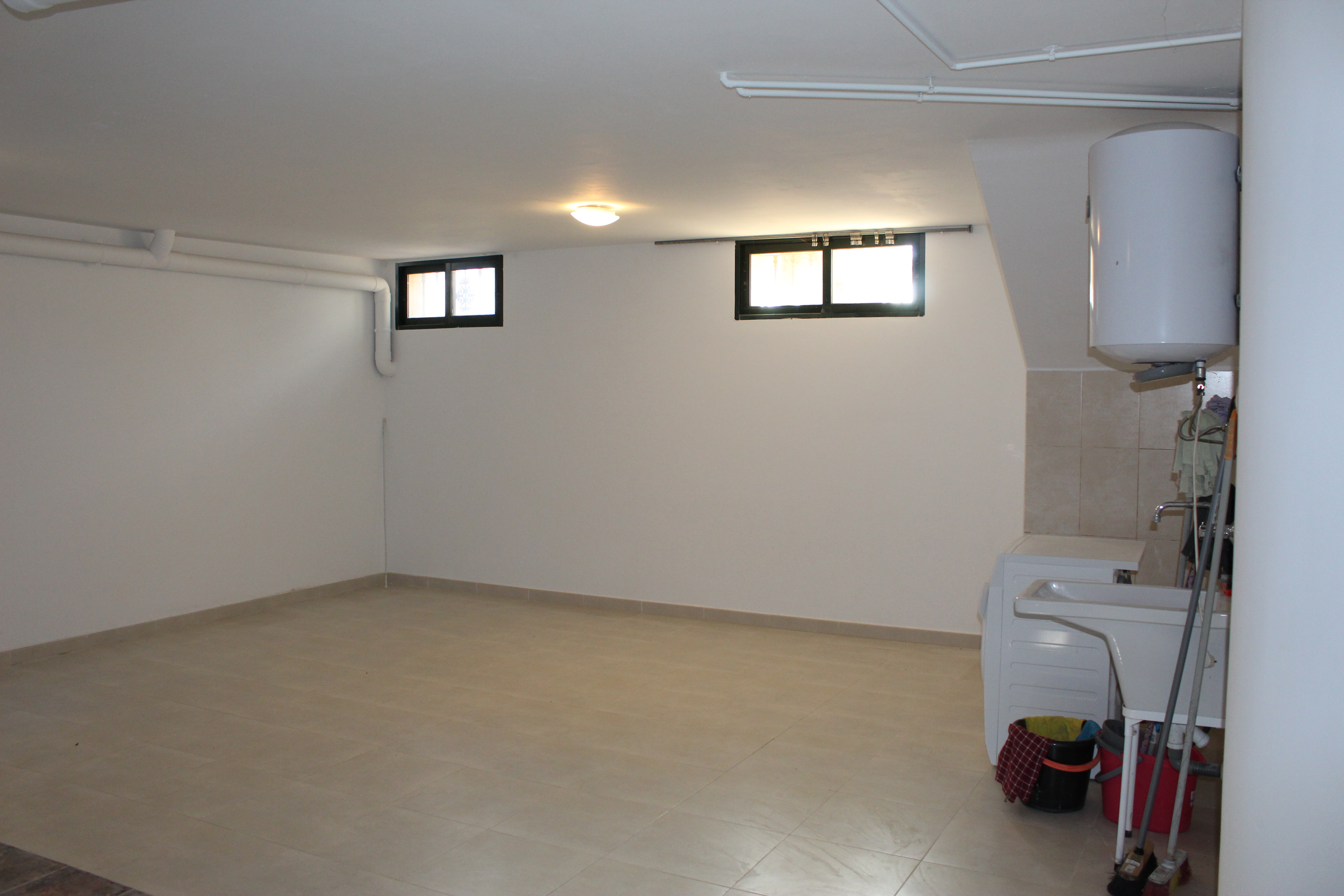 The basement / garage is large and spacious. It has a great opportunity to be used as an extra living room, several rooms with the possibility of a bathroom, bar, or storage room. Installations have been prepared and the basement is currently being used as a garage laundry room. A new electric door to the garage has recently been installed.