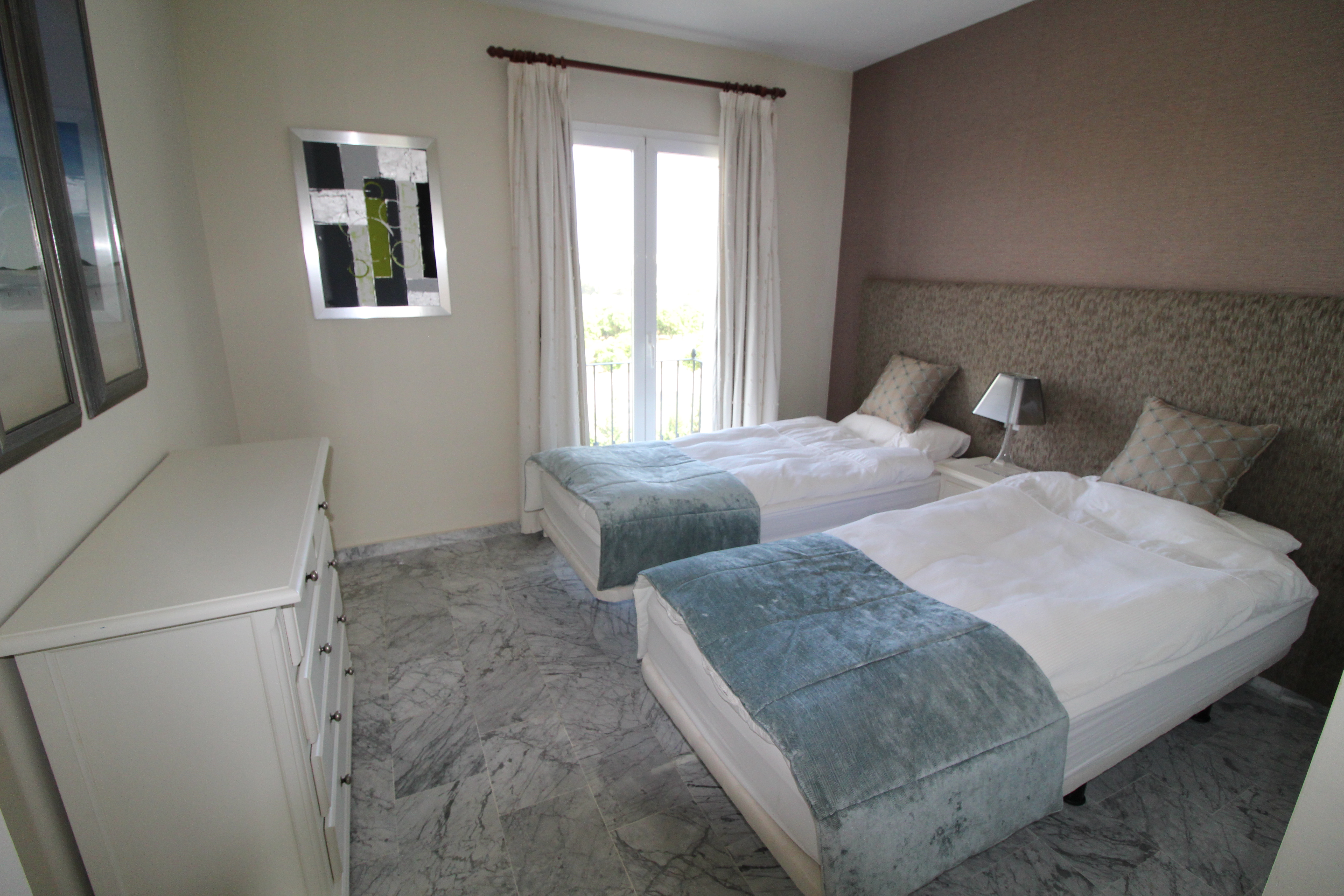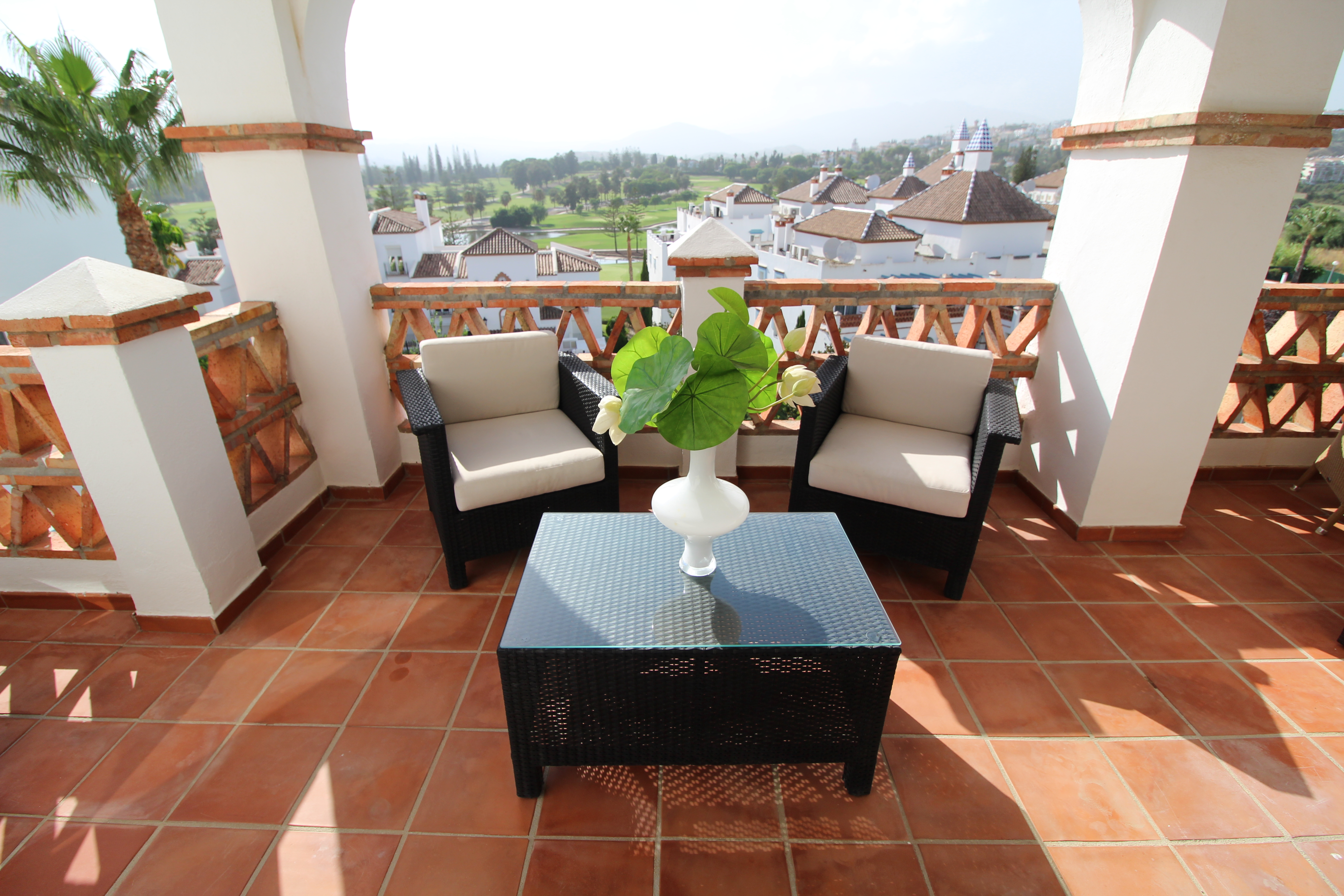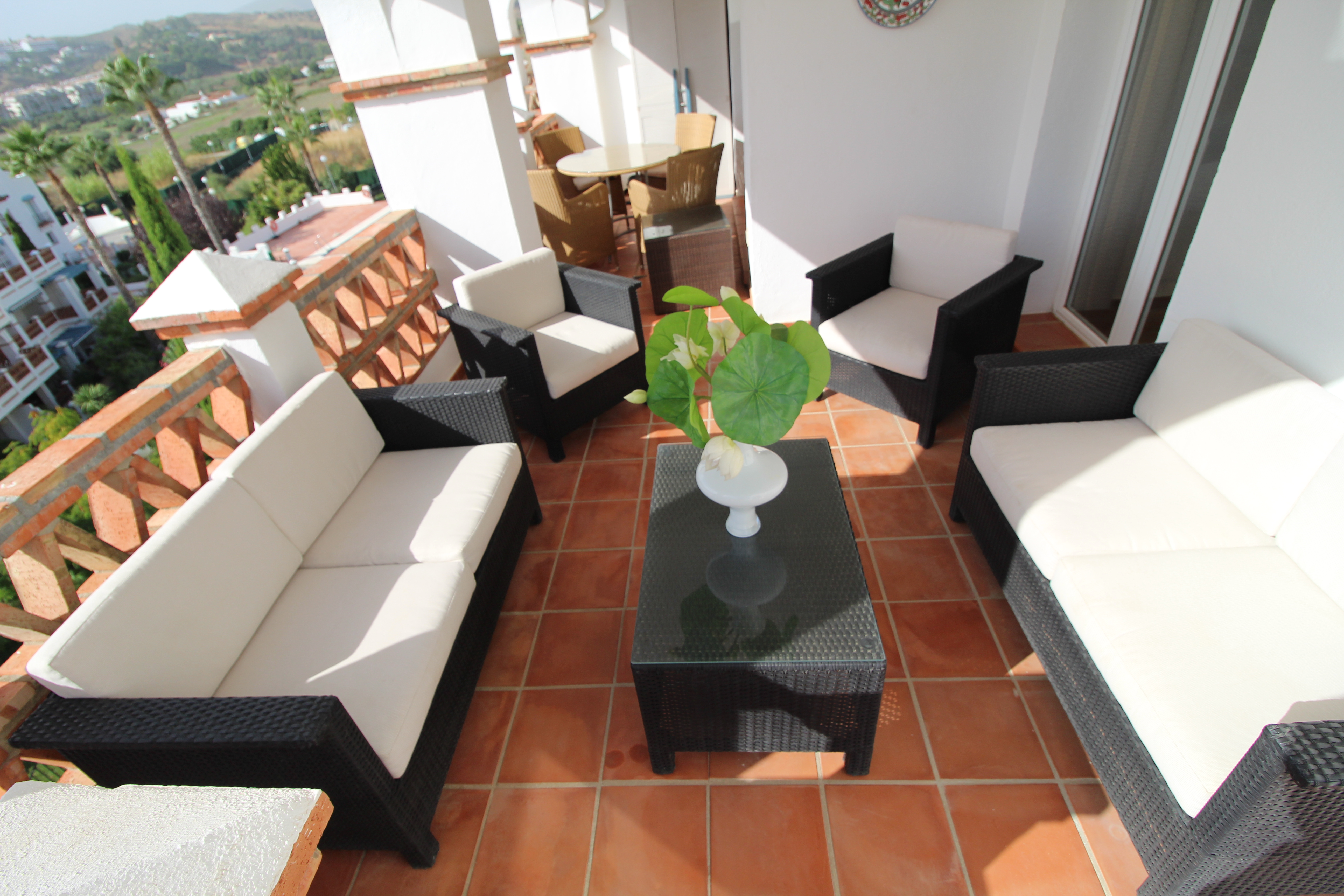 From the 30 m2 terrace you can enjoy the lovely view of the golf course and mountains. You will get the sun all afternoon and evening from here.