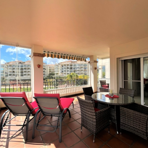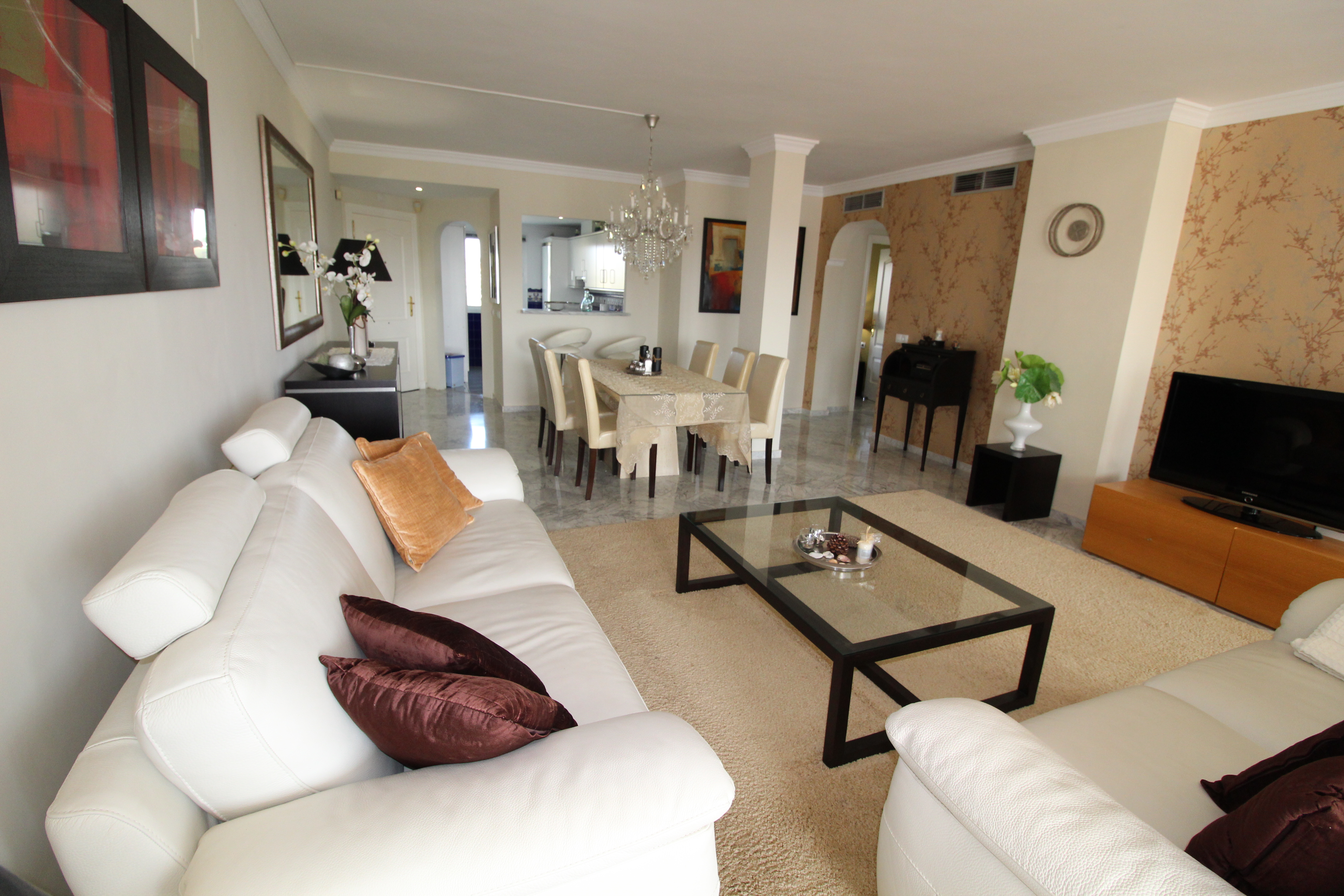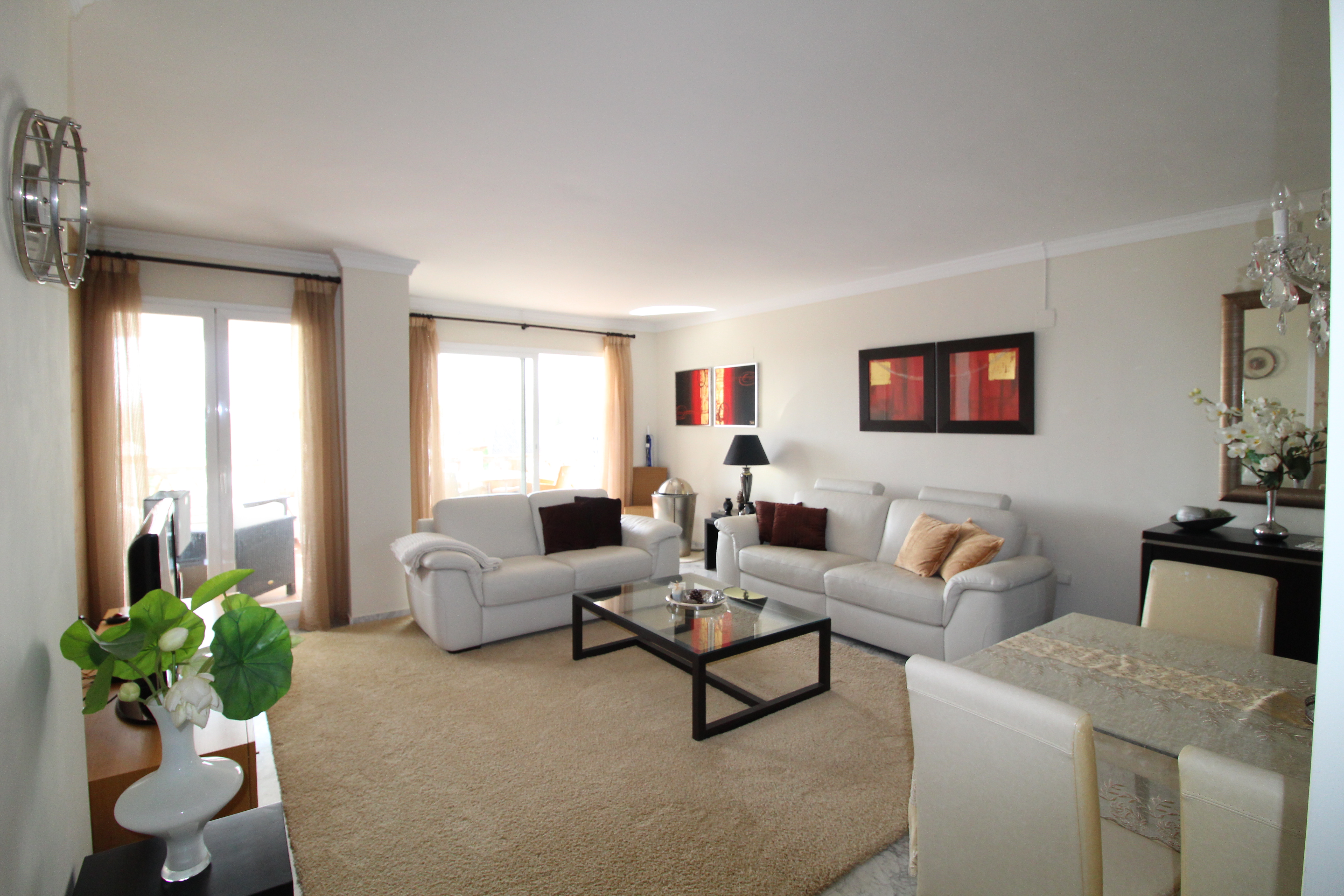This 124 m2 corner apartment consists of 3 bedroom and 2 bathrooms with a great size living room and terrace! From the living room and master bedroom you will find double doors to access the sunny terrace, where part of it is covered and open, so you get the choice to sit in the sun or shade.