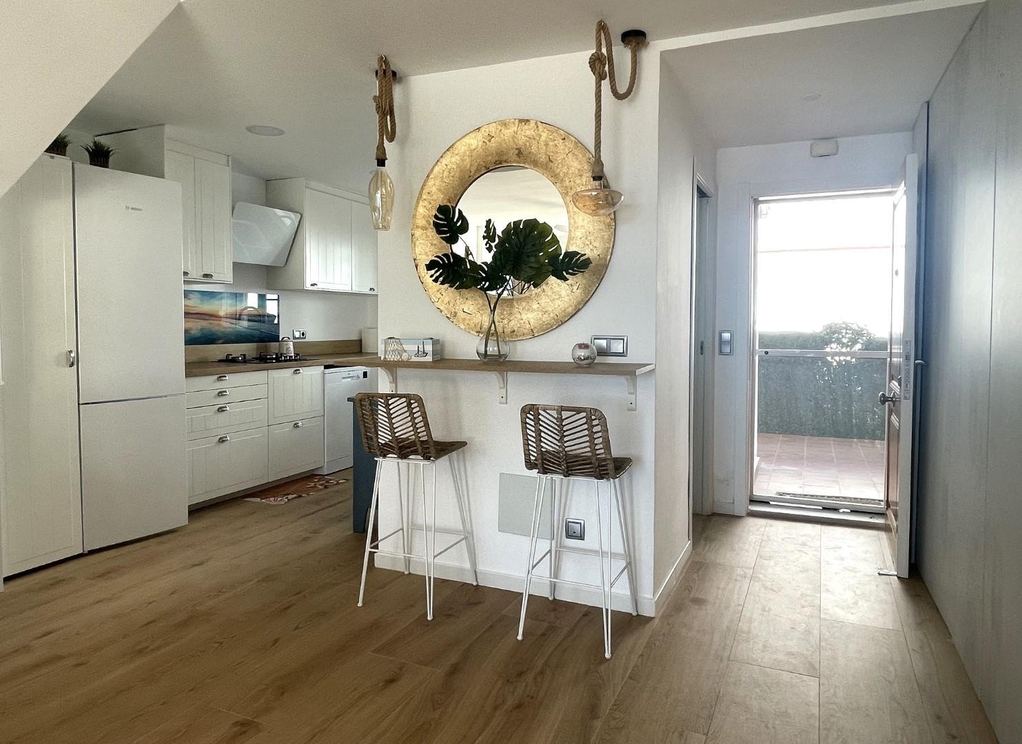 renoverad, strand i första linjen, luftkonditionerare, terrass, takterrass, underjordisk parkering, gemensam pool, delvis möblerat, havsutsikt