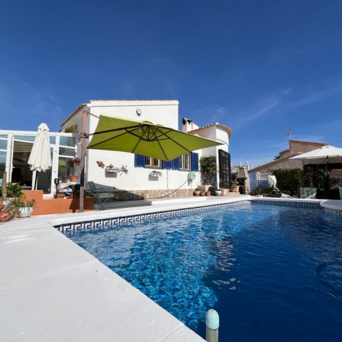 Modern villa with 3 bedrooms and 2 bathrooms. The property is distributed on 2 floors, on the ground floor there is a living-dining room with open kitchen, 1 bedroom and 1 bathroom. Upstairs we will find 2 bedrooms, a bathroom and a terrace. The house also has a large solarium of 37m2. The villa also has a private pool and private entrance for the car. PAU 26 is a beautiful residential area of Orihuela Costa with all the services and amenities between the golf and the sea. Nearby is the shopping center La Zenia Boulevard. Also nearby is the Villamartin Golf Course, Real Club de Golf Campoamor and Las Ramblas Golf Course, surrounded by schools, shopping centers, restaurants, pharmacies, bus stops that favor the stay throughout the year. It connects easily with the national road N-332 and the Mediterranean freeway AP-7. The beaches of Orihuela Costa such as La Zenia, Campoamor and Playa Flamenca are just a few minutes away by car: Colinas, Campoamor, Las Ramblas and Villamartin.