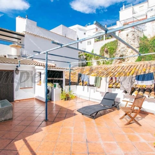 Totally refurbished modern terraced house in one of the top complexes in the area. approx. 114 m2 built on 2 floors. downstairs with newly fitted and fully equipped kitchen, open plan light dining/lounge area leading onto the large terrace and garden with small gate to the communal area, guest-toilet and stairs up to the first floor with 2 double bedrooms and 1 single bedroom with built-in wardrobes, 2 renovated bathrooms (1 en suite). upstairs there is a laundry area and 2 large newly tiled roof terraces. the house benefits of many extras like infrared heating, air conditioning, partly new floors inside, renovated to a very high standard.