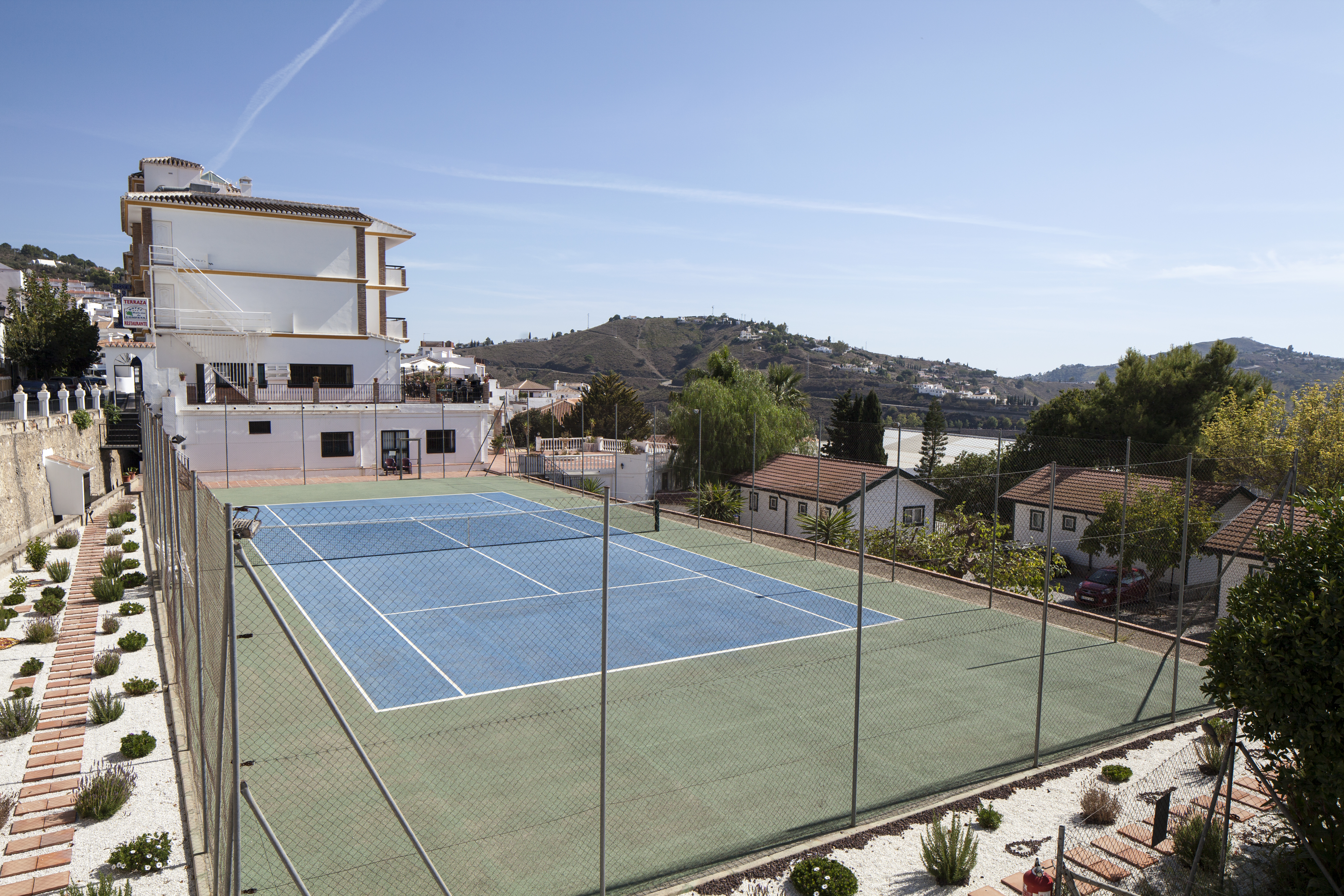 With a unique enclave and situated among the beautiful white houses, you will find the hotel that offers all the accommodation and comfort to its visitors. Hotel and the bungalows are complemented by an a la carte restaurant, cafeteria, swimming pool, tennis court, free parking for its customers and a large event/meeting room.