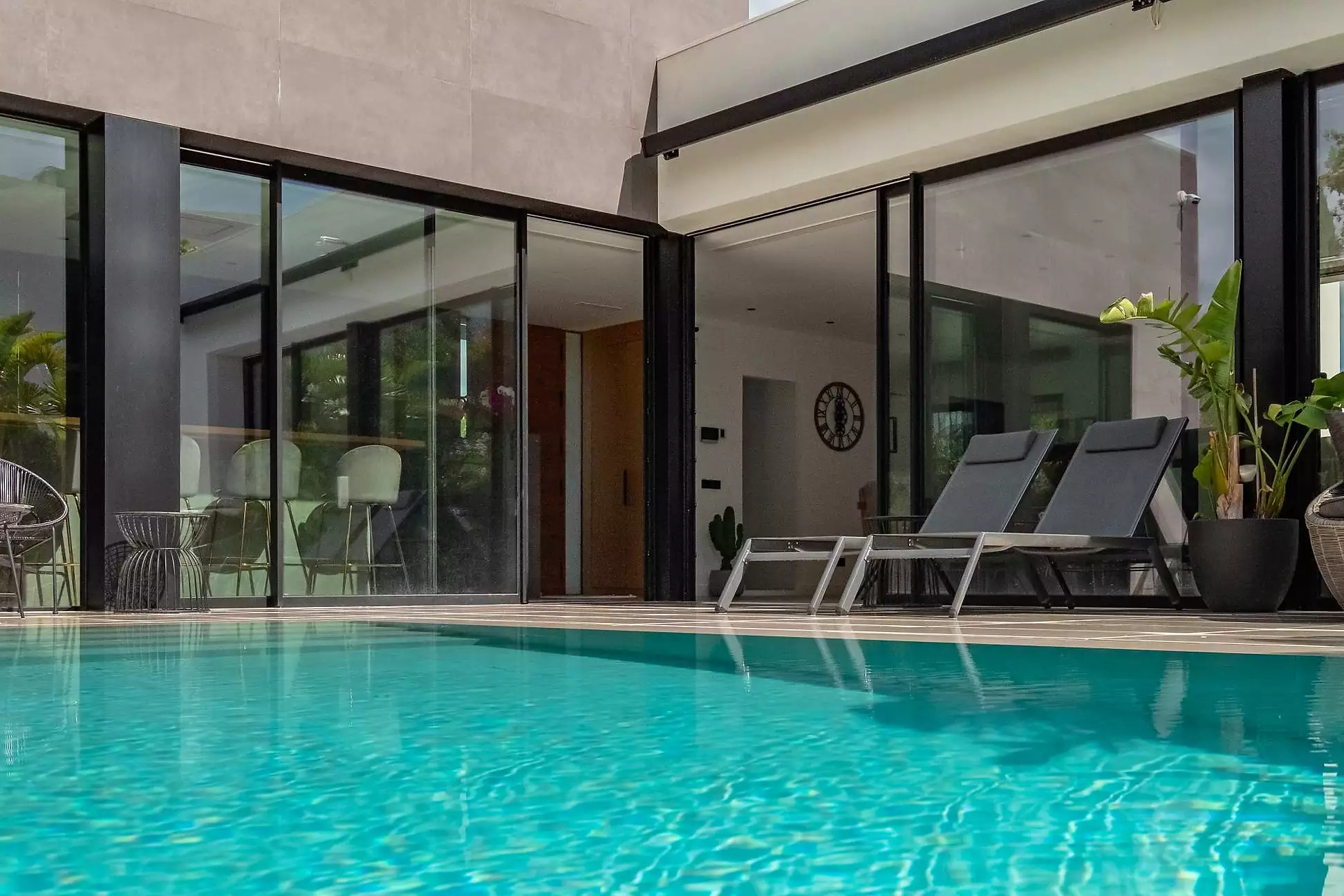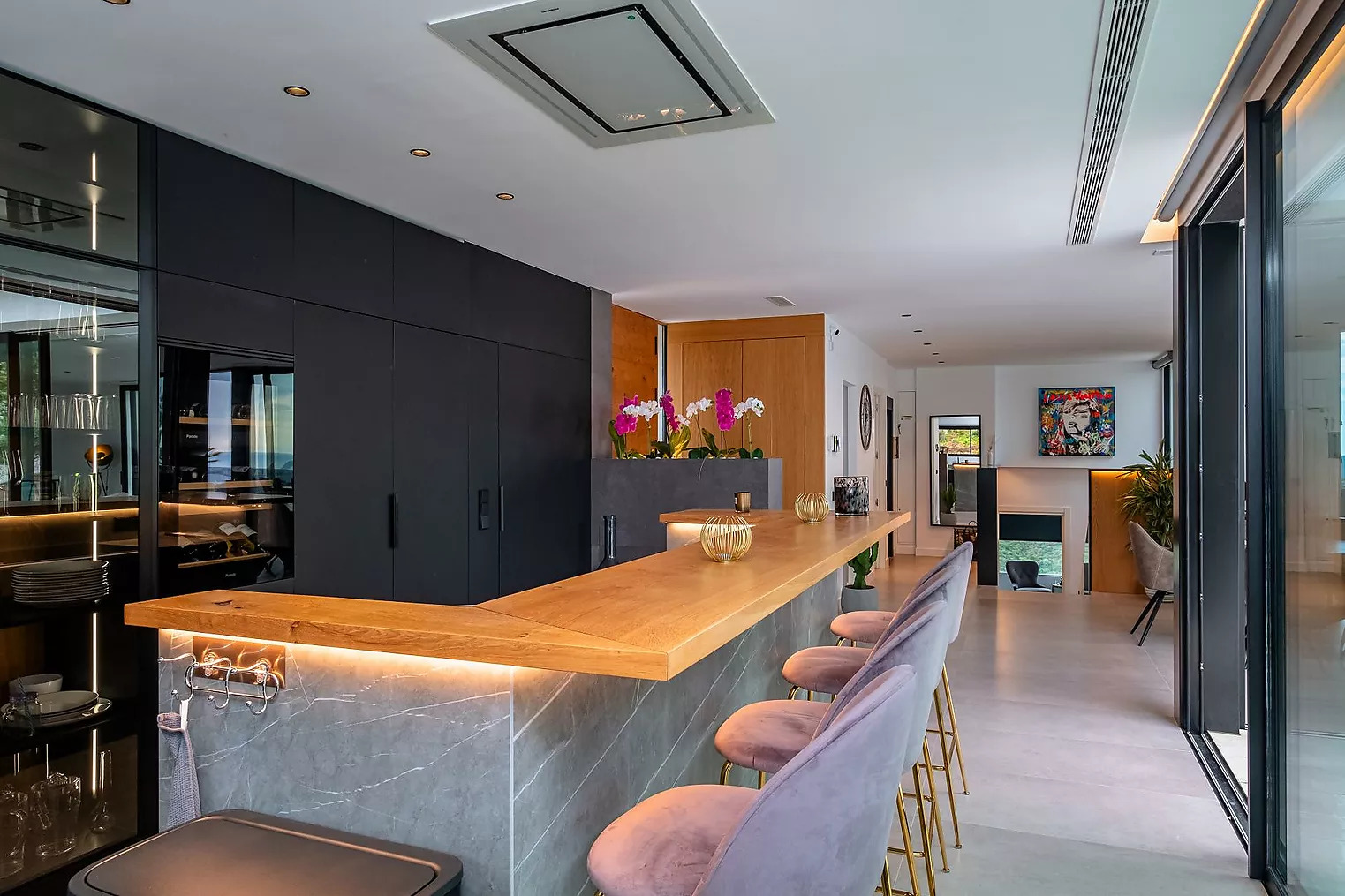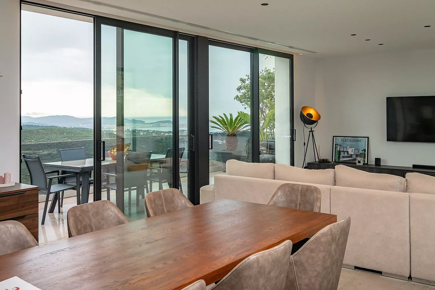 Detached Modern Villa with Superb Sea Views Detached modern villa constructed in 2021 with amazing sea views. This villa is located in a quiet, peaceful residential development just a 5 minute drive to Platja d'Aro. The villa is situated on three floors: the ground floor features a spacious double garage, a movie room, and the elevator. On the first floor there are three double bedrooms (one ensuite), all with superb sea views and a full bathroom. On the second floor is the primary living space with a designer kitchen, open plan living and dining room, with access to the terrace and pool, plus an additional spacious terrace with optional shade. There is also the main ensuite bedroom, an additional bathroom and the laundry room, with direct access to the garden. One floor living with amazing sea views! The terrace around the pool also features space for loungers, BBQ and al fresco dining, a jacuzzi and the pool maintenance room. Underfloor heating and air conditioning throughout the villa, and sun all day on the pool area. This is a very well designed and practical villa, perfect for either full time living or a luxury home from home. Platja d'Aro, located in the heart of the Costa Brava, is one of the most popular resorts in the Mediterranean. Combining a rich historical heritage that dates back as far as the 1st century BC with a modern and dynamic atmosphere. Today this five star beach resort is the most important coastal town in the area. For the best villas for sale in Platja d'Aro contact Costa Brava Fincas.