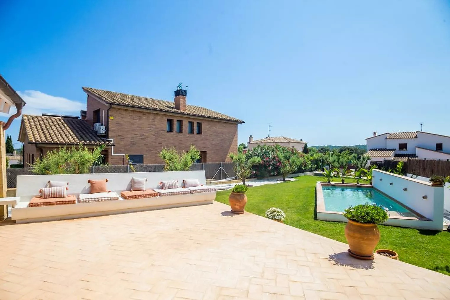 Detached house with pool in Vall-llobrega Completely renovated individual house located in the beautiful municipality of Vall-llobrega, just a few minutes by car from Palamós and the beautiful beaches of La Fosca and Castell. Located in the center of this beautiful town, the house is within walking distance of restaurants, shops and school. There is a pharmacy and a supermarket just 500 meters away. This impressive house has three floors: on the ground floor there is a double garage, plus a cellar and games room. On the first floor we have a large kitchen, living room and dining room. A suite and a laundry room. On the upper floor there are three more rooms. An elevator connects the three levels. The house faces south and together with the covered porch, the garden and the magnificent pool, it is a perfect property as a regular residence or holiday home. For the best houses for sale in Vall-llobrega contact Costa Brava Fincas!