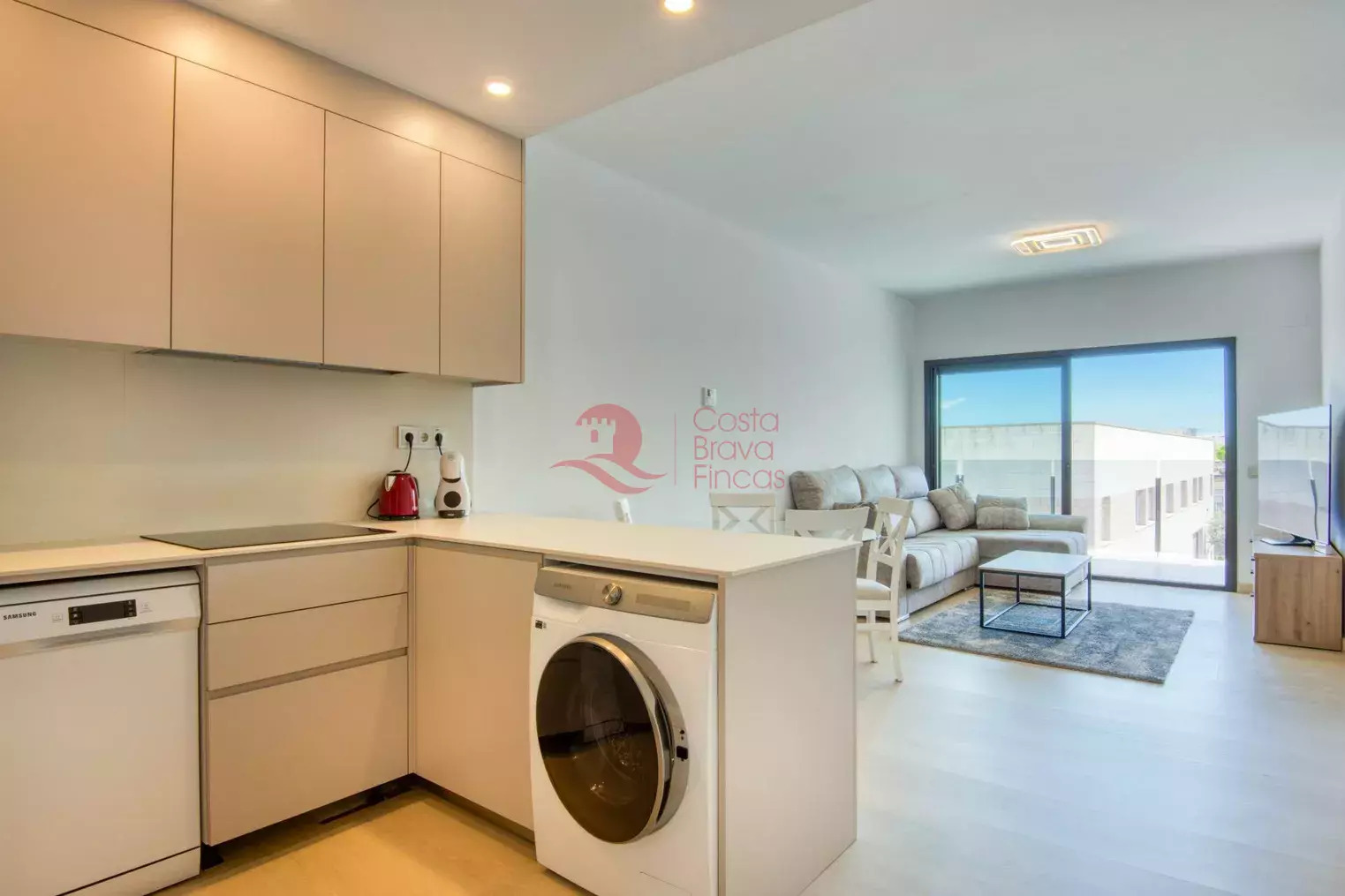 Modern apartment in Platja d'Aro Penthouse with a large terrace and private solarium of 24.25 square meters, equipped with water and electricity connections. This charming space features a bright living-dining room that merges with an open kitchen, along with two cozy double bedrooms and a modern full bathroom. The details in the kitchen, bathrooms and flooring are distinguished by their high quality, supplied by the prestigious brand PORCELANOSA. The climate control, for both heating and cooling, is managed through aerothermal technology from the renowned brand HITACHI. The east and southeast orientation provides the best exposure to take advantage of the morning light and warm sun. The property is located in a quiet area, ideal as both a primary and secondary residence. It has a children's park right in front and the parc dels Estanys to one side, as well as a wide variety of services just a few meters away, such as supermarkets, schools, preschools, and a health center. Only 1000 meters from the beach and 800 meters from the center of Playa de Aro, this location offers a perfect combination of tranquility and accessibility. CCE: B-27, A-4. For the best apartments for sale in Platja d'Aro and the Costa Brava in general, contact Costa Brava Fincas.