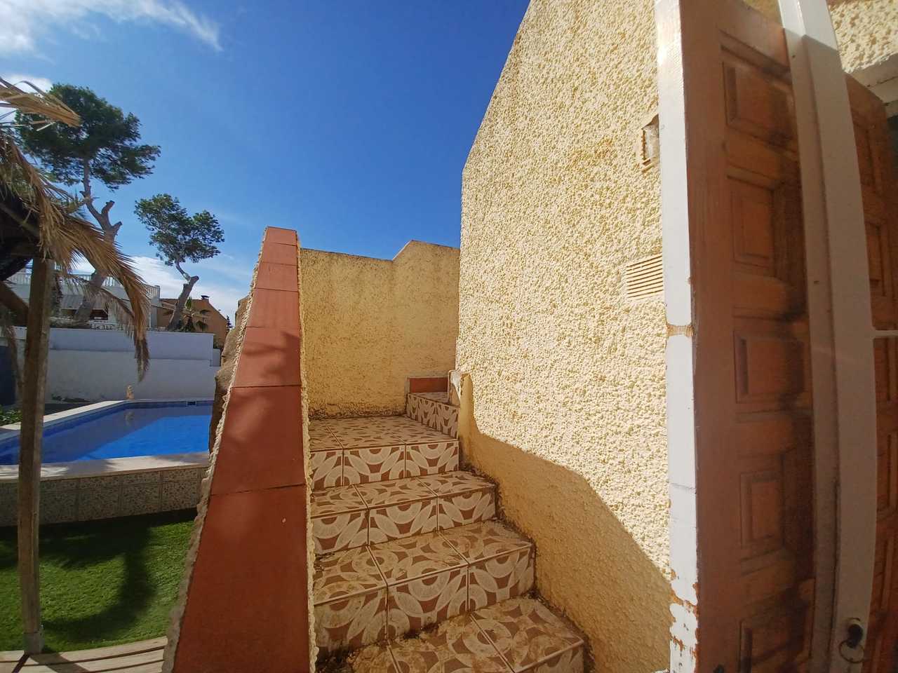 Welcome to this charming two-bedroom, two-bathroom house located in the desirable neighbourhood of Los Balcones. As you make your way up the stairs to the front entrance balcony, you will be greeted by a cosy living room and open kitchen - perfect for entertaining guests or relaxing with family. This stunning property also features an underbuild, storage room, and a huge outside space that is ideal for gardening or outdoor activities. The beautiful solarium offers breath-taking views of the surrounding area, while the private pool provides a tranquil oasis for hot summer days. In addition, there is a convenient shed included on the property for extra storage space as well as an extra storage room to the left of the underbuild. Don't miss out on this incredible opportunity to own a piece of paradise in Los Balcones - schedule you’re viewing today!