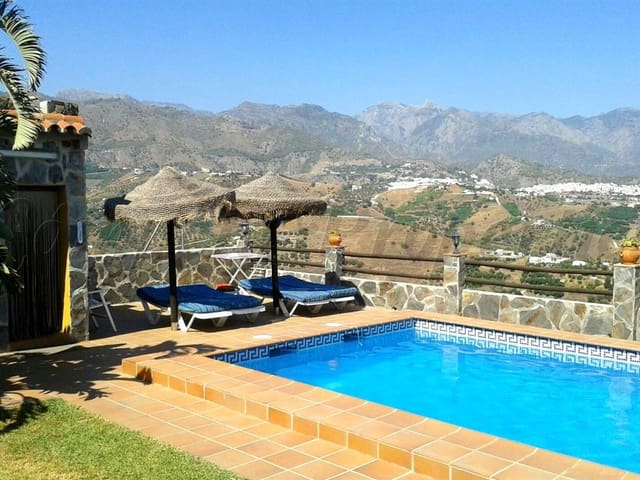 En charmig villa i Spanien i söderläge mellan de vackra byarna Frigiliana och Torrox, nås via asfalt och betongväg. En otrolig fastighet med magnifik utsikt över bergen, mot Frigiliana, Medelhavet och de riktigt klara dagarna ser du även Afrika. Denna trevliga fastighet har ca 120m2 boyta och har en stor terrass där du kan njuta av soliga Spanien. Infarten har grind, det finns en trädgård och ett trevligt poolområde med 6x4 m pool och en stor uteplats med grill. På framsidan finns en stor terrass på 24m2 som passar utmärkt för middagar utomhus. En vacker trädörr öppnar upp till huset. Det består av ett stort vardagsrum med matrum och fullt utrustat kök. Både vardagsrummet och köket har öppen spis. En hall leder till ett master-bedroom med ac, ett trevligt dubbelrum och ett badrum med badkar. Fastigheten har även ett badrum ute med dusch i angränsning till poolen och en utmärkt takterrass med panoramavy. Occupied until 30/04/23.