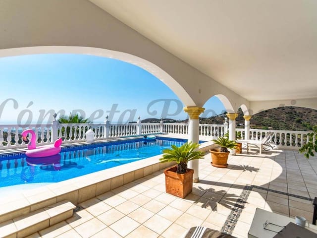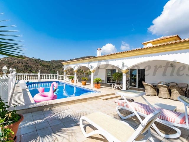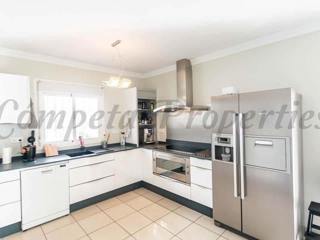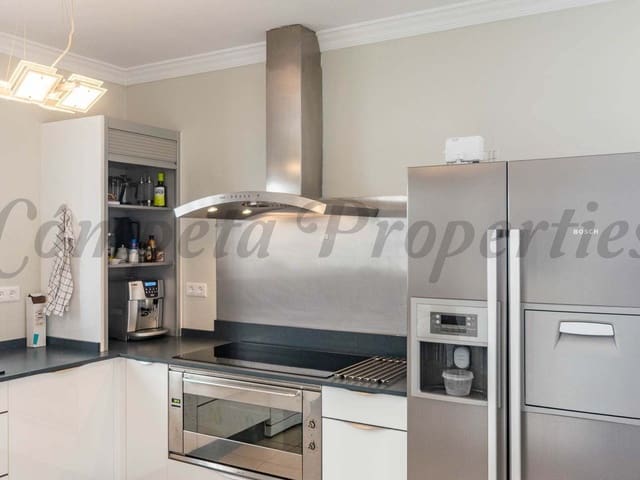This stunning property is located just 5 minutes away from the main village of Torrox with great access its an ideal property to enjoy a tranquil vacation. The house is finished to a very high standard with premium appliances and beautiful modern finish. This property has a main house and a separate apartment located under the property. It has 4 bedrooms plus a sofa bed providing ample amounts of space for many guests. It has 3 bathrooms one of which is a family bathroom having access from both bedrooms. There is a large pool with brand new anti-slip tiles located all around. The property also comes with premium sun loungers, a pellet burner for the winter, modern A/C, a summer lounge and a large garage. With mountain and sea views visible from the multiple terraces this property is perfect for family gatherings and luxurious retreats.