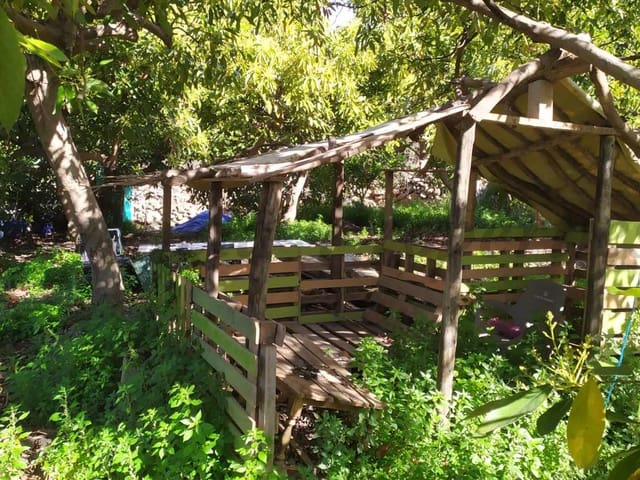 Det har bekvämligheter som ett förråd för förvaring av material, ett badrum och en terrass som är idealisk för att koppla av och dela stunder med vänner eller familj, utrustad med en grill. Det finns också utrymme för expansion, till exempel en grönsaks trädgård eller installation av ett växthus.