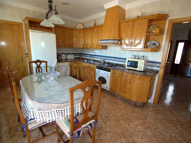 The house has large terraces, a wide open terrace at the front of the house with an attractive natural stone wall and at the rear the covered terrace with a summer kitchen with beamed ceilings.