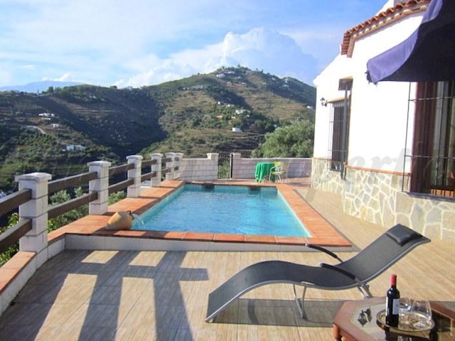 Lovely modern holiday villa with private pool located in a quiet spot in the countryside of Cómpeta. This country property has got a wonderful terrace with pool and BBQ area where one can enjoy the beautiful views of the impressive mountains and down over the countryside to the Mediterranean.