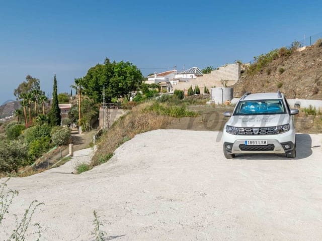 Platån har cirka 500 m2 där du kan bygga gårdsbyggnaden och lägga in en överjordisk pool, med terrass framför och bakom. Tillgång sker via mestadels cementerade körfält bara 3 minuter från A-7207-vägen mellan Torrox och Cómpeta.