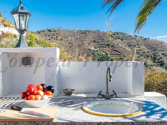 Available from october to march. A stunning villa with a private swimming pool in Spain situated in one of the white villages of the Axarquía and only a few minutes’ drive from the pretty village of Torrox and about twenty minutes from the beaches of the Costa del Sol. This superb south facing property has magnificent views over the verdant countryside to the Mediterranean and one can enjoy the view while sitting on the wide expanse of terracing or sitting around the pool and outside barbacue area. A truly fabulous home entered via a winter terrace. The interior consists of a bright living room, equipped and fitted kitchen, two double bedrooms, a room with sofa bed and ensuite bathroom with a shower and family bathroom also with a shower. There is air conditioning in the kitchen and living room, double climalit windows, heating and wood burning fire make the property comfortable to live your holiday all the year round.