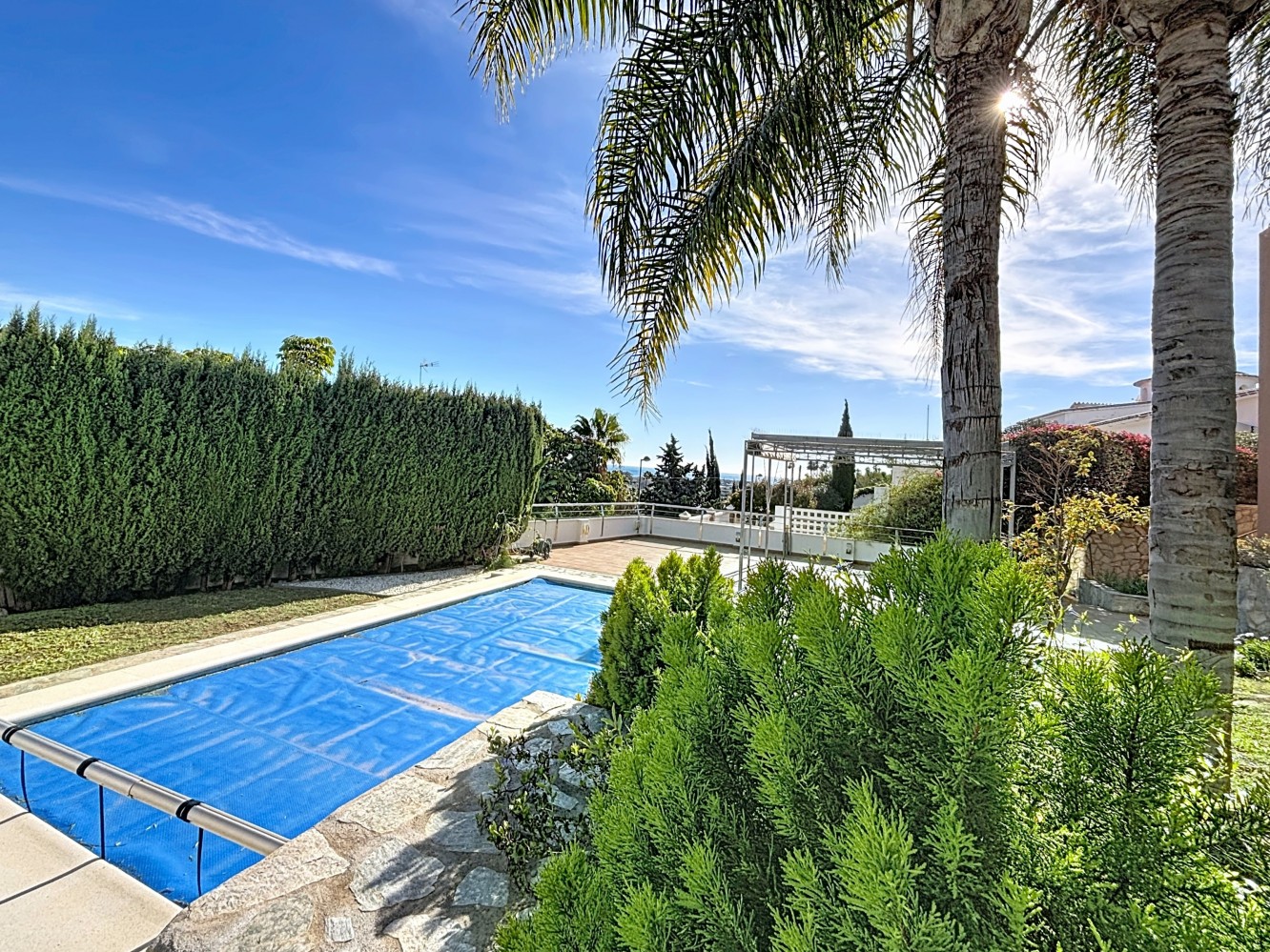 Upptäck ditt paradishörn i detta fängslande hem med tre sovrum och tre badrum, beläget i den eftertraktade El Capitan-urbaniseringen. Uppdelad över två våningar kombinerar denna fastighet perfekt modern komfort med den avslappnade elegansen i den spanska livsstilen, och erbjuder möjligheten att skapa två extra sovrum efter dina behov. Från första stund välkomnar lägenheten dig med en ljus och livfull atmosfär. Vardagsrummet, badat i naturligt ljus, utmärker sig med sina inslag av limegröna toner som ger energi och värme. Bekväma soffor i mjuka färger skapar den perfekta platsen för att koppla av eller underhålla, medan stora fönster erbjuder vackra vyer över omgivningen. Köket är utformat med både funktionalitet och stil i åtanke, med trämöbler, moderna apparater och rymliga arbetsytor. Stora glasdörrar förbinder interiören med exteriören och bjuder in dig att njuta av utomhusätande under den spanska solen. Dessutom har fastigheten ett osmossystem som gör det möjligt att dricka vatten direkt från kranen, vilket garanterar utmärkt vattenkvalitet. På övervåningen erbjuder de tre sovrummen lugna och privata utrymmen. Sovrummet utmärker sig som en verklig tillflyktsort, med mjuka toner och inspirerande vyer som garanterar avslappnade morgnar. Alla tre badrummen är klädda med kvalitetsmaterial och utrustade med moderna inredningar, vilket ger komfort och en känsla av lyx för både boende och gäster. Huset har också två vattentankar på 2000 liter vardera, en registrerad brunn och en hiss, vilket säkerställer komfort och självförsörjning. Huset har också integrerade förvaringslösningar och luftkonditioneringssystem som garanterar komfort året runt. Denna fastighet är mycket mer än ett hus: den är en inbjudan att njuta av den autentiska medelhavslivsstilen. Föreställ dig soliga morgnar på din terrass, lata eftermiddagar vid poolen och oförglömliga kvällar med solnedgångar. Belägen i den önskade El Capitan-urbanisationen erbjuder den lugn utan att ge upp närheten till alla tjänster och kusten. Vi är glada att kunna presentera denna fastighet för dig snart, antingen personligen eller via virtuell visning. För att denna värld är unik - som vår Axarquía. I Andalusien. På Costa del Sol. Här, på livets soliga sida...