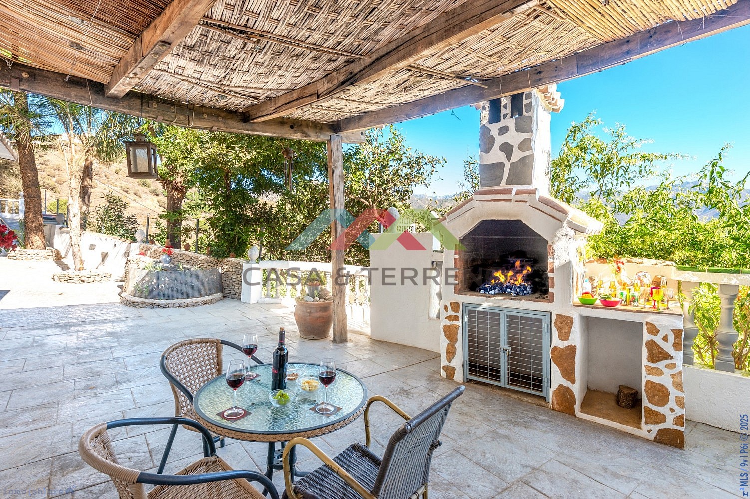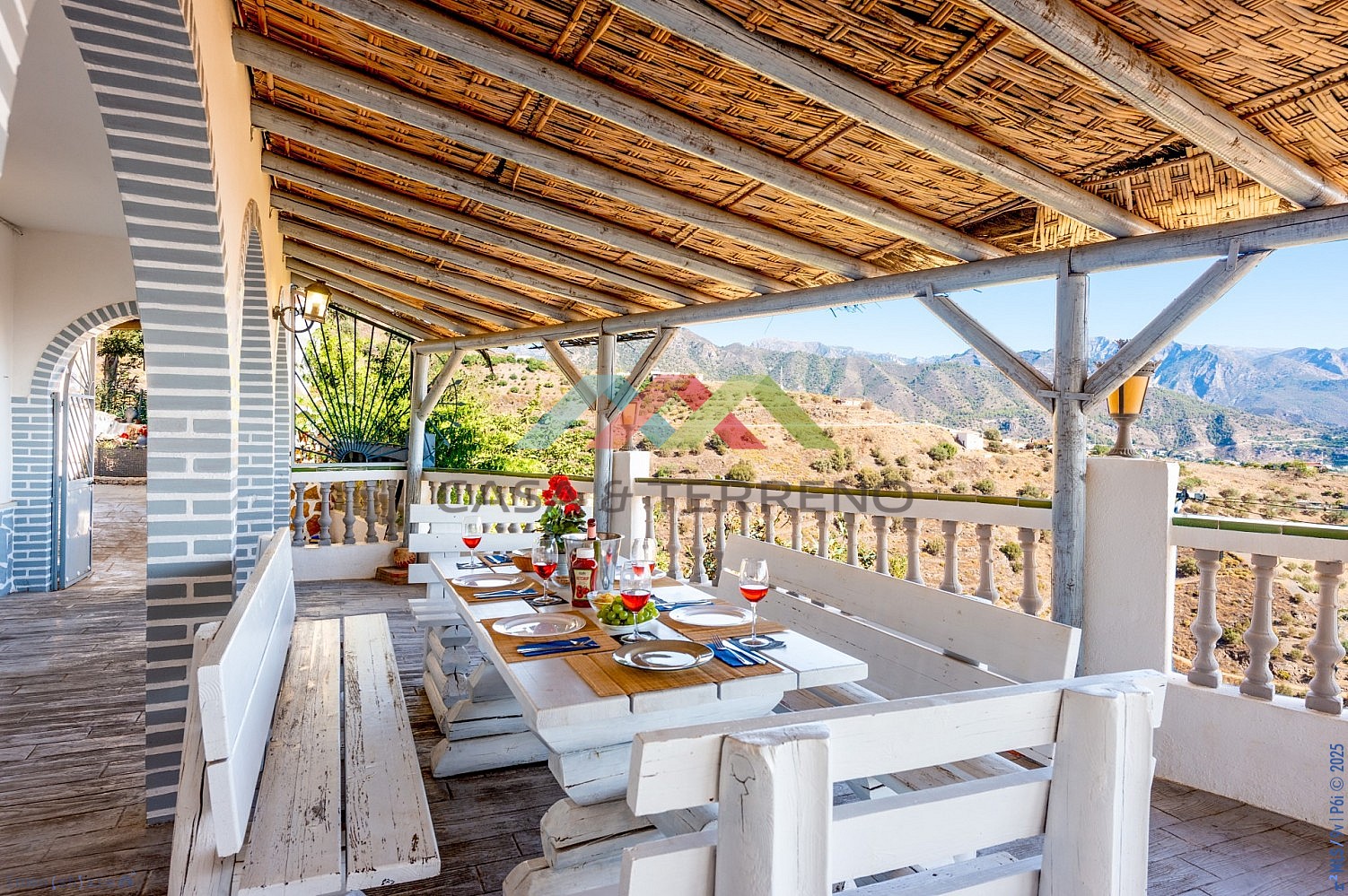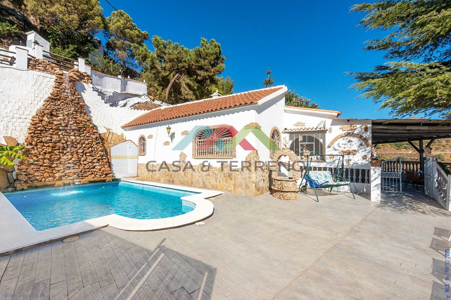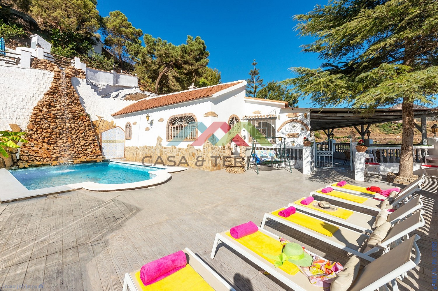 Husens omgivningar består av 6 000 kvadratmeter, stor pool, sommarkök, gård, ridskola, fruktträd, olivträd och avokado i produktion, med fantastisk utsikt och en välkomnande lantlig touch, det är på vägen från Frigiliana till Torrox vägen till huset saknas helt, allt är helt inhägnat med staket och automatiska grindar.