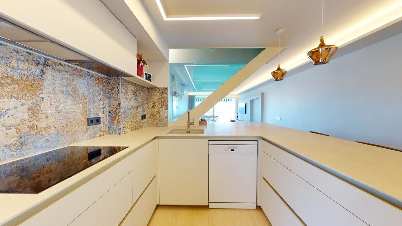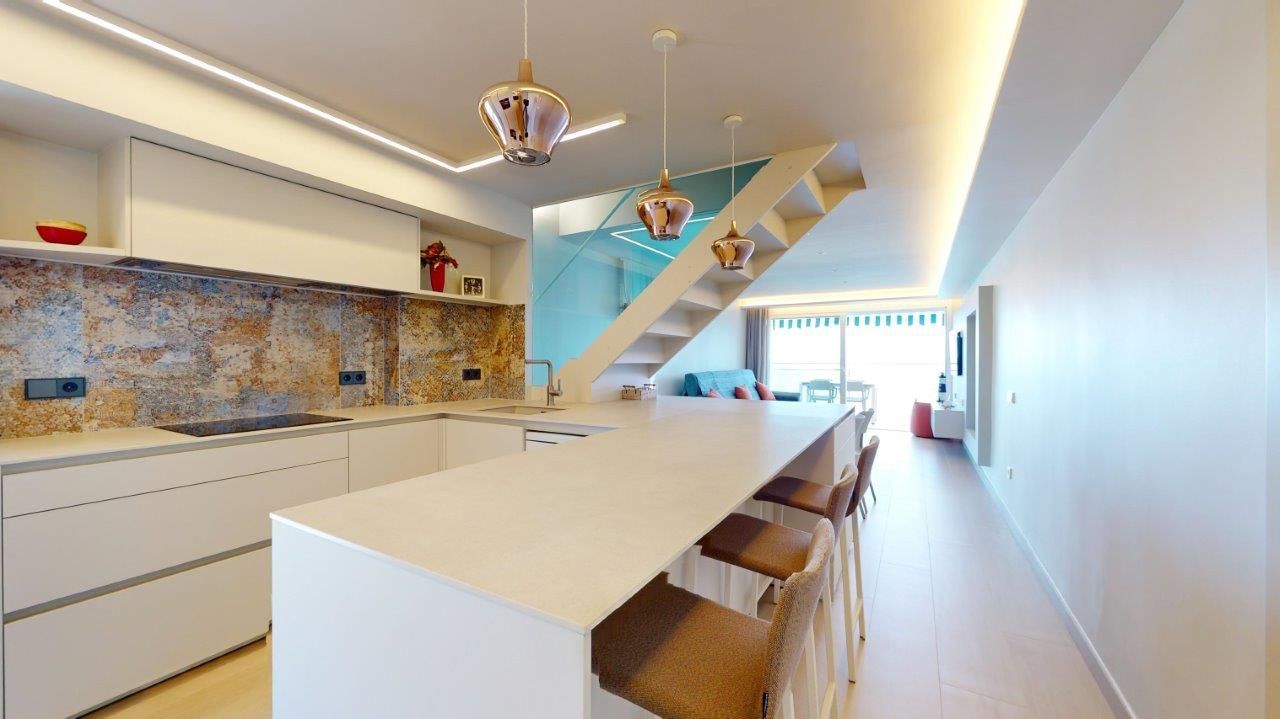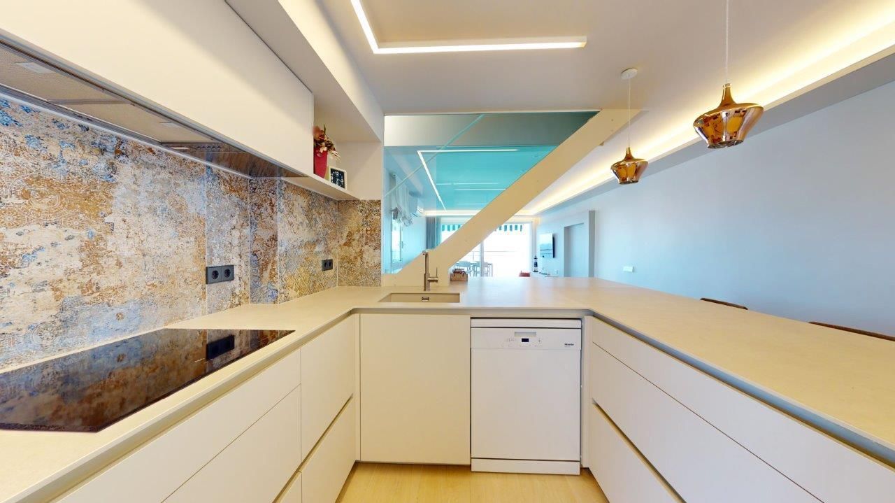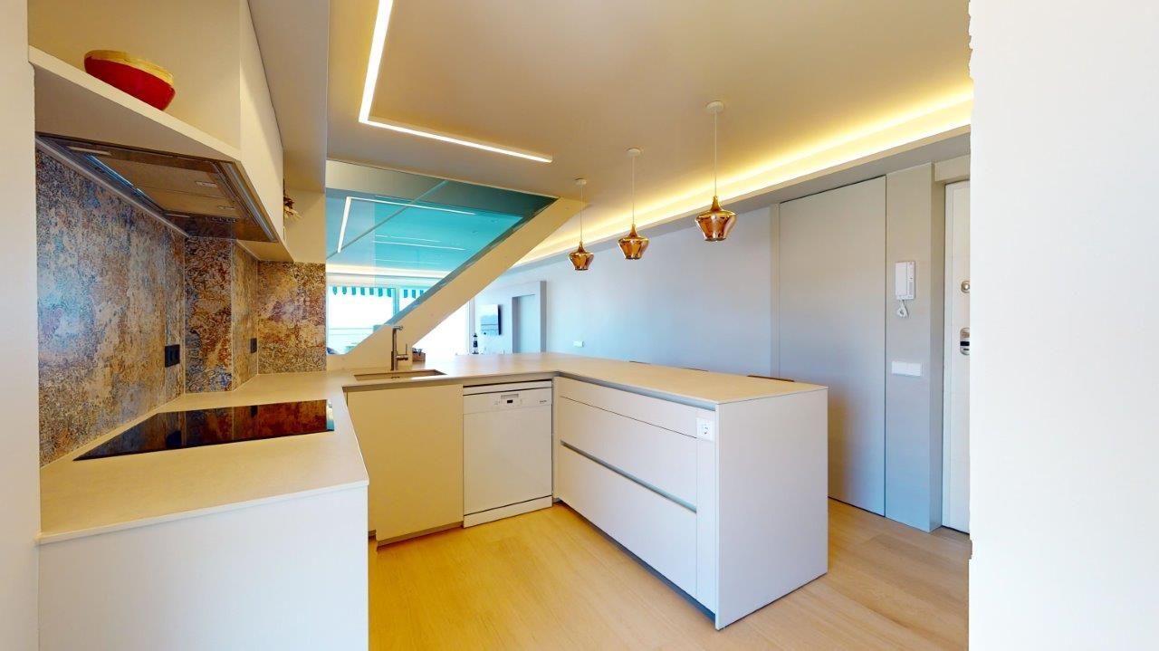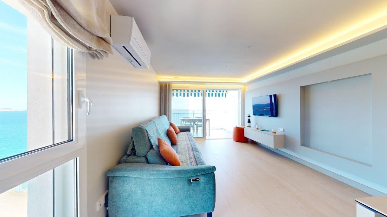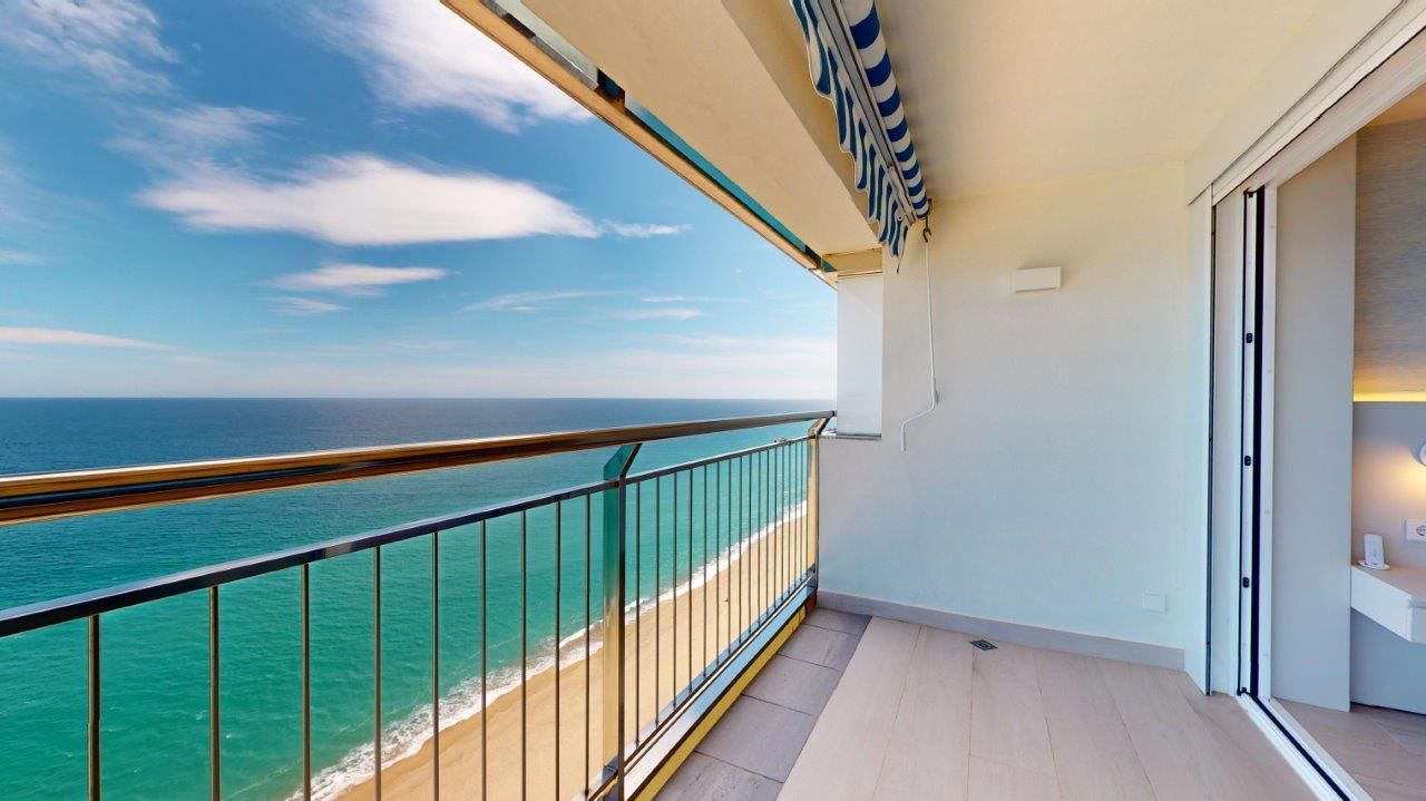 This is a very, very special and unique property on the entire Costa Brava. This impressive apartment on the beachfront rises above the other buildings and forms a spectacular watchtower that dominates the entire bay. The duplex is made up of the 17th and 18th floors, the last of the building, which is also on the corner, so the sea enters through all the windows of the house. From any room, from the kitchen, the sofa or the bed, you will have extraordinary views of the sea and the coast. You will not find a similar viewpoint and also with two terraces instead of one. If the location and views are impressive, the renovation that took place just 2 years ago is no less so. A total execution that allowed, on the ground floor, an open and spacious concept that leads to the terrace and the blue of the sea. The finishes, materials and furniture are of the highest quality, but in addition, the elegant lines, soft colors and a successful distribution make it a very comfortable and practical penthouse that you will not want to leave. Of course, light and sun are omnipresent in every corner, which gives it a lot of life and color. The rooms, located on the upper floor, follow the same scheme as the day area, with great views from all of them and an elegant and functional style. The main room has access to a second terrace, which will be a perfect viewpoint for when you want to see the sunrise, or when you want to relax at night watching the starry sky and the lights of the coast. The building and the community are excellent, it has a year-round concierge, security cameras, 3 elevators and is very well maintained. There is no building better maintained than this one. The property is sold with a closed parking space in a box in the same building, suitable for a large car and with enough space to serve as a storage room and store bicycles, motorcycles, surfboards... Whatever you need. Platja d'Aro is one of the most dynamic and valued towns on the Costa Brava, with good infrastructure, a varied recreational, commercial and gastronomic offer, a large beach, coves of enormous beauty with crystal clear waters and spectacular nature around. The combination is perfect, with an unbeatable location, unique panoramic views, in a duplex penthouse with luxury equipment, very beautiful, modern and comfortable. There is no other like it and you will be hooked as soon as you enter. Come check it out! Call now and come visit us![IW]