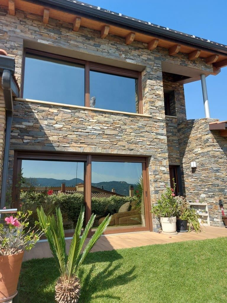 Impeccable independent house, with all the comforts and technology that makes it very efficient. In the heart of La Costa Brava, in Santa Cristina d'Aro, very close to all the necessary shops and services, to the best beaches: S'Agaró, Platja d'Aro, and Sant Pol among others, and areas to practice all kinds of sports. We present a beautiful property built for its current owners, with high-quality materials, a spectacular façade made of natural quarry stone made to measure, heating with aerotermia equipment with underfloor heating, air conditioners, electric shutters, surrounded by gardens that have It has been designed so that its maintenance is very comfortable and simple, barbecue area, private pool with a salt water system, gym area and large windows that provide lots of natural light. The house has 380 m2 built on a 540 m2 plot, with 23 TESLA solar panels with accumulators sufficient for 100% self-supply, and is distributed over three floors: basement, access/ground floor, and first floor: Low level: Access to the garage with capacity for 2 cars through an electric gate with remote control Private Garden Large terrace / Chill Out area Pool / Barbecue Area Once inside the house, on the same floor: Receiver Living room - dining room with fireplace, large anti-reflective windows, and exit to the Terrace / Pool Large fully equipped kitchen with access to the garden with daily dining area Cleaning area 1 very spacious double bedroom SUITE type with dressing room and private bathroom 1 double room with mezzanine 1 Full bathroom with a shower tray with quality finishes On the first floor: Single room or office 1 very spacious double room 1 single room 1 full bathroom In the basement: Garage with capacity for two LARGE cars Gym area Guest area: Living room with fireplace American equipped kitchen 1 double room 1 full bathroom Without any doubt a great property on la costa brava, shall we visit it?[IW]