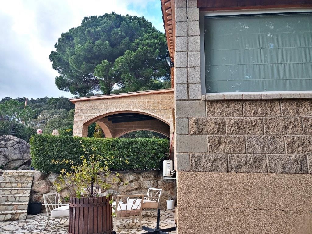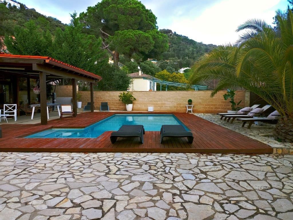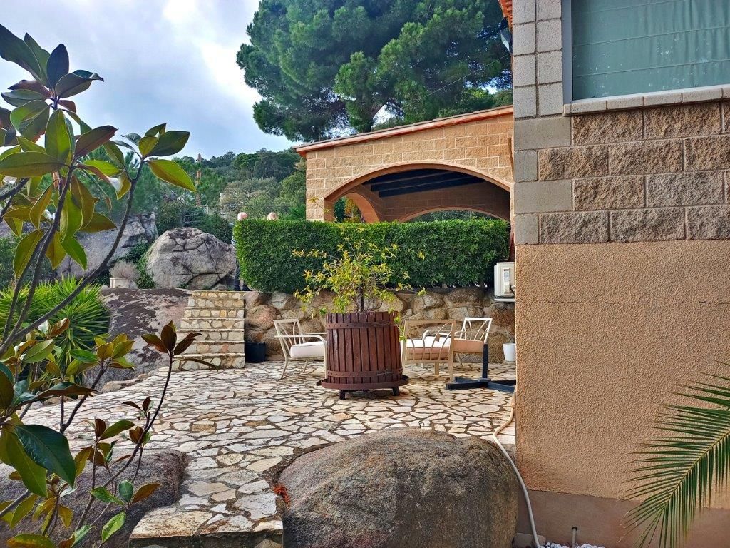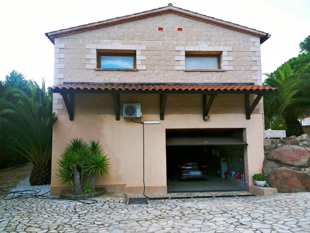 Magnificent independent VILLA, with swimming pool and sea views from a distance, large private garage for 4 cars, small wooden house, spectacular outdoor spaces that require little maintenance in Santa Cristina d'Aro in the heart of the Costa Brava. From the access to this fantastic villa you will love every space, the quality of its finishes, its beautiful terraces with sea and mountain views, marble floors in contrast with the wood, all designed for your enjoyment from the comfort and quality of all its elements as every detail in all its spaces. Located in Santa Cristina d'Aro, only 20 minutes from the best beaches of the Costa Brava: Sant Feliu de Guíxols, S'Agaró, Platja d'Aro, less than 10 minutes from the Golf d'Aro, its location perfectly combines tranquillity with an environment that offers all the possibilities to enjoy a diversity of activities and at the same time tranquillity and nature. The house has 298 mt2, on 3 plots, and is distributed in: Basement floor: Direct access from the street through an automatic door to the private garage with capacity for 4 cars with direct access to the main floor of the house. Charming space with open plan room, fireplace, space for exercise room, wardrobes, large guest toilet and cleaning area. Swimming pool area with wooden decking and barbecue area Wooden guesthouse with kitchen, space for 8 people, lounge and guest toilet Terraces with sea views and garden areas Covered porch as a chill out area Once inside the house on the main floor: Large entrance hall Courtesy toilet Separate kitchen with breakfast bar with access to the porch - Chill out area Large dining room Spacious living room with beautiful fireplace 1 single bedroom, currently used as a dressing room 1 double bedroom 1 very spacious bedroom in SUITE with private bathroom with whirlpool bath (formerly there were 2 bedrooms, the reform could be reversed to have 1 more bedroom) 1 complete bathroom with bathtub Updated double glazed windows, "osmosis" system for water, electric heating, quality parquet and marble floors, installation done to put oil boiler if required, surrounded by nature with maximum privacy.[IW]
