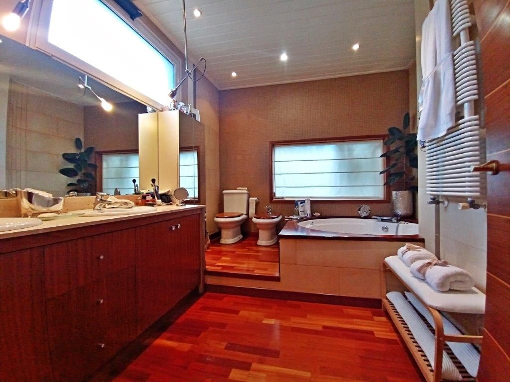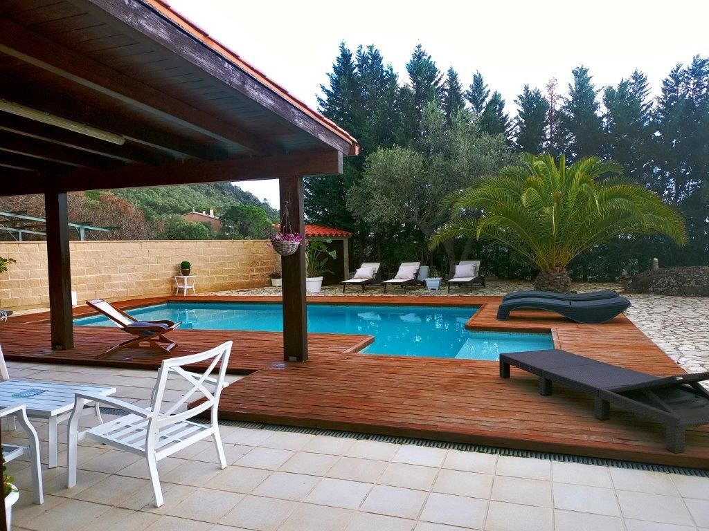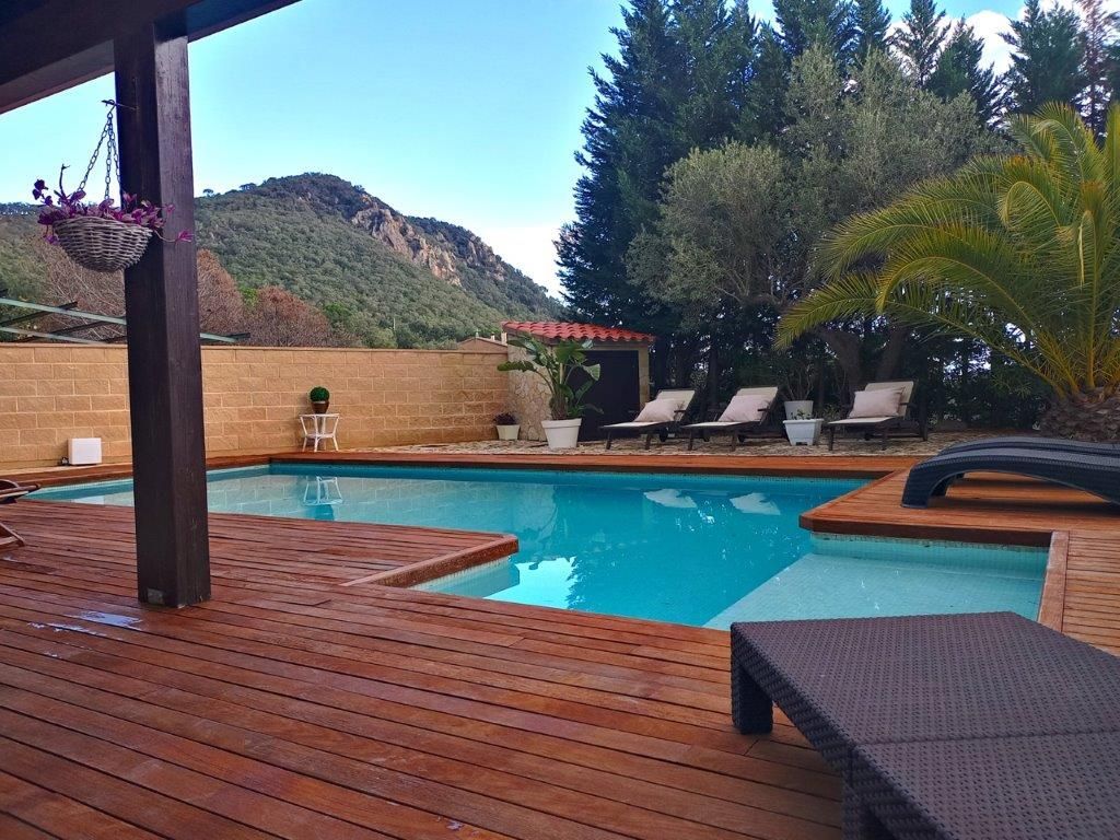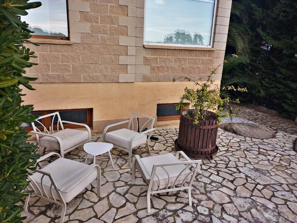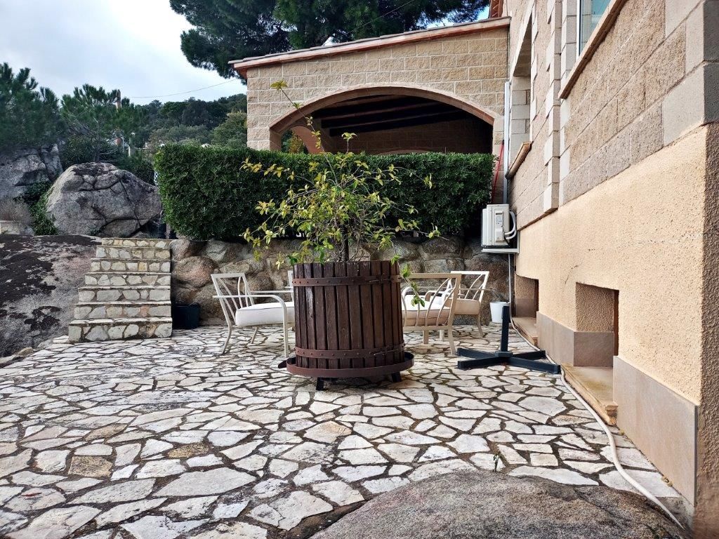 Magnificent independent VILLA, with swimming pool and sea views from a distance, large private garage for 4 cars, small wooden house, spectacular outdoor spaces that require little maintenance in Santa Cristina d'Aro in the heart of the Costa Brava. From the access to this fantastic villa you will love every space, the quality of its finishes, its beautiful terraces with sea and mountain views, marble floors in contrast with the wood, all designed for your enjoyment from the comfort and quality of all its elements as every detail in all its spaces. Located in Santa Cristina d'Aro, only 20 minutes from the best beaches of the Costa Brava: Sant Feliu de Guíxols, S'Agaró, Platja d'Aro, less than 10 minutes from the Golf d'Aro, its location perfectly combines tranquillity with an environment that offers all the possibilities to enjoy a diversity of activities and at the same time tranquillity and nature. The house has 298 mt2, on 3 plots, and is distributed in: Basement floor: Direct access from the street through an automatic door to the private garage with capacity for 4 cars with direct access to the main floor of the house. Charming space with open plan room, fireplace, space for exercise room, wardrobes, large guest toilet and cleaning area. Swimming pool area with wooden decking and barbecue area Wooden guesthouse with kitchen, space for 8 people, lounge and guest toilet Terraces with sea views and garden areas Covered porch as a chill out area Once inside the house on the main floor: Large entrance hall Courtesy toilet Separate kitchen with breakfast bar with access to the porch - Chill out area Large dining room Spacious living room with beautiful fireplace 1 single bedroom, currently used as a dressing room 1 double bedroom 1 very spacious bedroom in SUITE with private bathroom with whirlpool bath (formerly there were 2 bedrooms, the reform could be reversed to have 1 more bedroom) 1 complete bathroom with bathtub Updated double glazed windows, "osmosis" system for water, electric heating, quality parquet and marble floors, installation done to put oil boiler if required, surrounded by nature with maximum privacy.[IW]