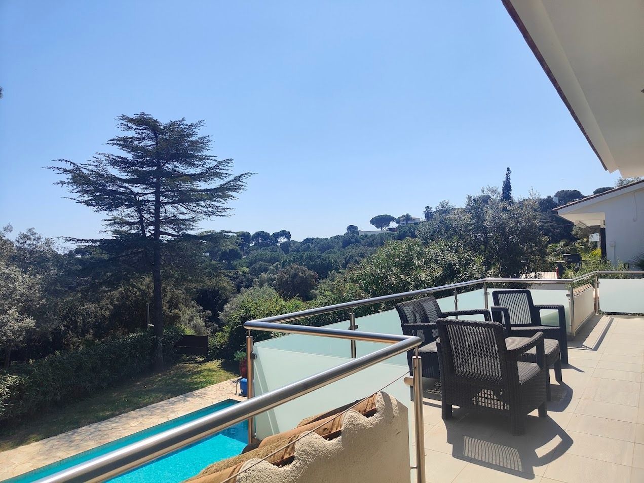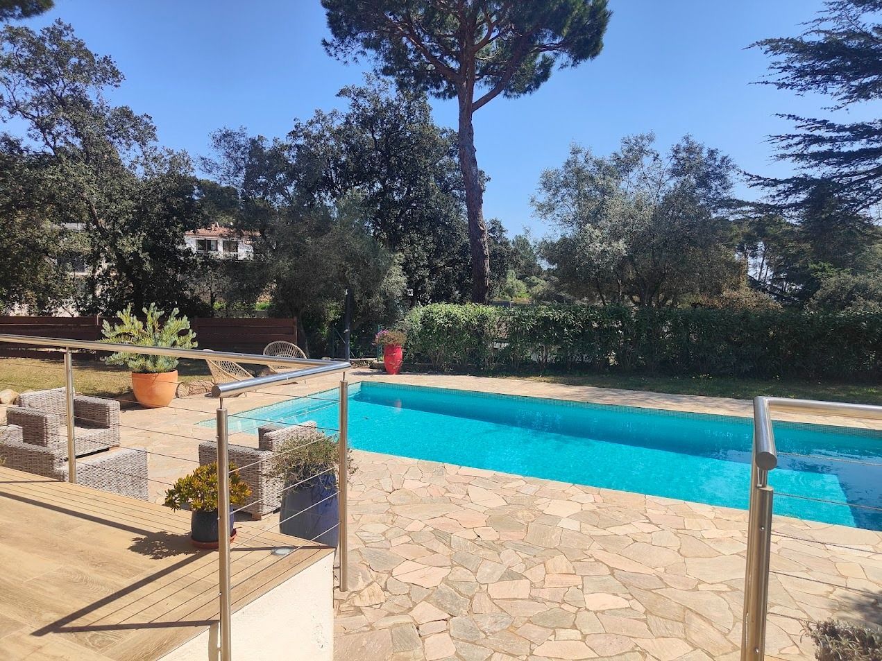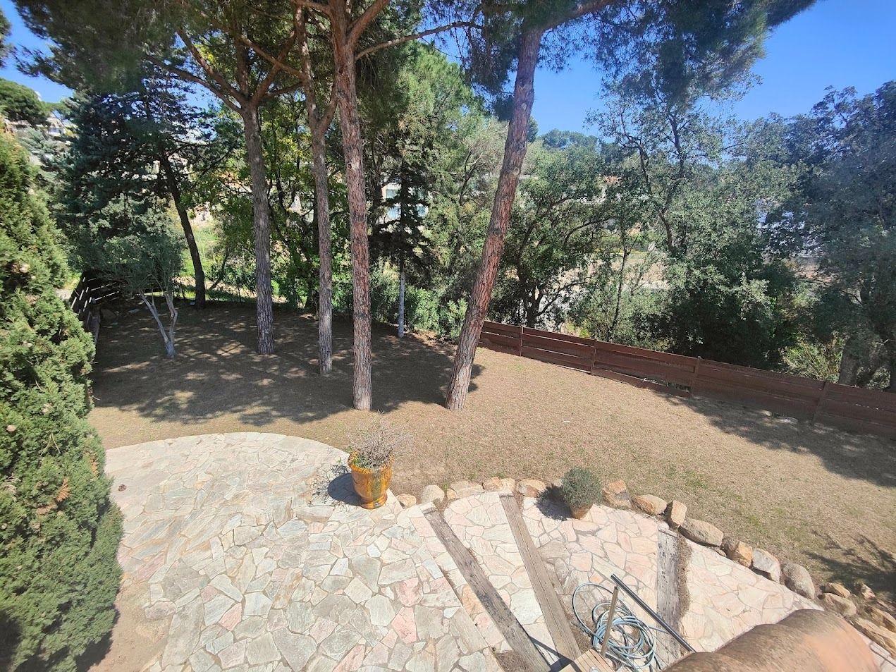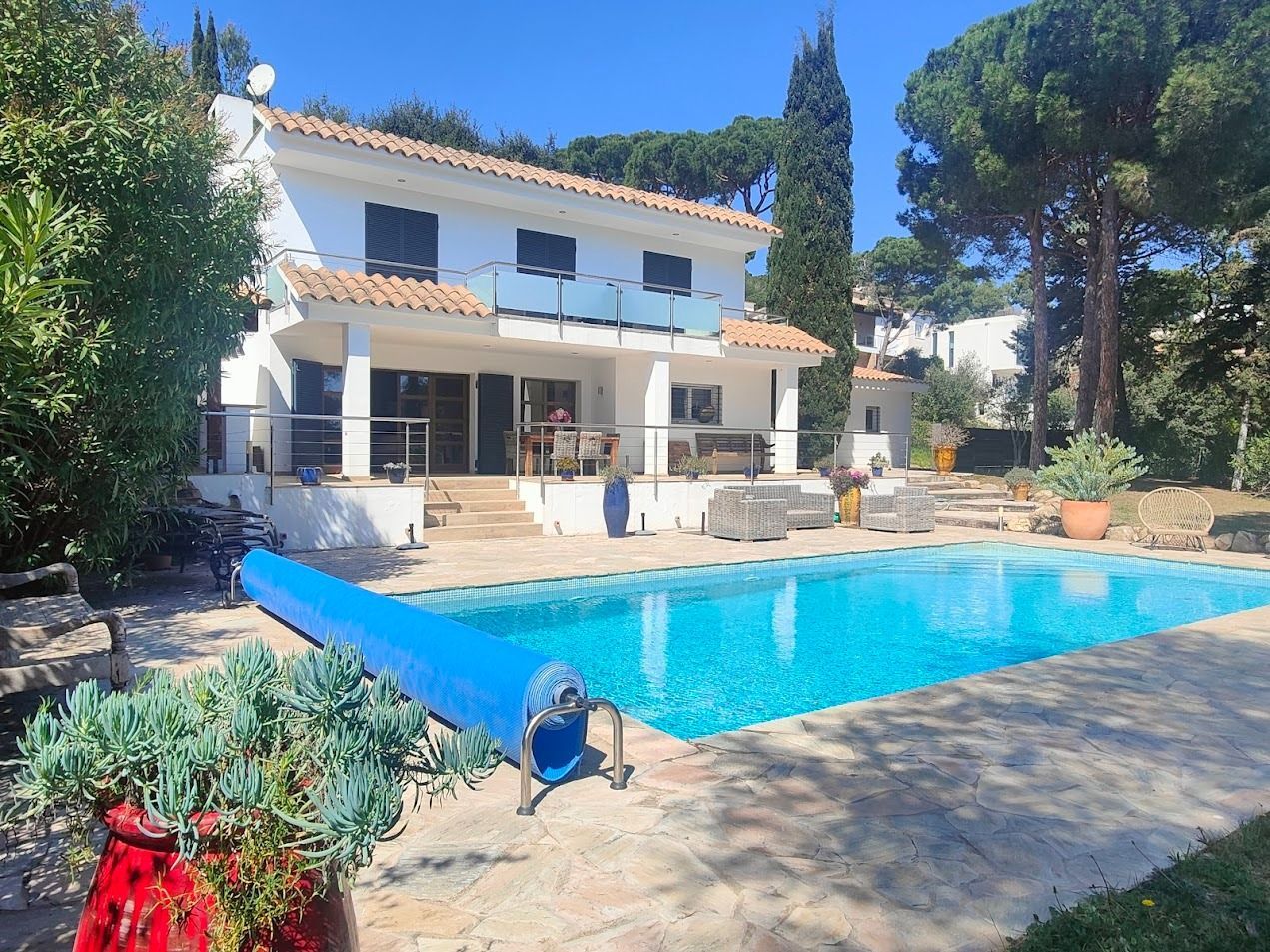 Just 800 metres from the beach and 2 kilometres from the lively centre of Platja d’Aro, this beautiful detached villa is situated in the exclusive residential area of Mas Treumal. Here you can enjoy the perfect balance between peace, privacy and the vibrant life on the Costa Brava. The villa is situated in a dead-end street in a green, quiet area and offers complete privacy. Thanks to its location, you can easily walk to the beach or cycle to the centre. The house has been completely renovated in recent years and has also been expanded with a separate guest room with private bathroom on the ground floor and a newly constructed swimming pool (10 x 5 metres, approx. 2015). This stylish villa has a total built-up area of 257 m² and is situated on a generous plot of 1,451 m². Ground floor: - Representative entrance - Spacious and bright living/dining room with wood stove and direct access to the covered terrace - Luxurious open kitchen, fully equipped with modern built-in appliances - Guest toilet First floor: - Master bedroom with bathroom en suite - Two comfortable double bedrooms - Modern shared bathroom All bedrooms on the upper floor give access to a terrace with a beautiful view of the green surroundings of the urbanization. Adjacent to the house is a separate guest bedroom with private bathroom and private entrance - ideal for guests. You also have a spacious separate storage room. An absolute eye-catcher is the cozy covered barbecue area with bar - the perfect place to spend long summer evenings with family or friends. Special features: - Aluminum frames with double glazing - Aluminum shutters for windows and doors - Built-in wardrobes in the bedrooms - Air conditioning in the bedrooms - Electric radiators - Automatic garden irrigation - Recently renovated infrastructure in the area (including roads and sewer) This villa combines Mediterranean charm with modern living comfort and a fantastic location - an ideal (second) home under the Spanish sun. Taxes, notary fees and registration costs are not included in the sales price.[IW]