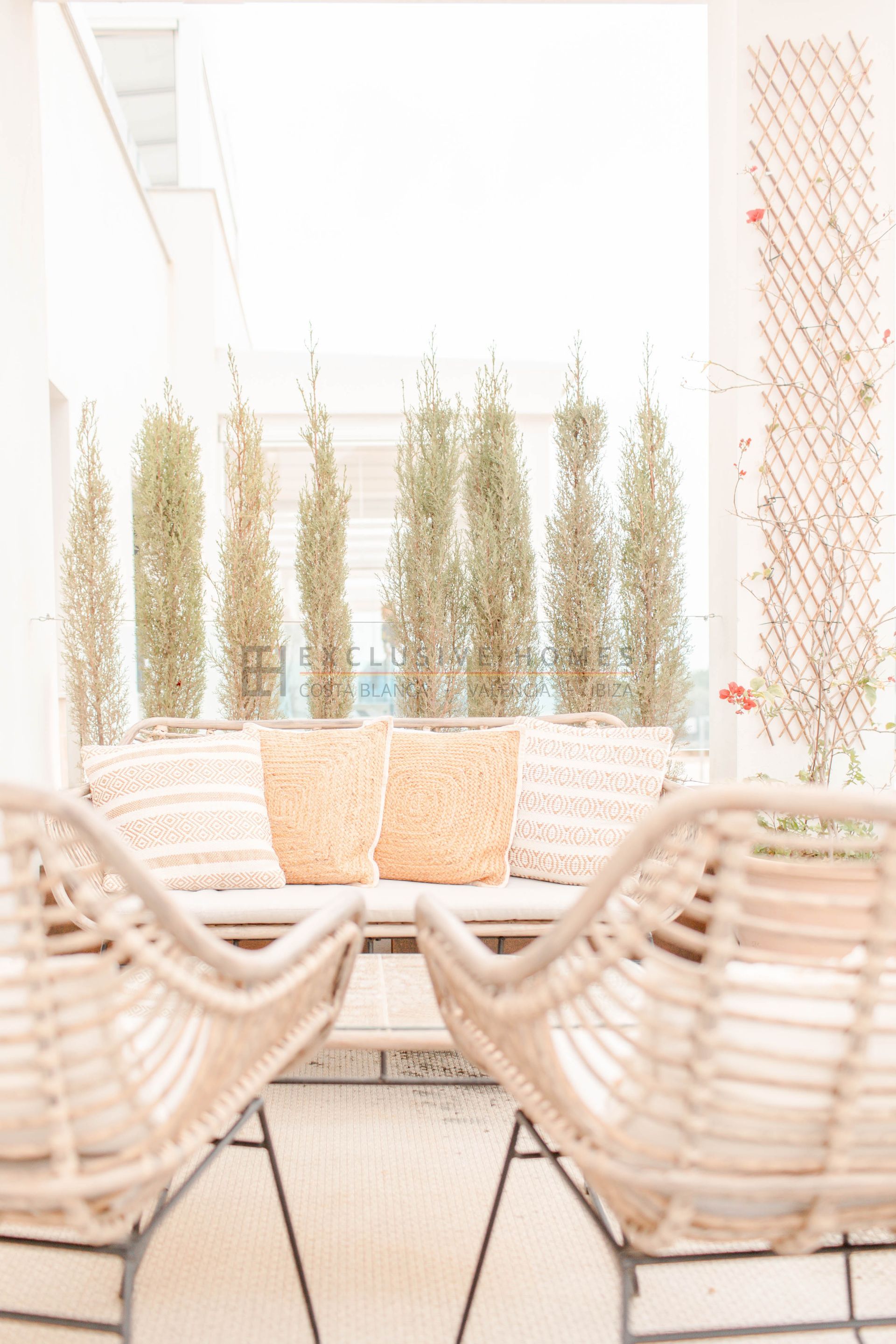 svensk köksstandard, luftkonditionerare, golvvärme, gemensam trädgård, terrass, takterrass, parkering, inbyggda garderober, tvåglasfönster, möblerat, havsutsikt
