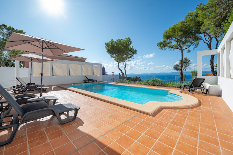 trädgård, terrass, garage, parkering, pool, privat pool, trädgårds- & poolutsikt, havsutsikt