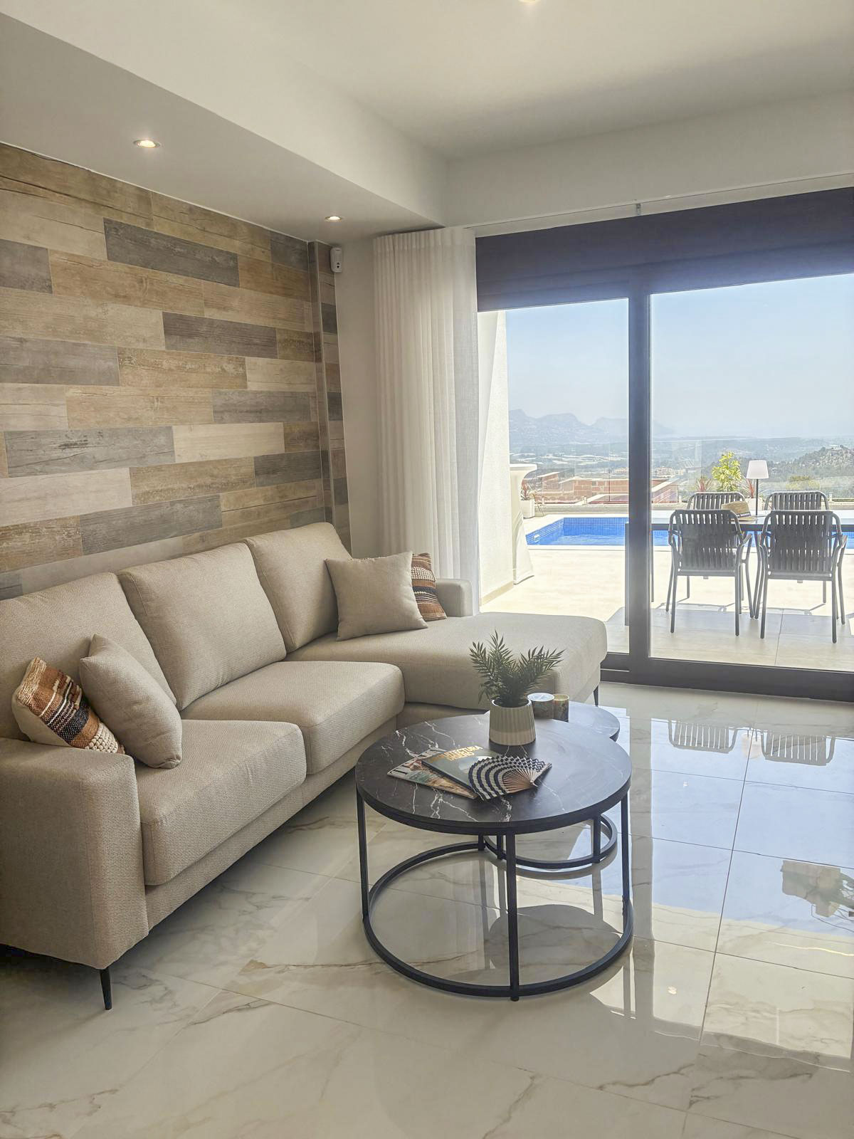 This residential complex consists of 12 detached villas and is located on a higher site, with an impressive panoramic view of the Mediterranean Sea and the skyline of Benidorm.