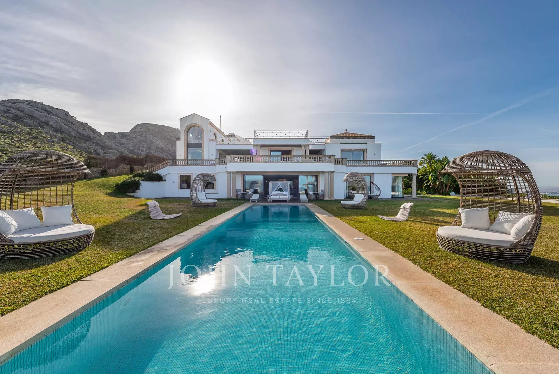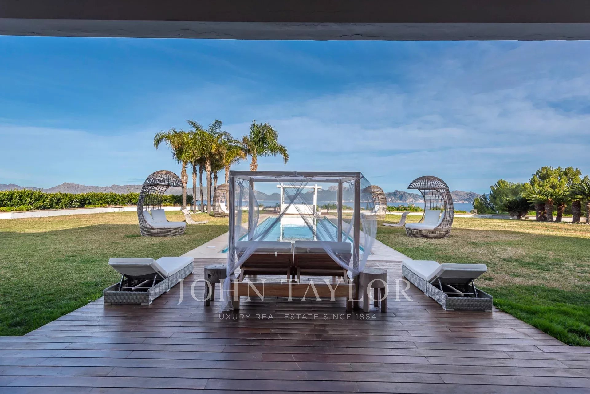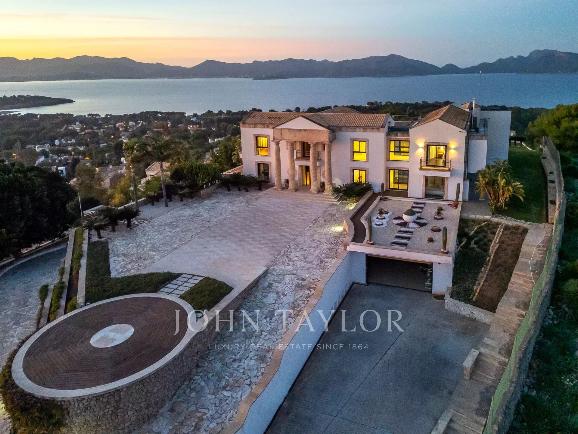 Magnifik egendom med havsutsikt. Belägen på den högsta punkten i Mal Pas-Bonaire, Alcudia, med den mest spektakulära havsutsikten över Pollensabukten, är denna egendom verkligen unik och ojämförlig med allt annat på norra Mallorca. Byggd enligt de högsta specifikationerna för att garantera maximal komfort och designad för att imponera, är "Cielo de Bonaire" en upplevelse i sig. Byggd på tre plan som alla är förbundna med hiss, erbjuder entréplanet en imponerande entré, spelrum, vardagsrum med öppen spis, matsal, huvudkök och sekundära kök, gästrum med eget badrum och gästtoalett. På första våningen finns master-sviten med privat vardagsrum och eget badrum, ytterligare två sovrum med eget badrum kompletterar detta område. På nedre bottenvåningen finns fem sovrum, alla med eget badrum, en fantastisk uppvärmd inomhuspool, gym, spa med turkiskt ångbad, bastu, jacuzzi och hydroterapidusch. Fastighetens exteriör erbjuder en rad olika områden för uteservering och underhållning för att tillgodose både stora eller små grupper, pool, välskötta mogna trädgårdar, tennisbana, "växthus" och helikopterplatta för direkt flygåtkomst till fastigheten. Fastigheten är perfekt inte bara för personlig njutning utan också för konventioner, retreater eller företagspresentationer. Ytterligare konferenstjänster finns tillgängliga (mot extra kostnad), t.ex. helikopteruthyrning, chaufför, privat kock, båtuthyrning och barnpassning för att säkerställa en felfri upplevelse för sina gäster. Lokala restauranger, stränder, yachtklubb och by ligger inom 2 km. För golfälskare ligger den slutna banan 6 km och flygplatsen 60 km. För tillgänglighet och ytterligare information, vänligen kontakta oss direkt så hjälper vi dig med all information du kan behöva.