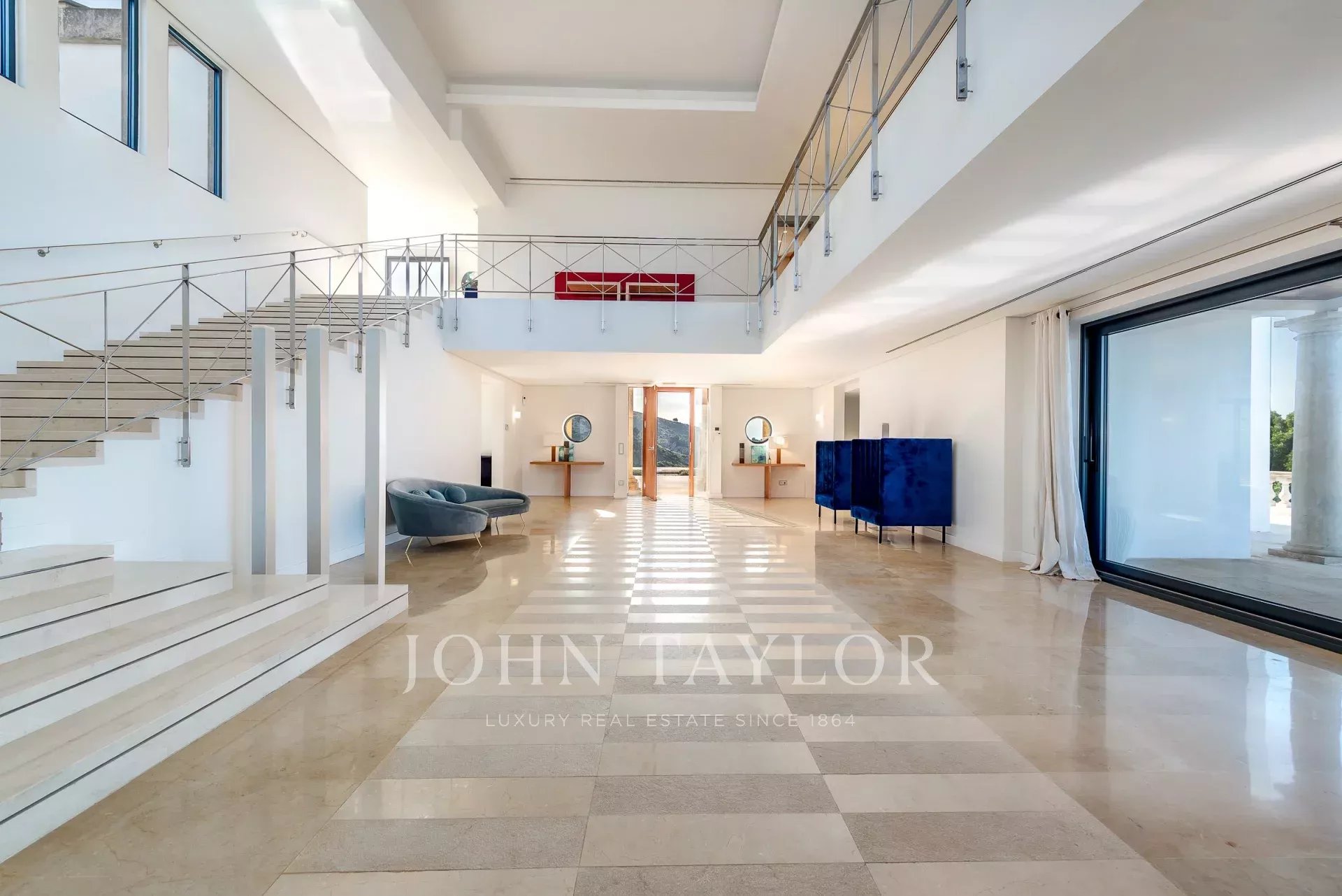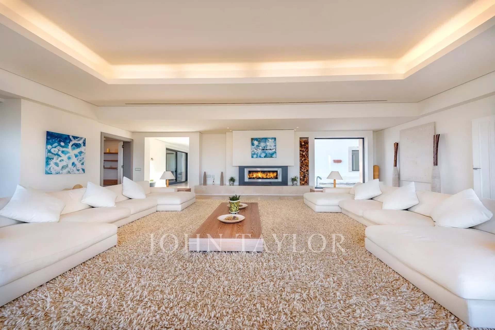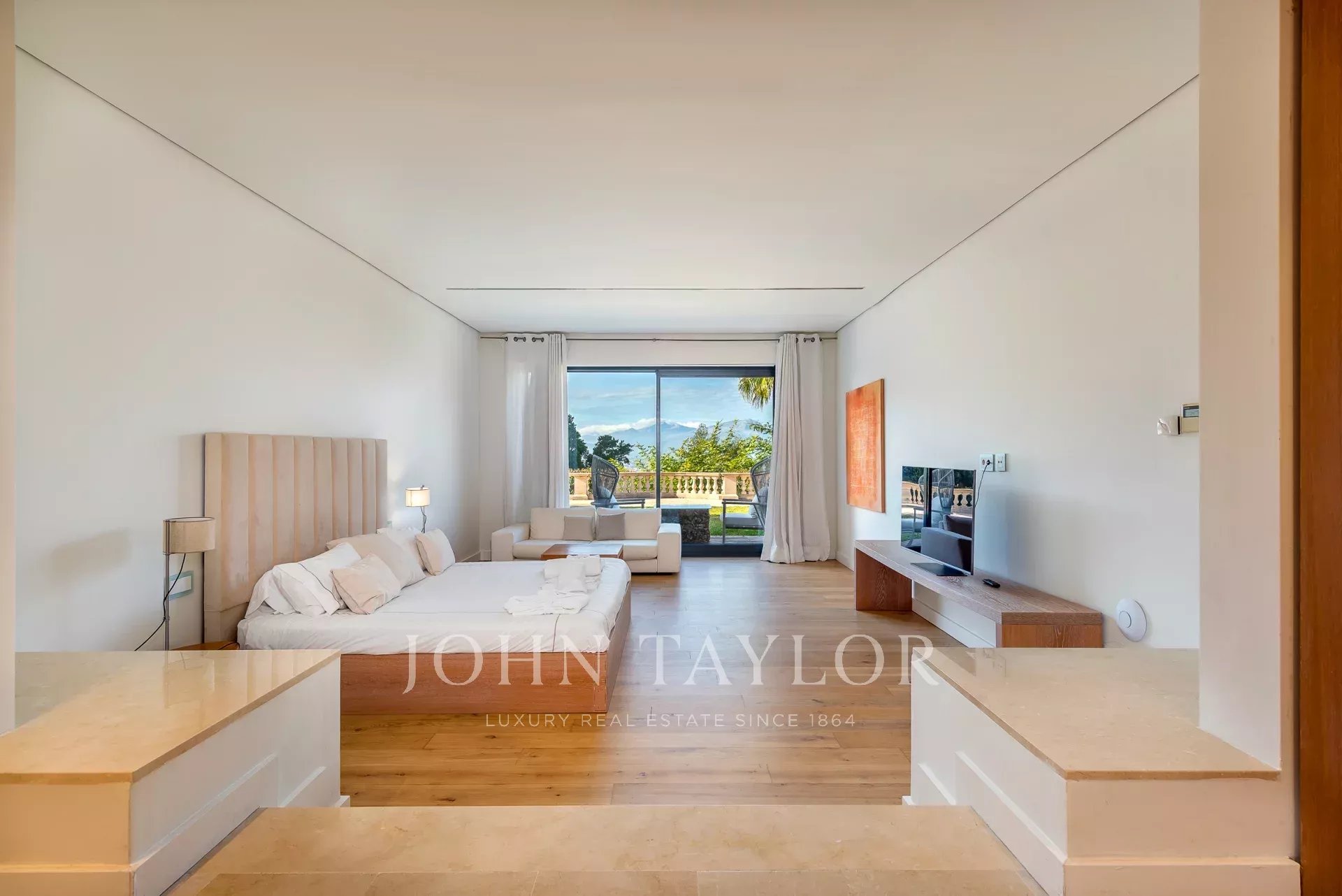 Magnifik egendom med havsutsikt. Belägen på den högsta punkten i Mal Pas-Bonaire, Alcudia, med den mest spektakulära havsutsikten över Pollensabukten, är denna egendom verkligen unik och ojämförlig med allt annat på norra Mallorca. Byggd enligt de högsta specifikationerna för att garantera maximal komfort och designad för att imponera, är "Cielo de Bonaire" en upplevelse i sig. Byggd på tre plan som alla är förbundna med hiss, erbjuder entréplanet en imponerande entré, spelrum, vardagsrum med öppen spis, matsal, huvudkök och sekundära kök, gästrum med eget badrum och gästtoalett. På första våningen finns master-sviten med privat vardagsrum och eget badrum, ytterligare två sovrum med eget badrum kompletterar detta område. På nedre bottenvåningen finns fem sovrum, alla med eget badrum, en fantastisk uppvärmd inomhuspool, gym, spa med turkiskt ångbad, bastu, jacuzzi och hydroterapidusch. Fastighetens exteriör erbjuder en rad olika områden för uteservering och underhållning för att tillgodose både stora eller små grupper, pool, välskötta mogna trädgårdar, tennisbana, "växthus" och helikopterplatta för direkt flygåtkomst till fastigheten. Fastigheten är perfekt inte bara för personlig njutning utan också för konventioner, retreater eller företagspresentationer. Ytterligare konferenstjänster finns tillgängliga (mot extra kostnad), t.ex. helikopteruthyrning, chaufför, privat kock, båtuthyrning och barnpassning för att säkerställa en felfri upplevelse för sina gäster. Lokala restauranger, stränder, yachtklubb och by ligger inom 2 km. För golfälskare ligger den slutna banan 6 km och flygplatsen 60 km. För tillgänglighet och ytterligare information, vänligen kontakta oss direkt så hjälper vi dig med all information du kan behöva.