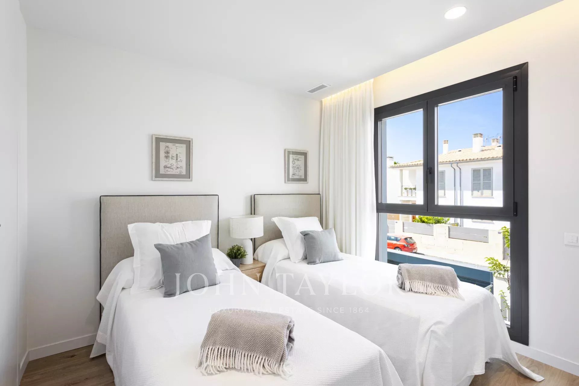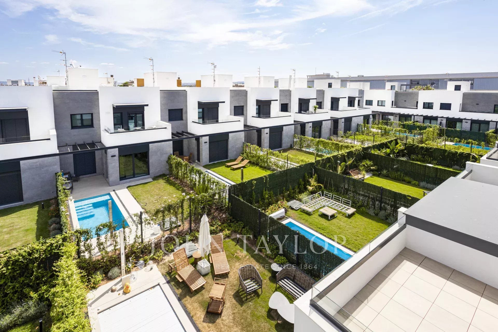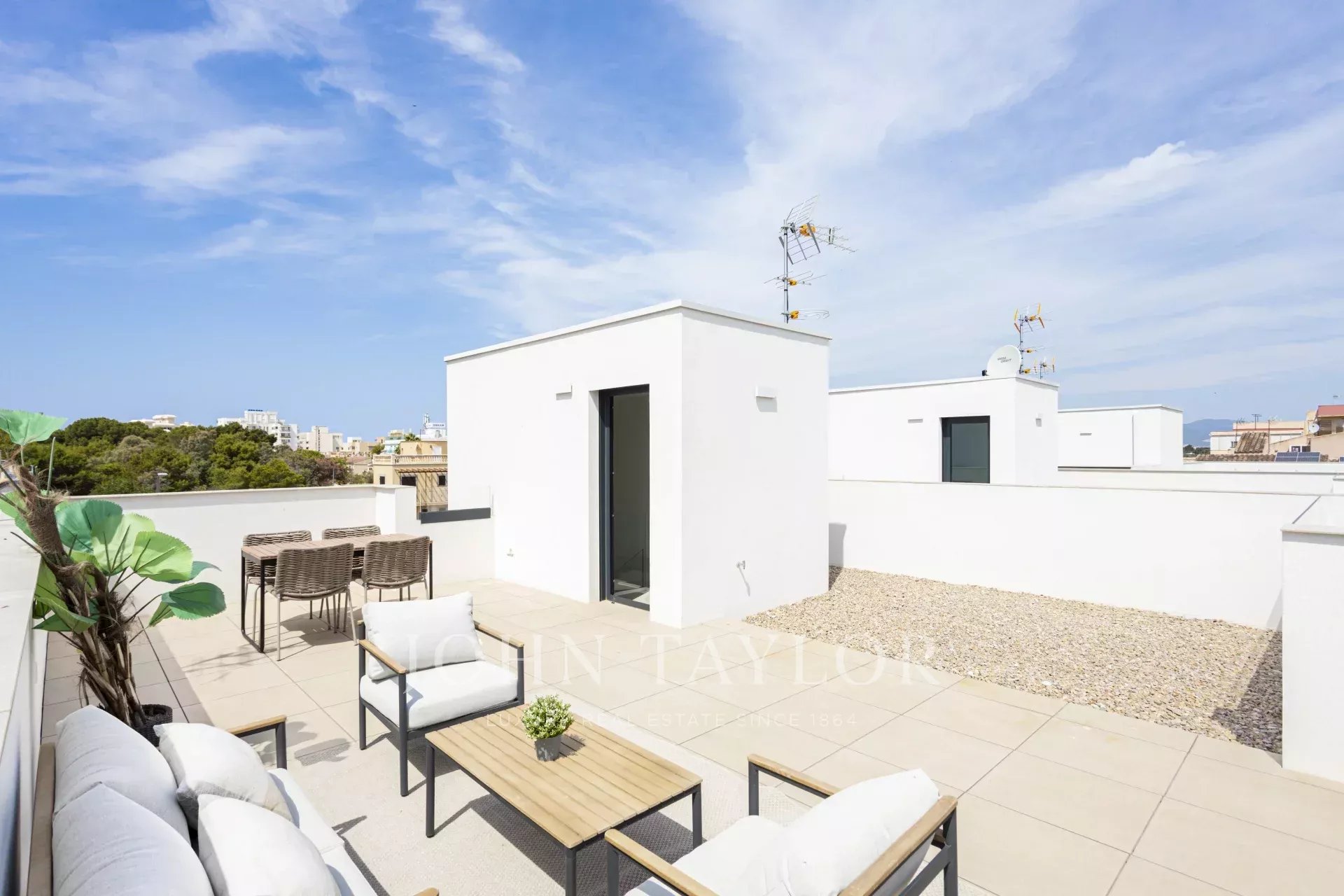 Parhus med trädgård och pool Detta nya projekt ligger i La Ribera, ett lugnt bostadsområde i Palma, bara en kort promenad från stranden. På bara några minuter kan du njuta av en simtur i havet eller en lugn promenad längs Medelhavets strand. Trots sin lugna miljö har området mycket bra förbindelser - bara 15 minuter från Palmas centrum och 8 minuter från flygplatsen. Projektet omfattar 26 parhus, ritade av Estudio Lamela, en av de mest respekterade arkitektbyråerna i Spanien, känd för sina prisbelönta arbeten. Bostäderna har planerats med omsorg för att erbjuda både en smart layout och attraktiv design. Stora fönster, öppna ytor och grönområden bidrar till att fylla interiörerna med naturligt ljus, vilket skapar en ljus och välkomnande atmosfär. Husen ligger endast 400 meter från havet och är byggda för att ta tillvara på Mallorcas medelhavsljus. Varje hem har en privat trädgård och pool, ett solarium på taket och två parkeringsplatser utomhus. Invändigt finns ett rymligt vardagsrum och matplats på upp till 40 m², ett fullt utrustat kök, fyra sovrum (inklusive en master-svit med omklädningsrum) och tre kompletta badrum, varav ett har eget badrum. Dessa energieffektiva hem hjälper dig att spara på månadsräkningarna tack vare dubbelglasade fönster som håller temperaturen stabil och minskar bullret, vilket ger komfort året runt. El Arenal eller S'Arenal, en före detta fiskeby, ligger mellan två kommuner, Llucmayor och Palma, på Mallorcas sydkust. Det idealiska läget, 12 km från Palma och endast 5 km från flygplatsen, är en av grundpelarna för dess framgång. Här finns en mycket välkänd sporthamn, som också är en av de största attraktionerna. El Arenal är också känd för sin långa, vita sandstrand full av palmer. Den fantastiska Paseo Maritimo är en enkel promenad för att utforska kusten, med allt du kan önska dig, fritidsområden, restauranger och kaféer. Från El Arenal kan du också njuta av den sydligaste delen av Sierra de Tramontana, som kan ses långt bortom Palma. Från stranden, nära yachtklubben, kan du till och med besöka Palmas katedral och Bellver Castle en klar dag. Det finns också flera barer eller strandbarer, så kallade Balnearies, som serverar drinkar och snacks. Balnearies är numrerade och används ofta som referens.