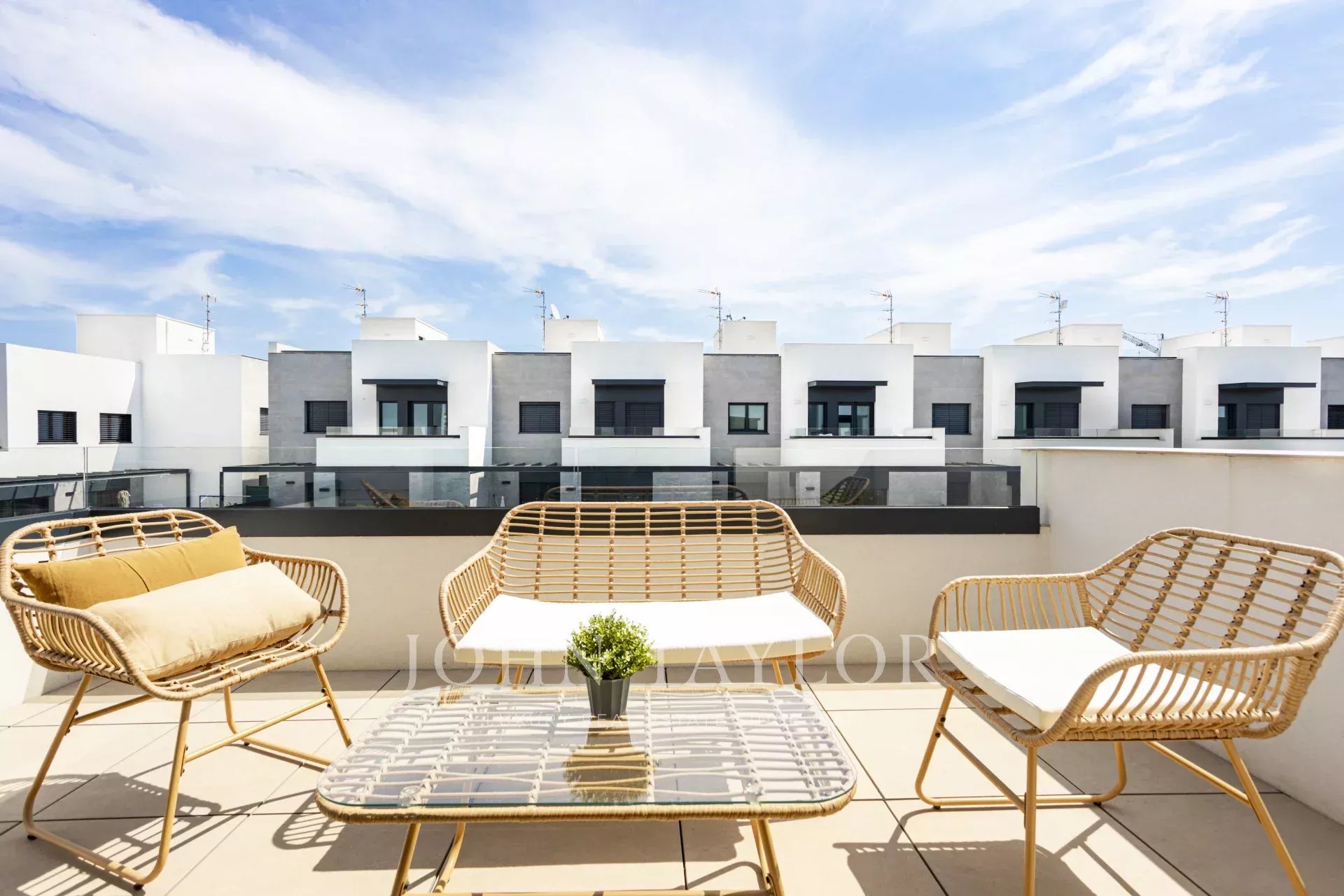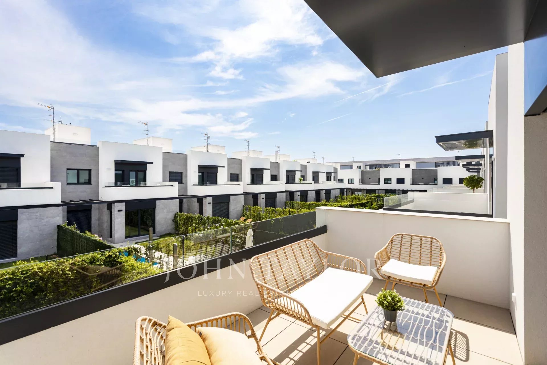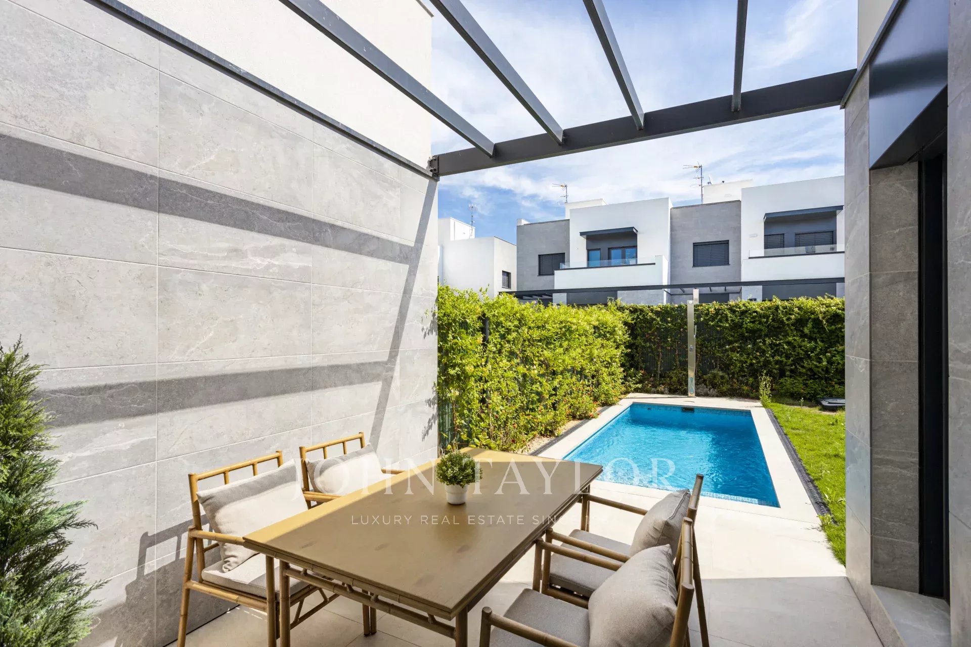 Parhus med trädgård och pool Detta nya projekt ligger i La Ribera, ett lugnt bostadsområde i Palma, bara en kort promenad från stranden. På bara några minuter kan du njuta av en simtur i havet eller en lugn promenad längs Medelhavets strand. Trots sin lugna miljö har området mycket bra förbindelser - bara 15 minuter från Palmas centrum och 8 minuter från flygplatsen. Projektet omfattar 26 parhus, ritade av Estudio Lamela, en av de mest respekterade arkitektbyråerna i Spanien, känd för sina prisbelönta arbeten. Bostäderna har planerats med omsorg för att erbjuda både en smart layout och attraktiv design. Stora fönster, öppna ytor och grönområden bidrar till att fylla interiörerna med naturligt ljus, vilket skapar en ljus och välkomnande atmosfär. Husen ligger endast 400 meter från havet och är byggda för att ta tillvara på Mallorcas medelhavsljus. Varje hem har en privat trädgård och pool, ett solarium på taket och två parkeringsplatser utomhus. Invändigt finns ett rymligt vardagsrum och matplats på upp till 40 m², ett fullt utrustat kök, fyra sovrum (inklusive en master-svit med omklädningsrum) och tre kompletta badrum, varav ett har eget badrum. Dessa energieffektiva hem hjälper dig att spara på månadsräkningarna tack vare dubbelglasade fönster som håller temperaturen stabil och minskar bullret, vilket ger komfort året runt. El Arenal eller S'Arenal, en före detta fiskeby, ligger mellan två kommuner, Llucmayor och Palma, på Mallorcas sydkust. Det idealiska läget, 12 km från Palma och endast 5 km från flygplatsen, är en av grundpelarna för dess framgång. Här finns en mycket välkänd sporthamn, som också är en av de största attraktionerna. El Arenal är också känd för sin långa, vita sandstrand full av palmer. Den fantastiska Paseo Maritimo är en enkel promenad för att utforska kusten, med allt du kan önska dig, fritidsområden, restauranger och kaféer. Från El Arenal kan du också njuta av den sydligaste delen av Sierra de Tramontana, som kan ses långt bortom Palma. Från stranden, nära yachtklubben, kan du till och med besöka Palmas katedral och Bellver Castle en klar dag. Det finns också flera barer eller strandbarer, så kallade Balnearies, som serverar drinkar och snacks. Balnearies är numrerade och används ofta som referens.