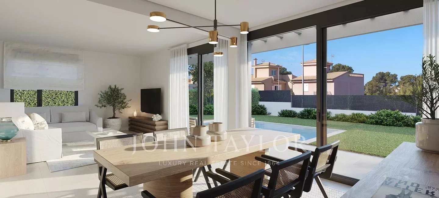 Eneida Views - Project of 16 Semi-Detached Villas with Pool The utmost attention is paid to every detail in your new house to combine maximum functionality with the most exquisite design. Interior and exterior establish a “dialogue” in which natural light and integration of the green sites into the main rooms are major features. The privacy afforded by the houses in Eneida is maximised through the private pool installed in your own garden. All the dwellings come with a spacious open-plan lounge-dining room with a footage of up to 30 m². A fully furnished and fitted kitchen, three full bathrooms (one en suite). 3 or 4 bedrooms, according to your requirements. Master bedroom with walk-in closet. Spacious private garden of over 200 m², private swimming pool, two parking spots. Puig de Ros, a residential nucleus belonging to the municipality of Llucmajor, just 20 minutes from the city of Palma. This urbanization is close to the sea in an area of imposing cliffs with spectacular views and wonderful places among which Cala Vella or Cala Maioris stand out. These areas are ideal for enjoying the tranquillity of nature in an environment surrounded by beautiful landscapes and with all the comforts, services and transport facilities at your fingertips. Relax taking a swim in the sea and enjoy the air free through its different routes hiking or biking surrounded of green spaces. A natural coastline that combines beaches and cliffs Puig de Ros allows you to enjoy a coastline that stretches for 47 kilometres, between cliffs and coves. On the coast you can still see the defence towers-built centuries ago by the Majorcans to protect themselves, visible in S’Estalella, Cap Blanc, Cap Enderrocat and Cala Pi. The urbanization is a step away from some of the emblematic coves of the bay of Palma, such as Cala Pi and Cala Blava, and only 15 minutes from the beaches and the El Arenal Yacht Club.