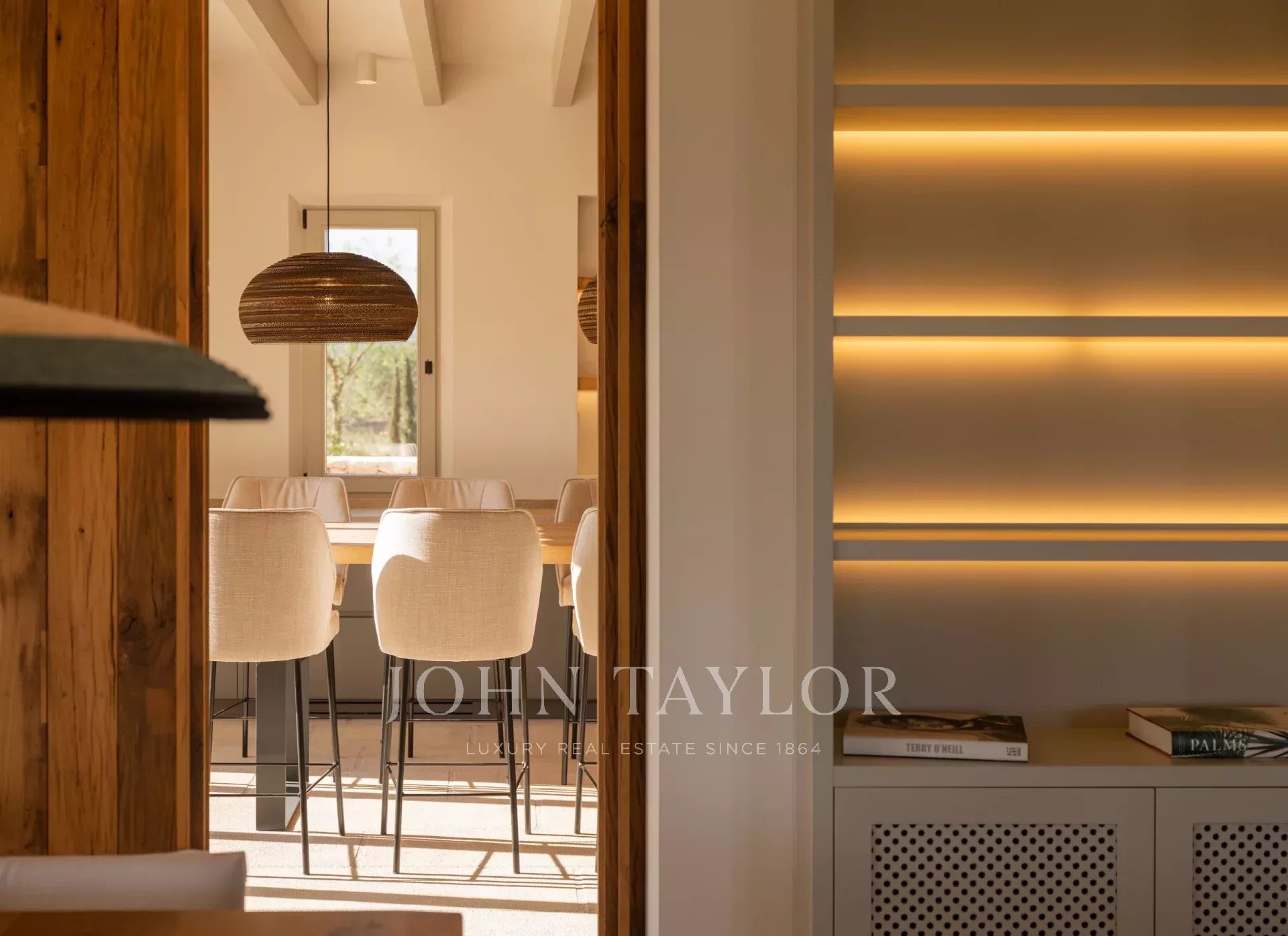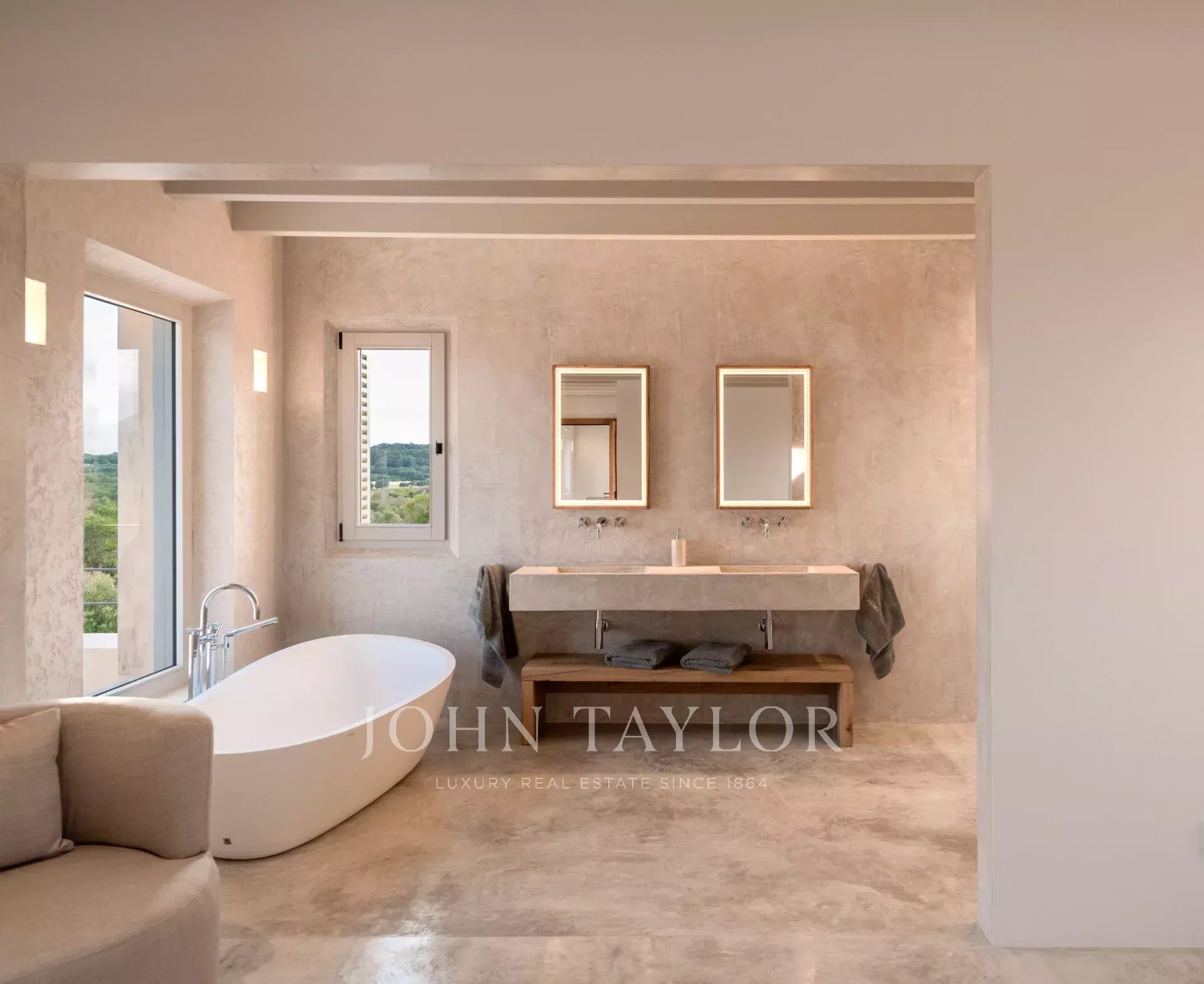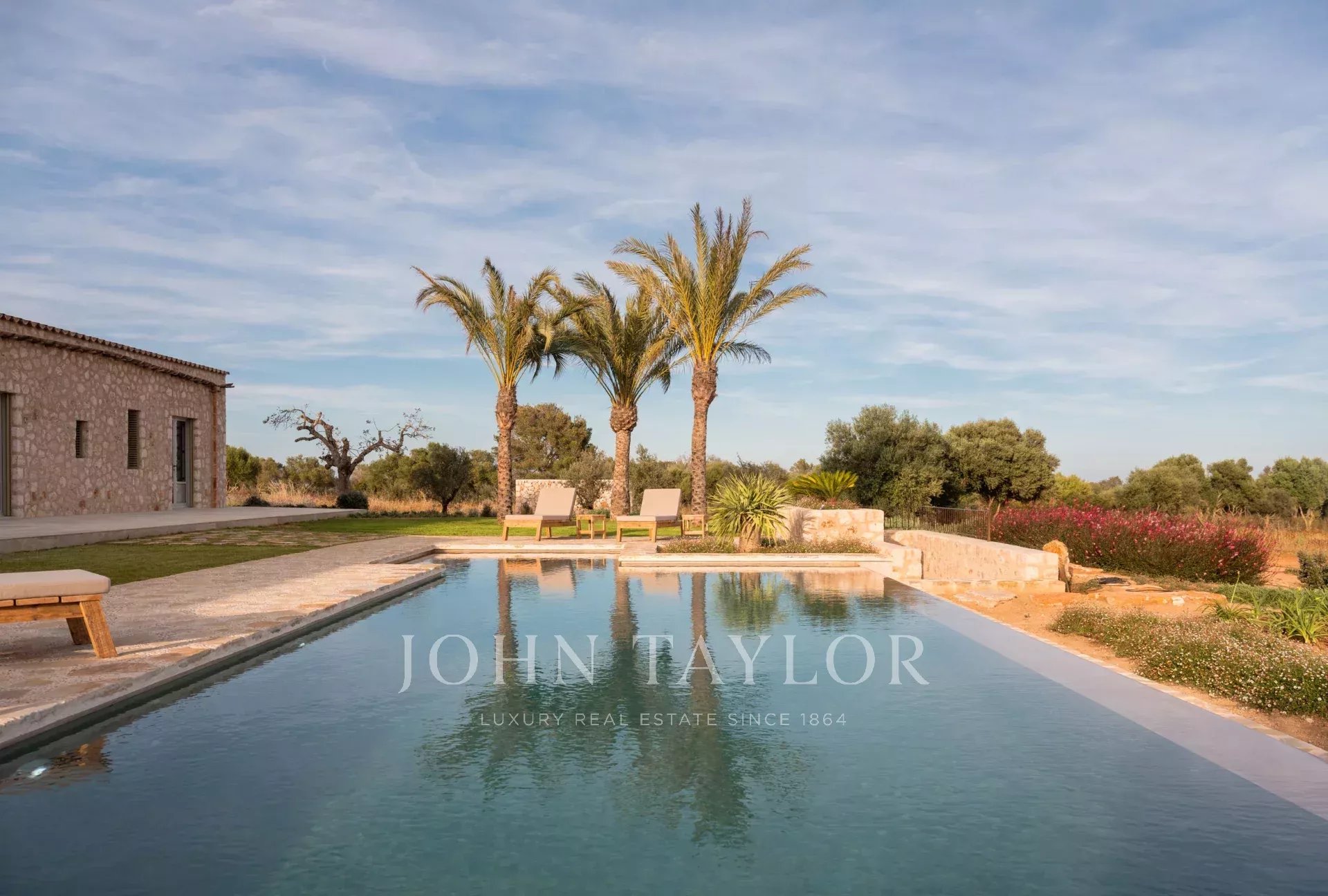 Utsökt nybyggd Finca med hisnande havsutsikt och bergspanorama Välkommen till en exceptionell möjlighet att äga en underbar nybyggd finca i den lugna och förtrollande landsbygden på sydöstra Mallorca bara några minuter från havet. Denna anmärkningsvärda fastighet stod klar 2023 och erbjuder en idyllisk miljö med fascinerande havsutsikt och majestätisk panoramautsikt över bergen. Med uppmärksamhet på detaljer och en rad förstklassiga funktioner förkroppsligar denna drömfinca boende när det är som bäst. Fincan ligger på en expansiv tomt på 60.000 kvadratmeter och sträcker sig över en byggd boyta på 580 kvadratmeter och har fem rymliga sovrum, alla med eget badrum. Utanför njuter du av absolut integritet vid den 70m2 infinity saltvattenpoolen och gott om komfort med ett extra badrum under poolen. Så snart du kommer in i huset välkomnas du av en atmosfär av värme och lugn. Alla rum är designade med kärlek, utrustade med högkvalitativa material och kompletteras med bekvämligheter som luftkonditionering, Sonos musiksystem och ett Domotics-system. Badrummen är utrustade med Dornbracht-armaturer och återspeglar engagemanget för exceptionell kvalitet och elegans. Köket är en kocks dröm, med inbyggda apparater från den prestigefyllda Gaggenau 400-serien, ett Geberit dricksvattenbehandlingssystem, en toppmodern Bora-spis, en Miele-diskmaskin och ett vinskåp. I en separat tvättstuga finns en tvättmaskin och torktumlare från Miele. Utomhuslivet är till fullo förverkligat i denna finca med ett inbjudande utomhuskök för middagar och underhållning utomhus. För att hålla dig bekväm under alla årstider är huset utrustat med golvvärme som ger en mysig värme i alla bostadsutrymmen. Dessutom säkerställer ett toppmodernt solcellssystem i kombination med ett batterilagringssystem effektiv energianvändning. Missa inte chansen att kalla denna exceptionella finca din egen. Kontakta oss nu för att boka tid för visning.