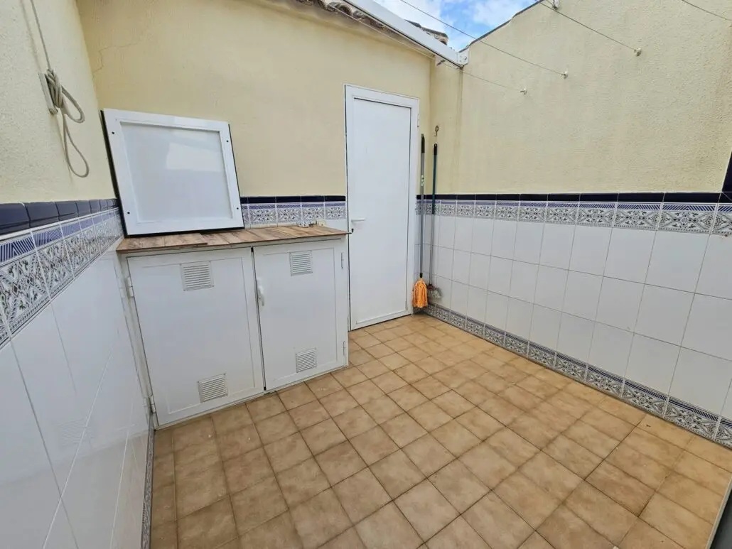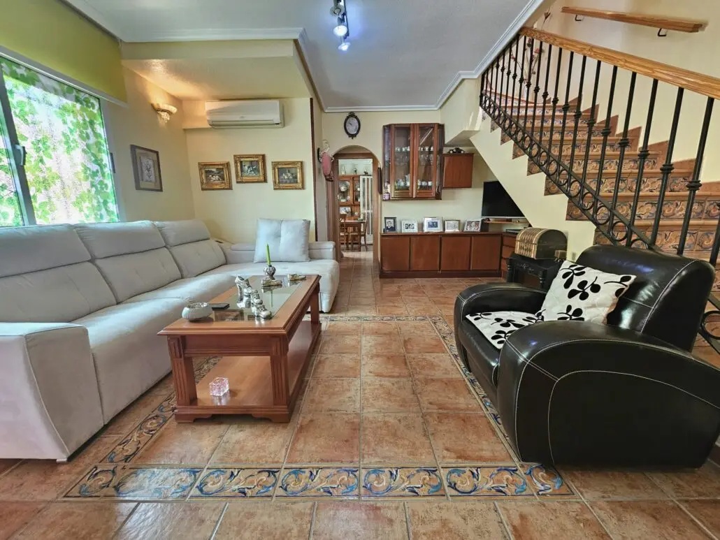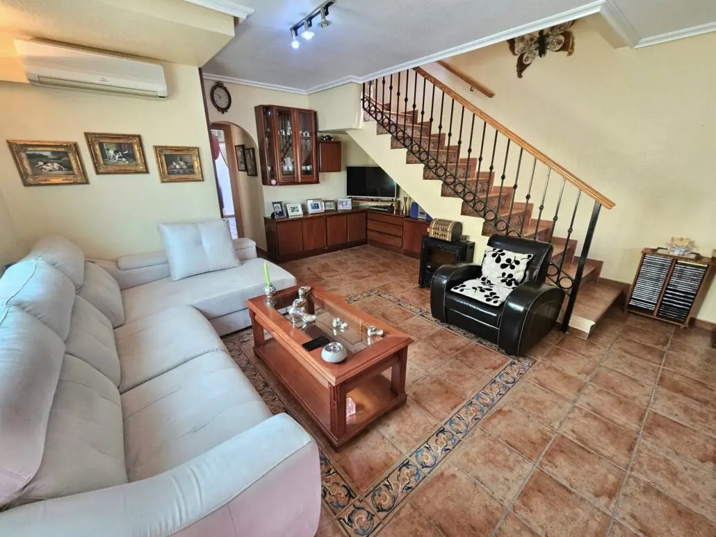 We present this South East facing three bedroom bungalow close to the centre of Los Alcazares and 600m from the beach.This fantastic corner plot townhouse is the perfect family home.Less than 10 minutes walk from the Manzanares Beach in Los Alcazares and even closer to the main centre of this busy Spanish town, this property is a real 'home', not just a house.Enter the southeast facing terrace with a security gate and be greeted by a large and sunny terrace with a fully retractable awning, ideal for adding a little shade when needed.Entering the property through the very functional and useful porch area, perfect for kicking off your sandy shoes. Continue into the large living room which has been well loved and cared for by its current owner. From the living room, the downstairs bathroom can be accessed through a door that separates the kitchen and living room is a large, cosy kitchen and dining area. From this outside patio and utility room can be accessed as well as the rear access door.Upstairs there are three bedrooms and a large bathroom. The master bedroom has an enclosed balcony which can be opened to enjoy the sunny views.The property is located just a few minutes walk from the local sports centre, outdoor municipal swimming pool and local shops, bars, restaurants and facilities.