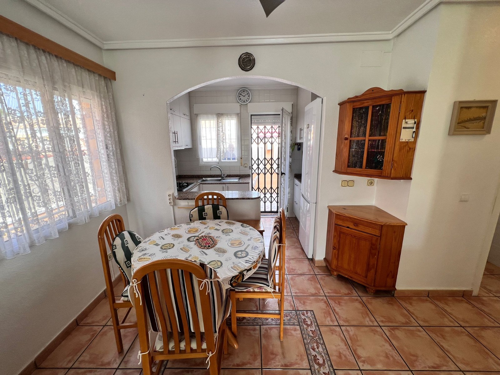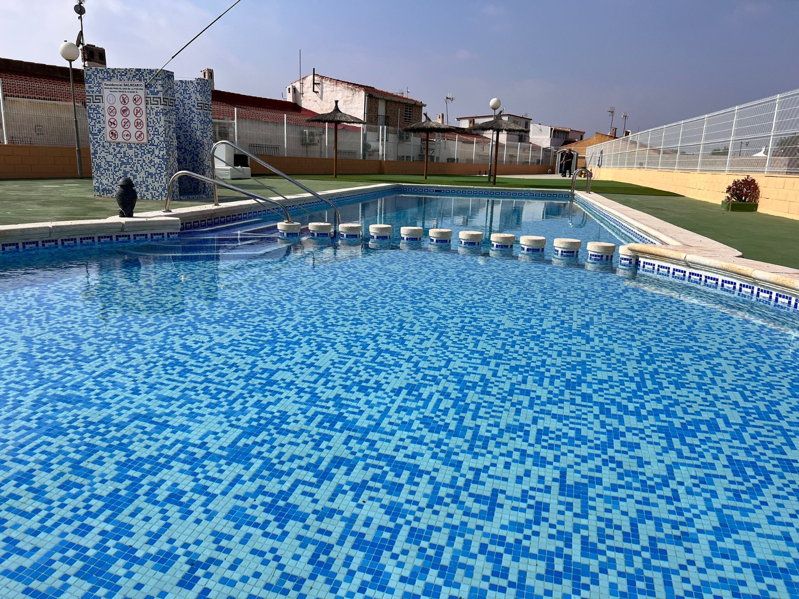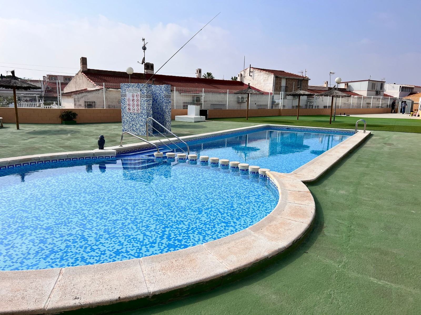 This charming townhouse is located in the vibrant coastal town of Torrevieja, offering a bright and comfortable living space. The home is well-maintained and filled with natural light, creating a warm and inviting atmosphere. Inside, there are two spacious bedrooms with built-in storage, a well-appointed bathroom, and a separate kitchen that provides a practical and functional layout. Situated within a welcoming community, residents can enjoy access to a shared swimming pool, perfect for relaxing on sunny days. A private parking space adds extra convenience. The property is within easy reach of local amenities, beautiful beaches, and golf courses, making it an ideal choice for both holiday getaways and year-round living.