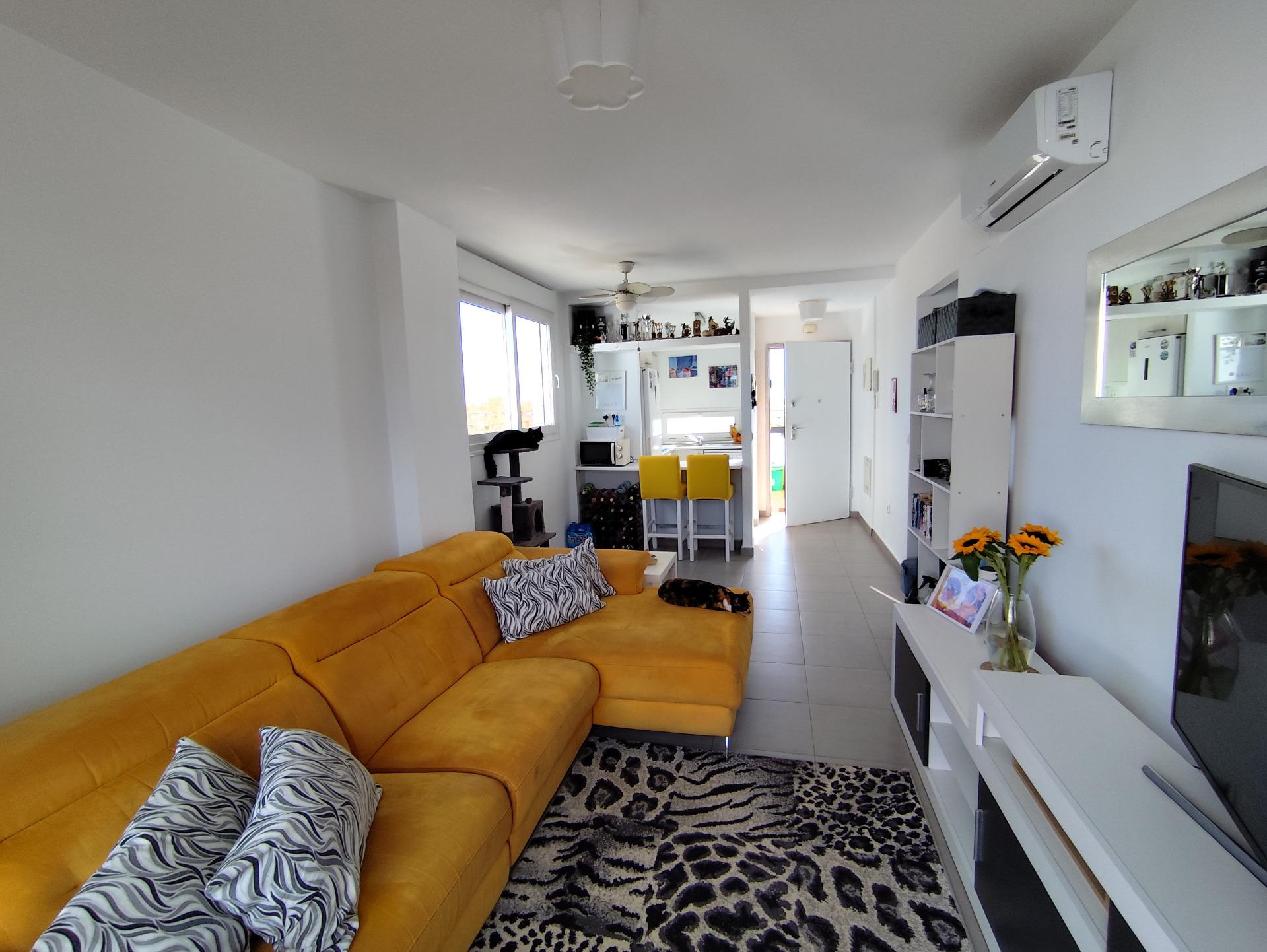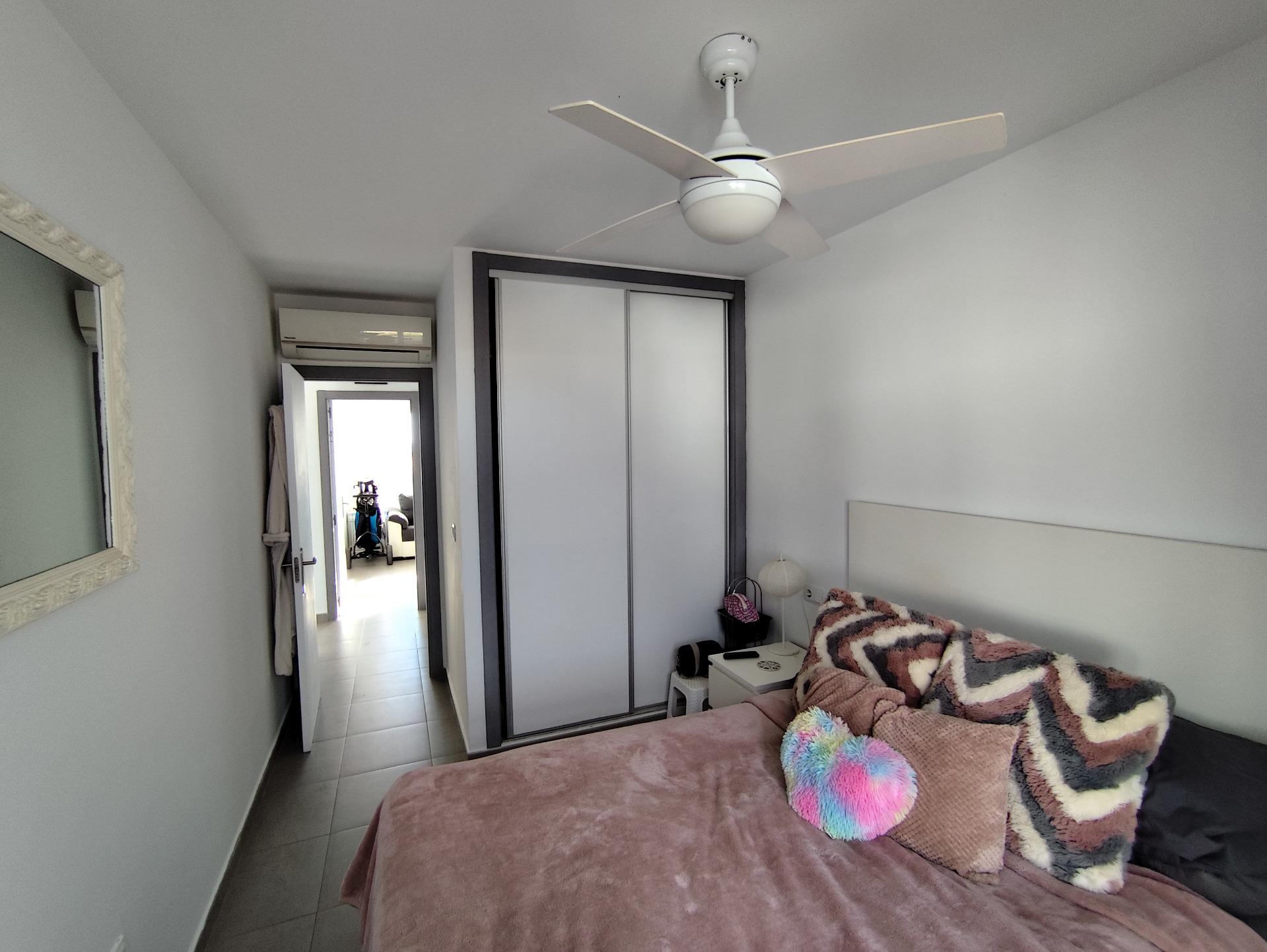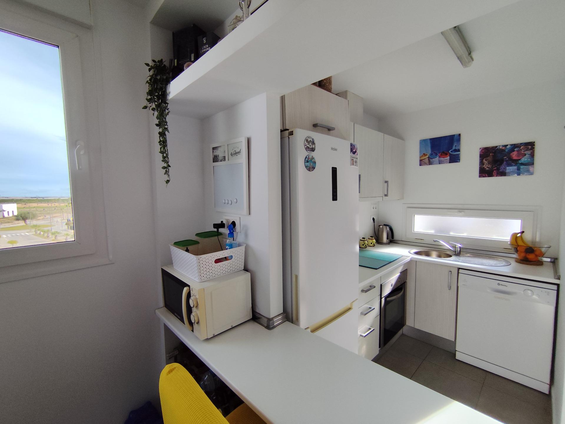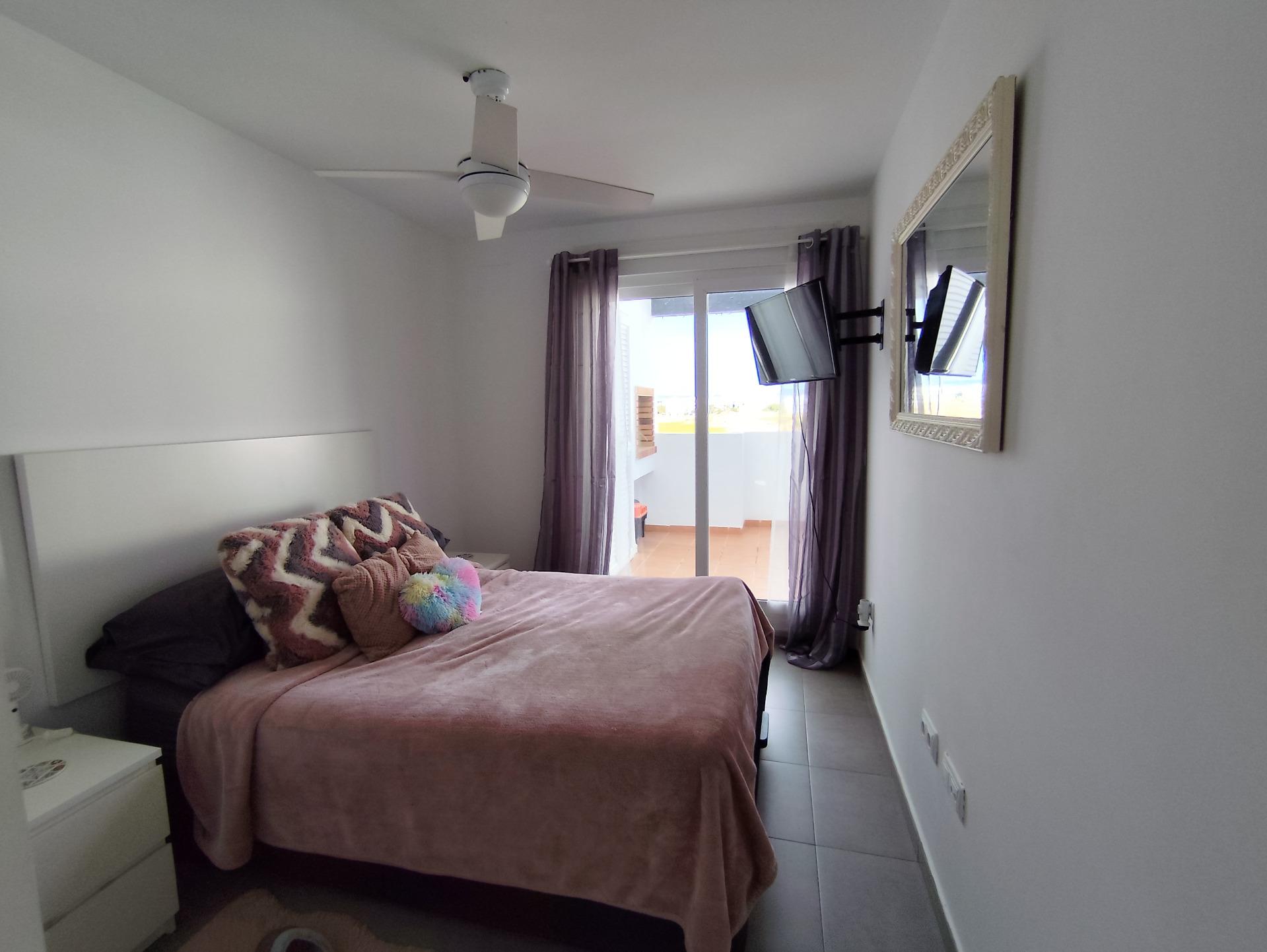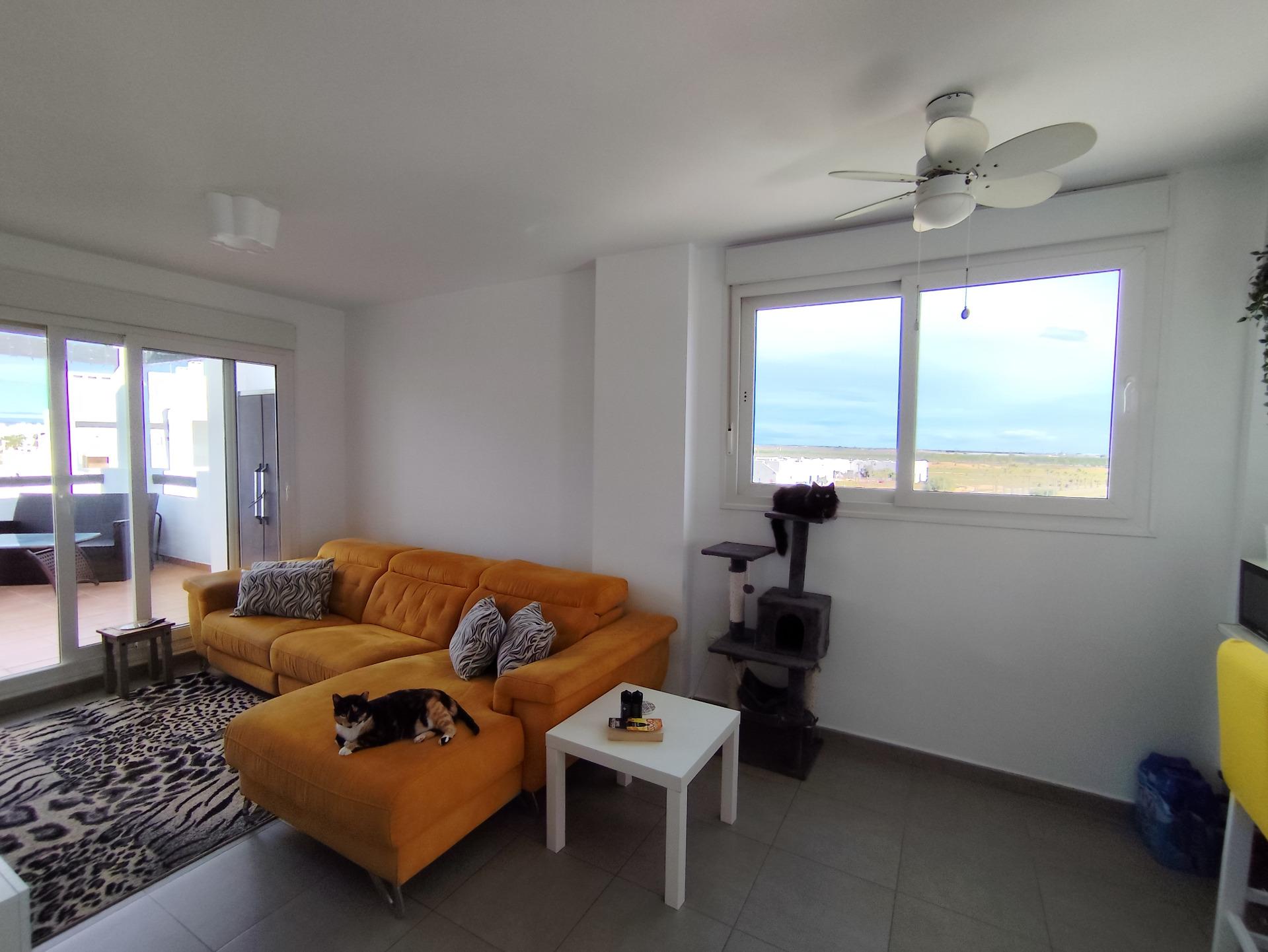 Top floor, 2 Bed Corner apartment in Phase 2 of the Golf Resort of Las Terrazas De La Torre. This property has stunning over the golf course ! The kitchen is fully fitted with all white goods, and comes furnished throughout. There is also Full AC throughout the apartment. In between the 2 bedrooms there is a nice family bathroom. The bathroom has been updated and has a walk in shower. The terras is spacious and offers stunning views. The apartment is sold partly furnished. The apartment is located only a few minutes walk to the Resorts Clubhouse, Restaurant and Supermarket. There are 16 communual pools More businesses will be opening in the commercial center, which makes it the perfect time to buy on this resort. This complex has a single entrance and its facilities are fully fenced, with 24 hour security for the safety of its residents. If you are a golf fan you will be able to play on a 18 hole golf course created by Jack Nicklaus, whose semi-desert design blends in with the natural landscape, thus demonstrating a high degree of efficiency of natural resources. Offering fantastic value for money, phenomenal security and a superb location, Las Terrazas de la Torre is a wonderful resort that offers buyers the opportunity to find a beautiful home at an excellent price. It is just a short drive, 15 minutes, from the Mar Menor and Mediterranean coastlines, plus Murcia international airport and 20 minutes to Cartagena and Murcia.