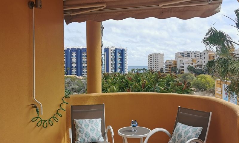 Spacious apartment located within the exclusive gated community of Panorama Park in Punta Prima. The property consists of 2 bedrooms and 2 bathrooms, a spacious living room with lots of natural light, an impeccably equipped kitchen and a terrace perfect for dining al fresco while enjoying the fascinating views. With underground garage and storage room, elevator, first floor. Located in the prestigious area, Panorama Park residents enjoy access to luxury amenities, including a community pool and green spaces, mini golf. With the beach just 300 meters away, quiet walks along the coast are a daily pleasure. Conveniently located within walking distance of the international airports of Murcia and Alicante, this idyllic retreat promises a Mediterranean lifestyle with 320 days of sunshine a year. Experience coastal living at its finest at this magnificent apartment in Panorama Park.