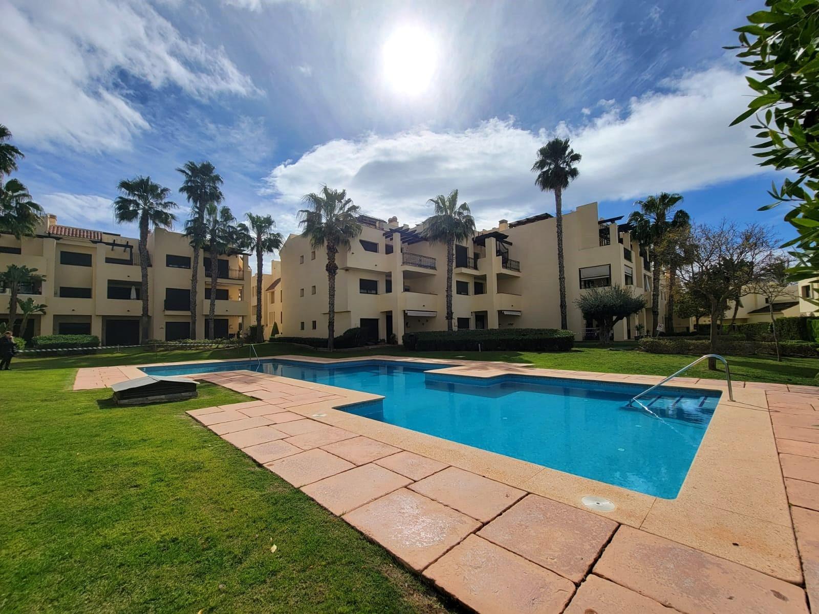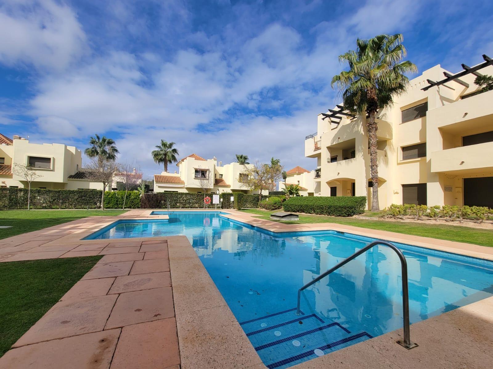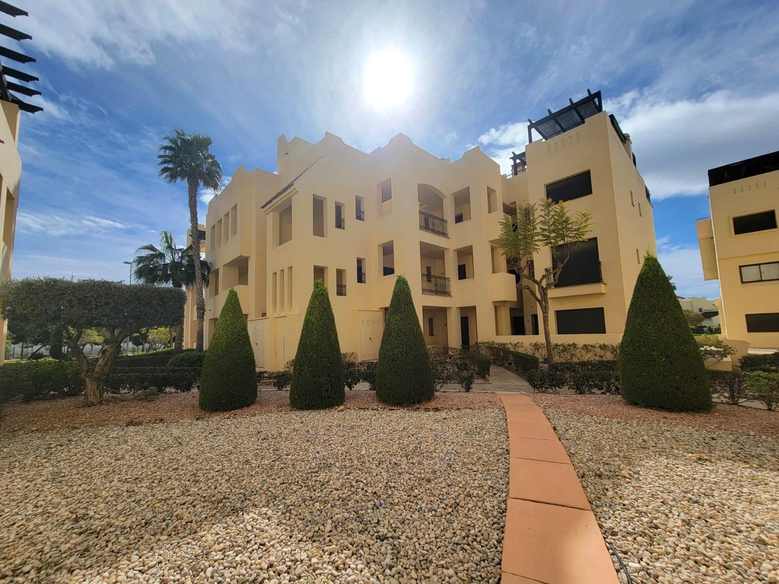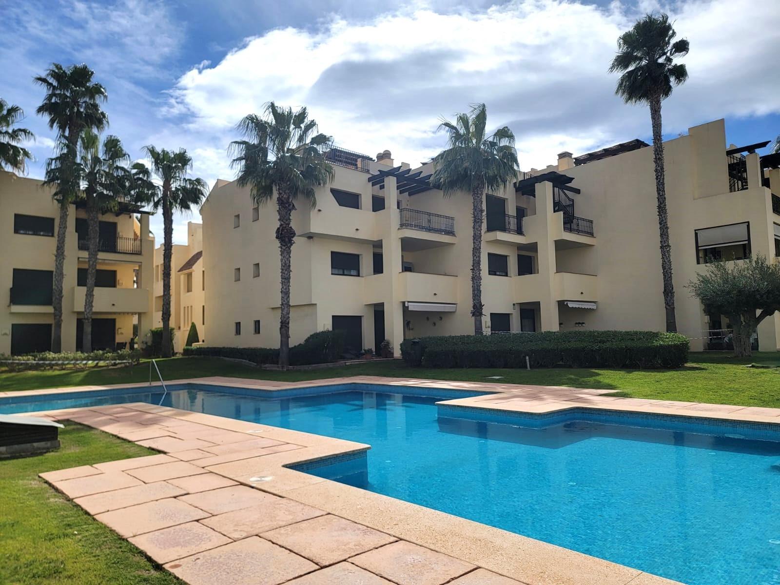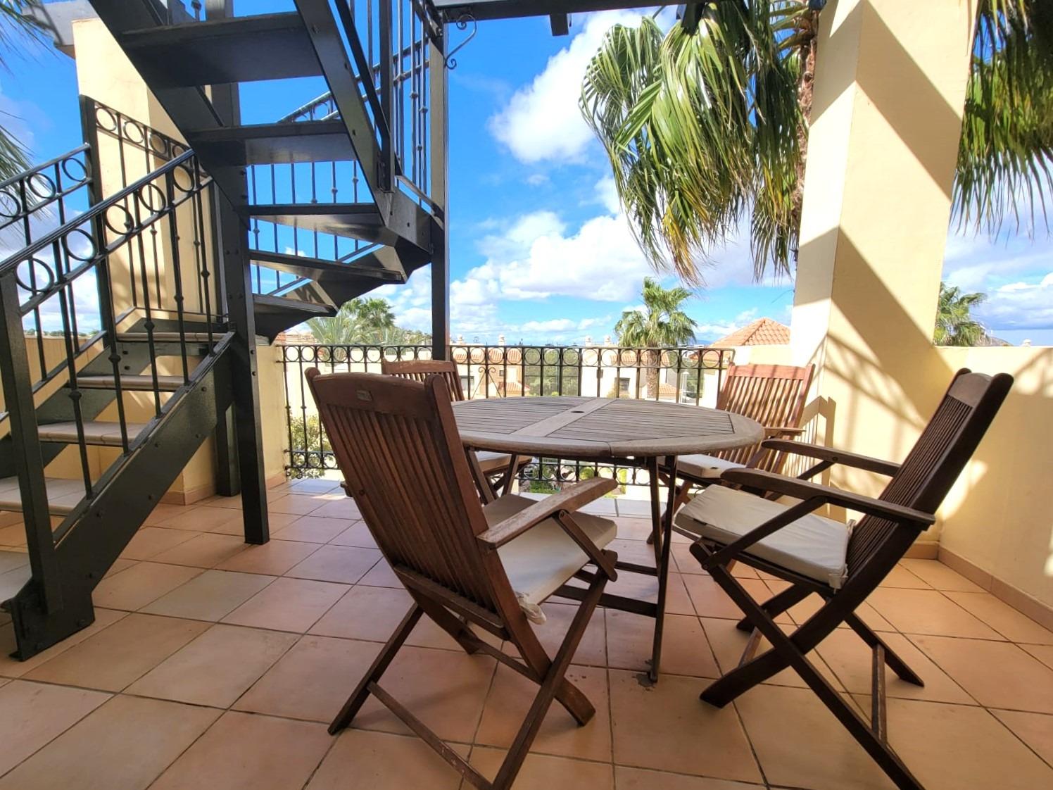 Large penthouse located in a Luxury Residential Complex in the Golf Courses near Murcia, surrounded by a natural landscape near the Mediterranean sea. With beautiful views from the solarium! It consists of a living room with a spacious terrace, a large fully equipped kitchen with access to a small patio, 2 double bedrooms (master bedroom with an en-suite bathroom) with built-in wardrobes, 2 bathrooms (one with bathtub, the other with Italian shower), a very large solarium, a storage room and an underground parking space. The solarium is accessed via an external staircase from the terrace. Furnished. Ducted air conditioning. Gas heating. In perfect condition. Modern and bright. High-quality materials. Elevator. 24-hour security. All located in a privileged area with swimming pools, gardens, sports areas (paddle tennis, and so on.), a Social Club, close to all amenities, about a 10-minute drive from San Javier and the beach.