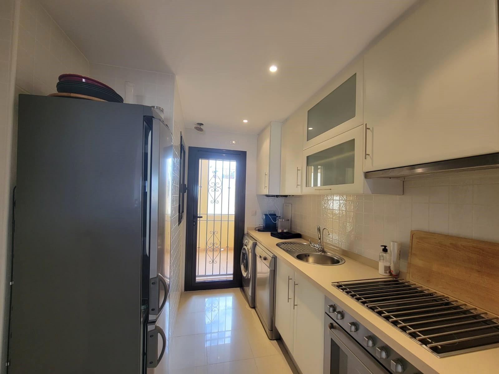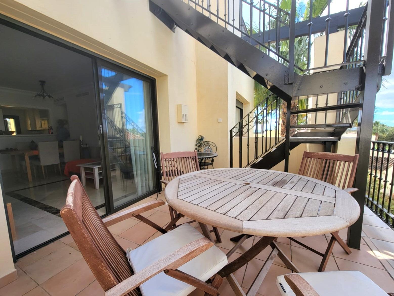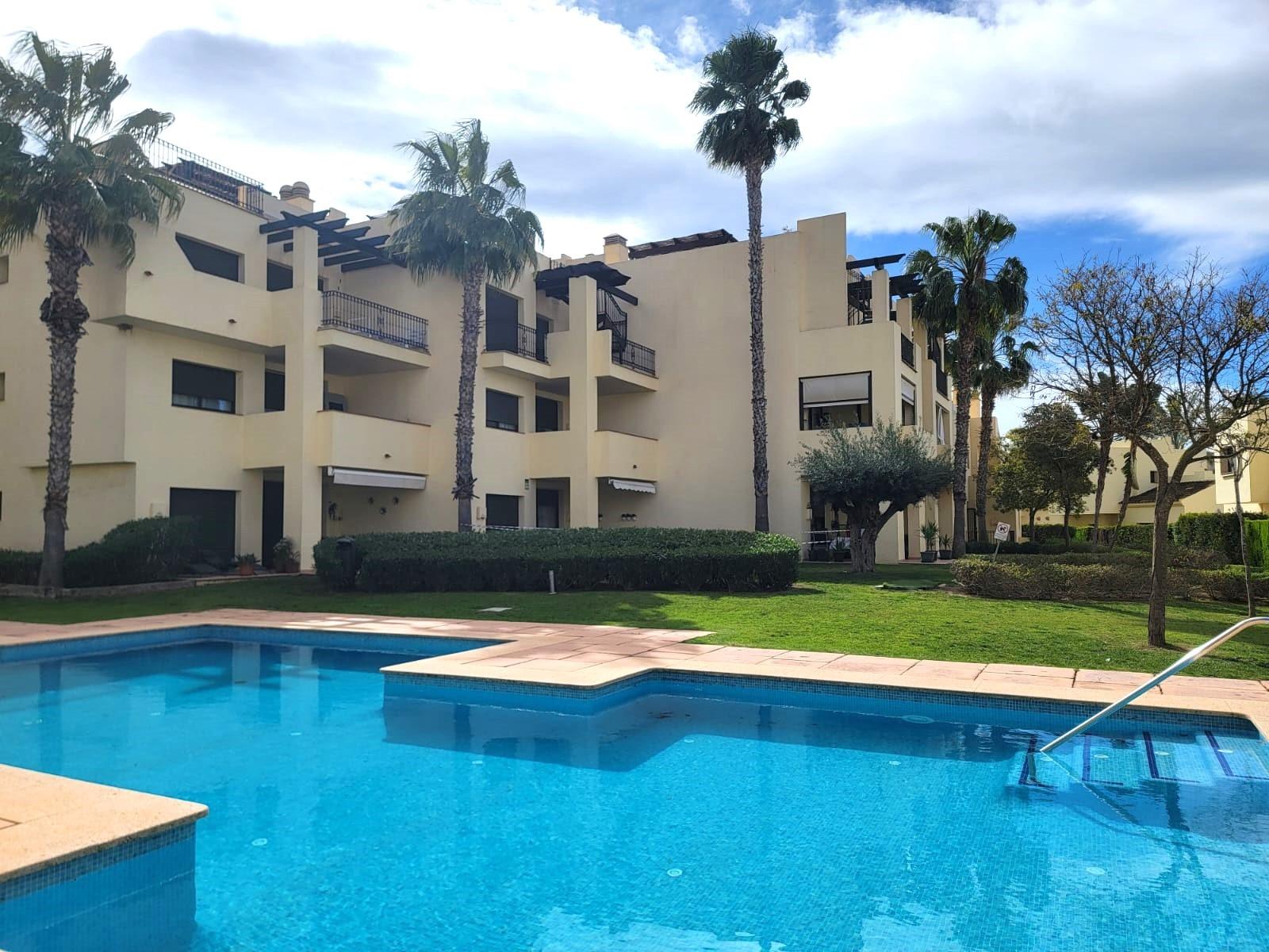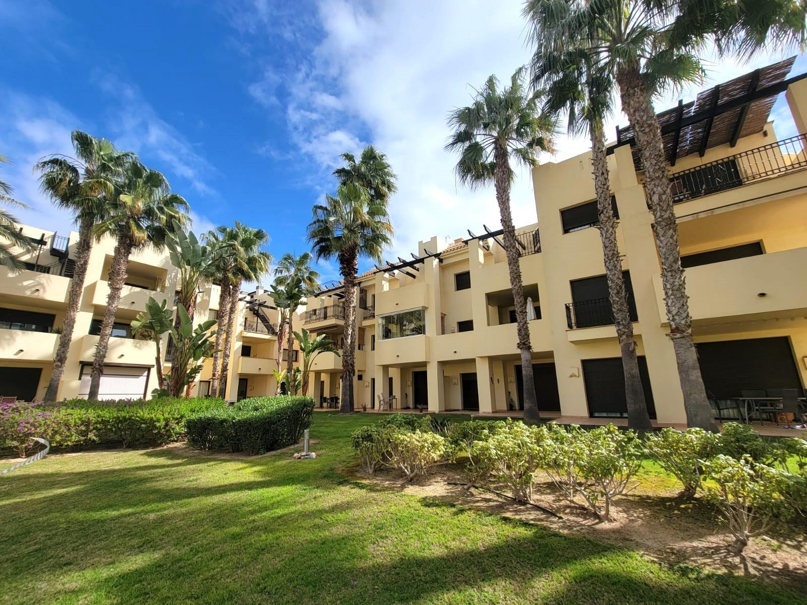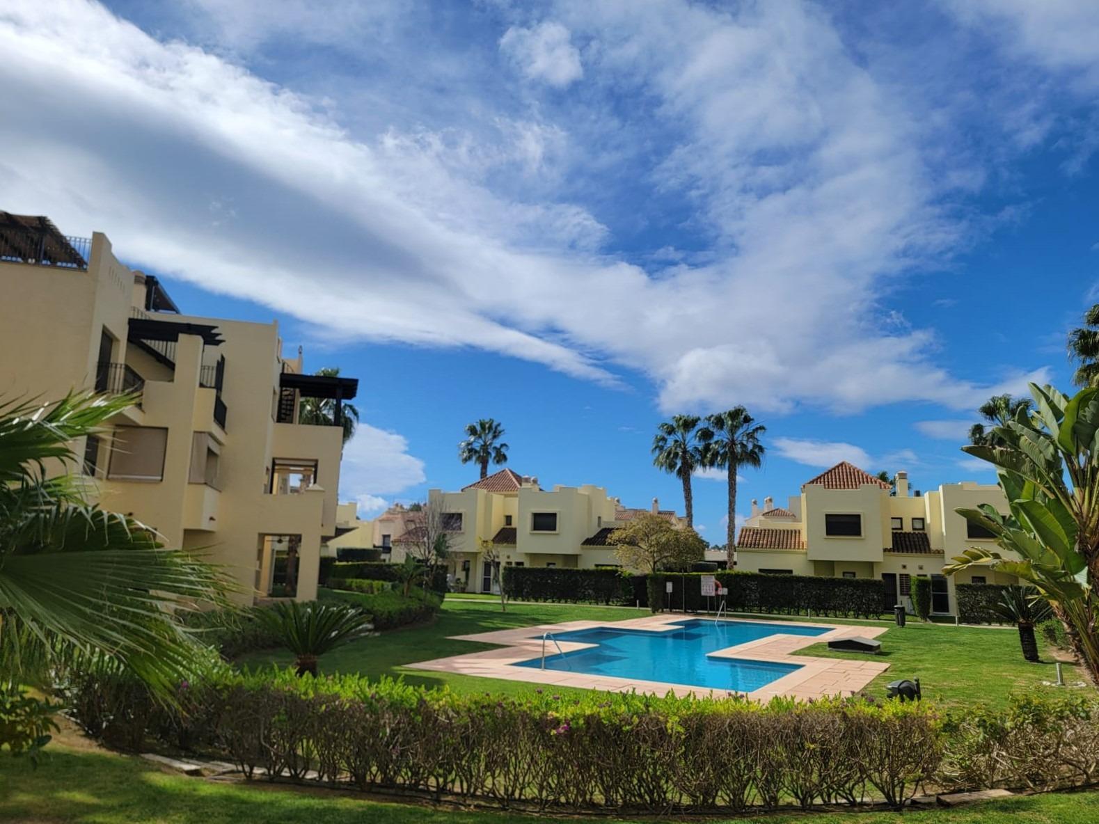 Large penthouse located in a Luxury Residential Complex in the Golf Courses near Murcia, surrounded by a natural landscape near the Mediterranean sea. With beautiful views from the solarium! It consists of a living room with a spacious terrace, a large fully equipped kitchen with access to a small patio, 2 double bedrooms (master bedroom with an en-suite bathroom) with built-in wardrobes, 2 bathrooms (one with bathtub, the other with Italian shower), a very large solarium, a storage room and an underground parking space. The solarium is accessed via an external staircase from the terrace. Furnished. Ducted air conditioning. Gas heating. In perfect condition. Modern and bright. High-quality materials. Elevator. 24-hour security. All located in a privileged area with swimming pools, gardens, sports areas (paddle tennis, and so on.), a Social Club, close to all amenities, about a 10-minute drive from San Javier and the beach.