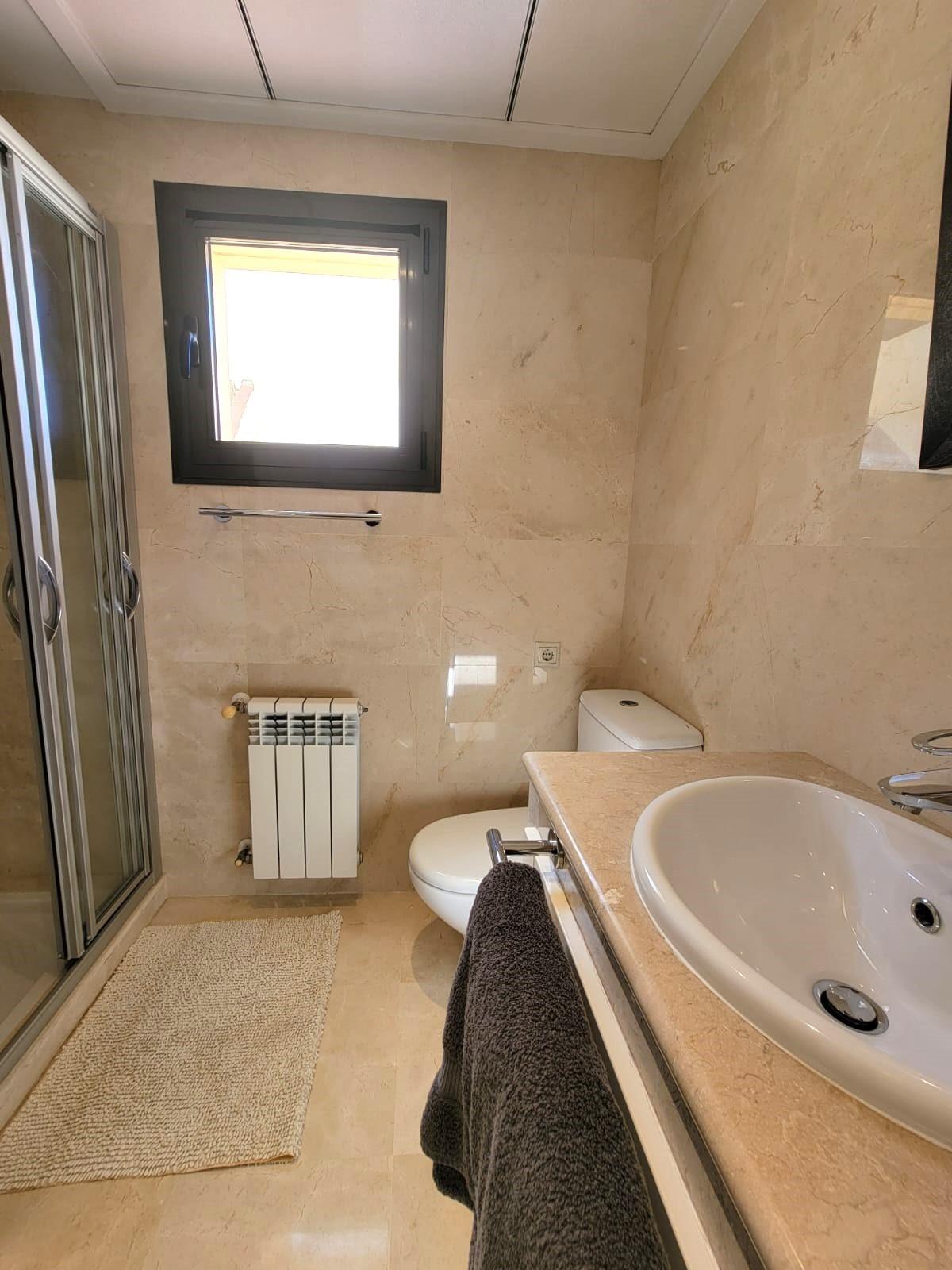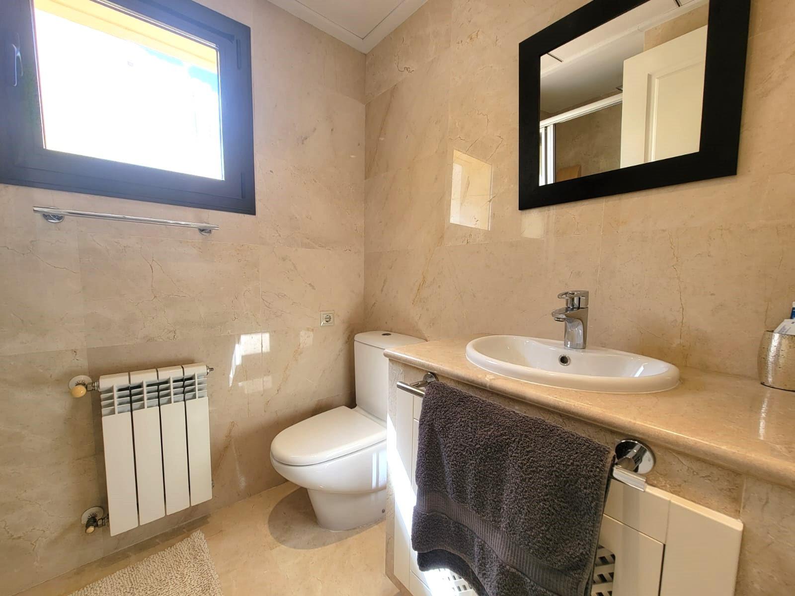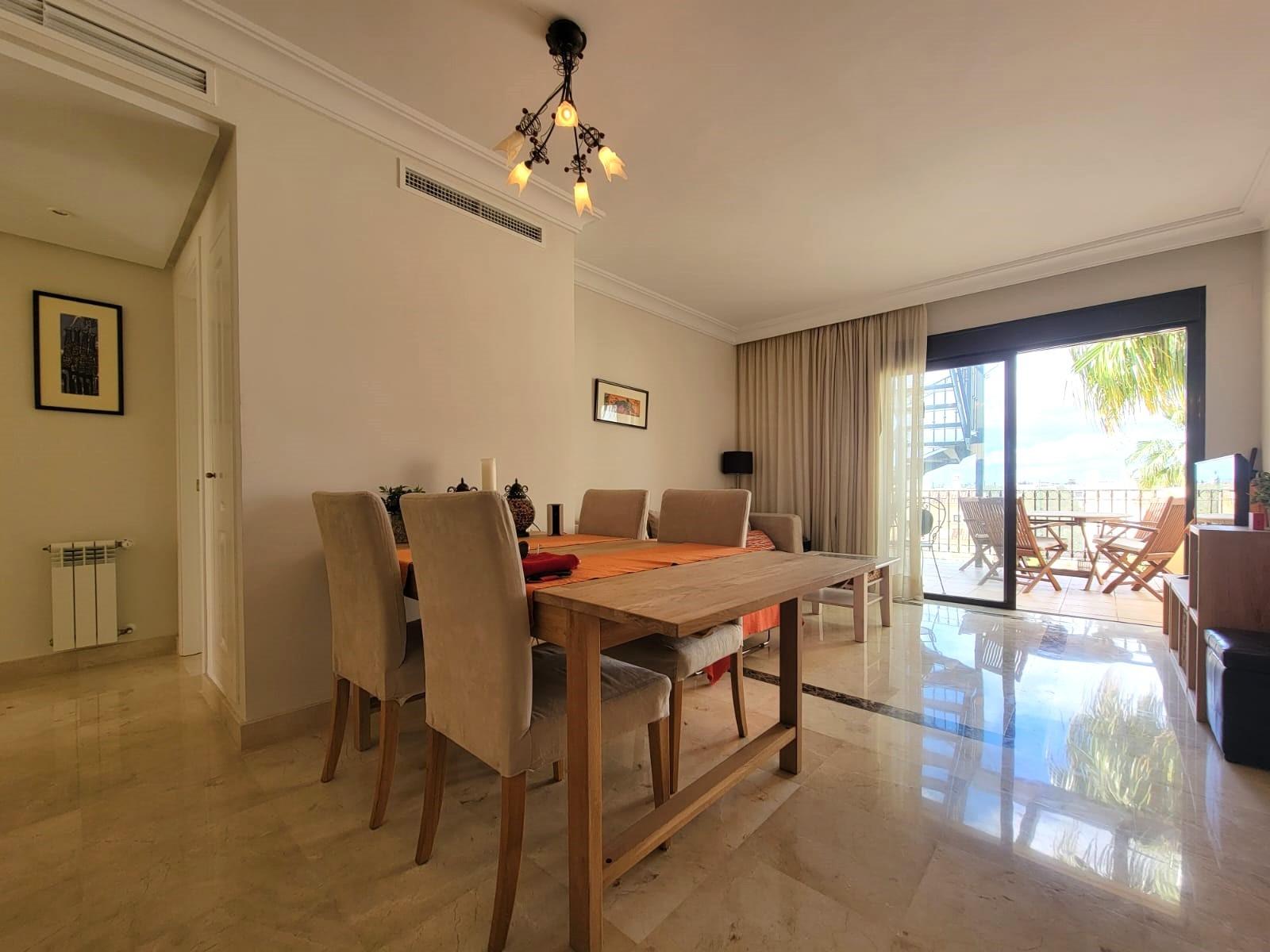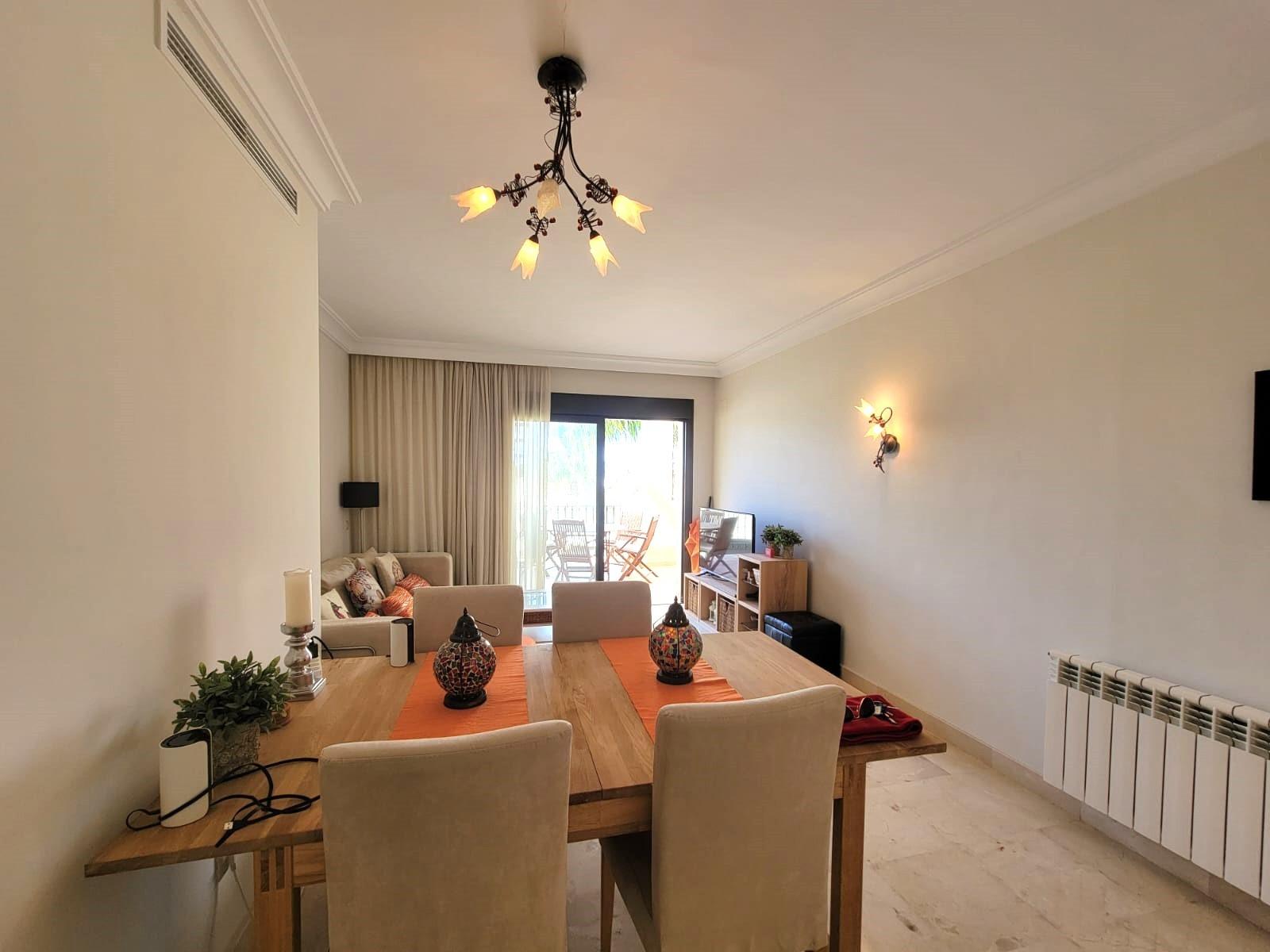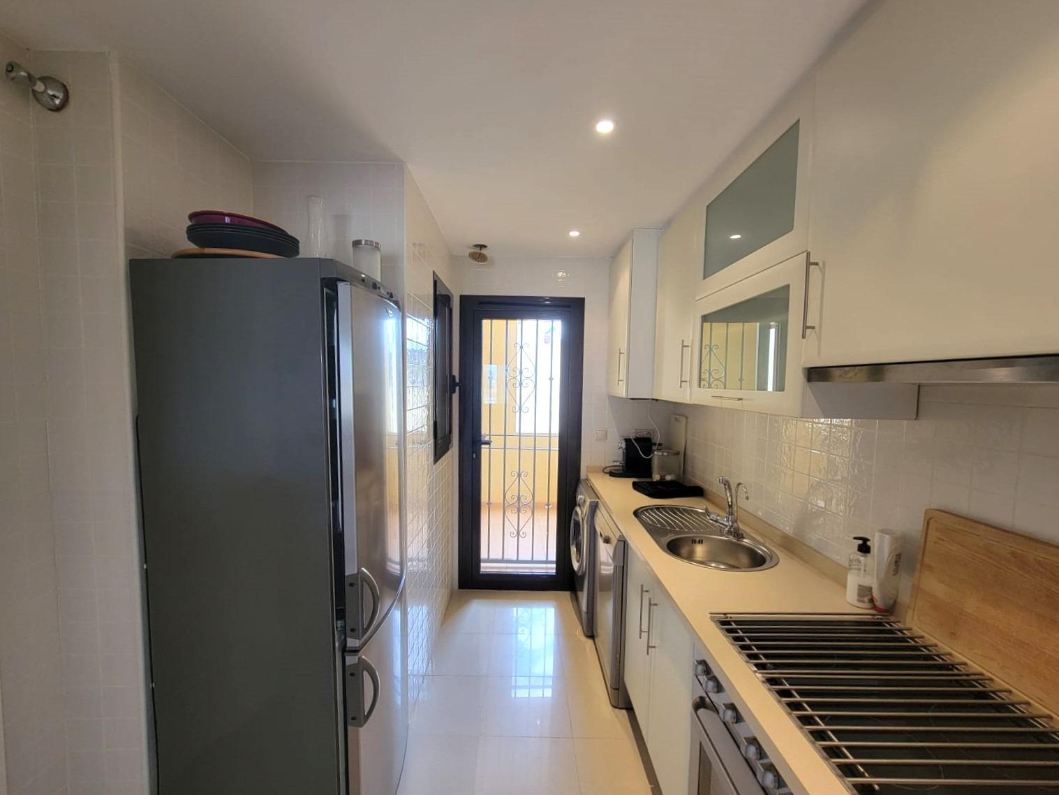 Large penthouse located in a Luxury Residential Complex in the Golf Courses near Murcia, surrounded by a natural landscape near the Mediterranean sea. With beautiful views from the solarium! It consists of a living room with a spacious terrace, a large fully equipped kitchen with access to a small patio, 2 double bedrooms (master bedroom with an en-suite bathroom) with built-in wardrobes, 2 bathrooms (one with bathtub, the other with Italian shower), a very large solarium, a storage room and an underground parking space. The solarium is accessed via an external staircase from the terrace. Furnished. Ducted air conditioning. Gas heating. In perfect condition. Modern and bright. High-quality materials. Elevator. 24-hour security. All located in a privileged area with swimming pools, gardens, sports areas (paddle tennis, and so on.), a Social Club, close to all amenities, about a 10-minute drive from San Javier and the beach.