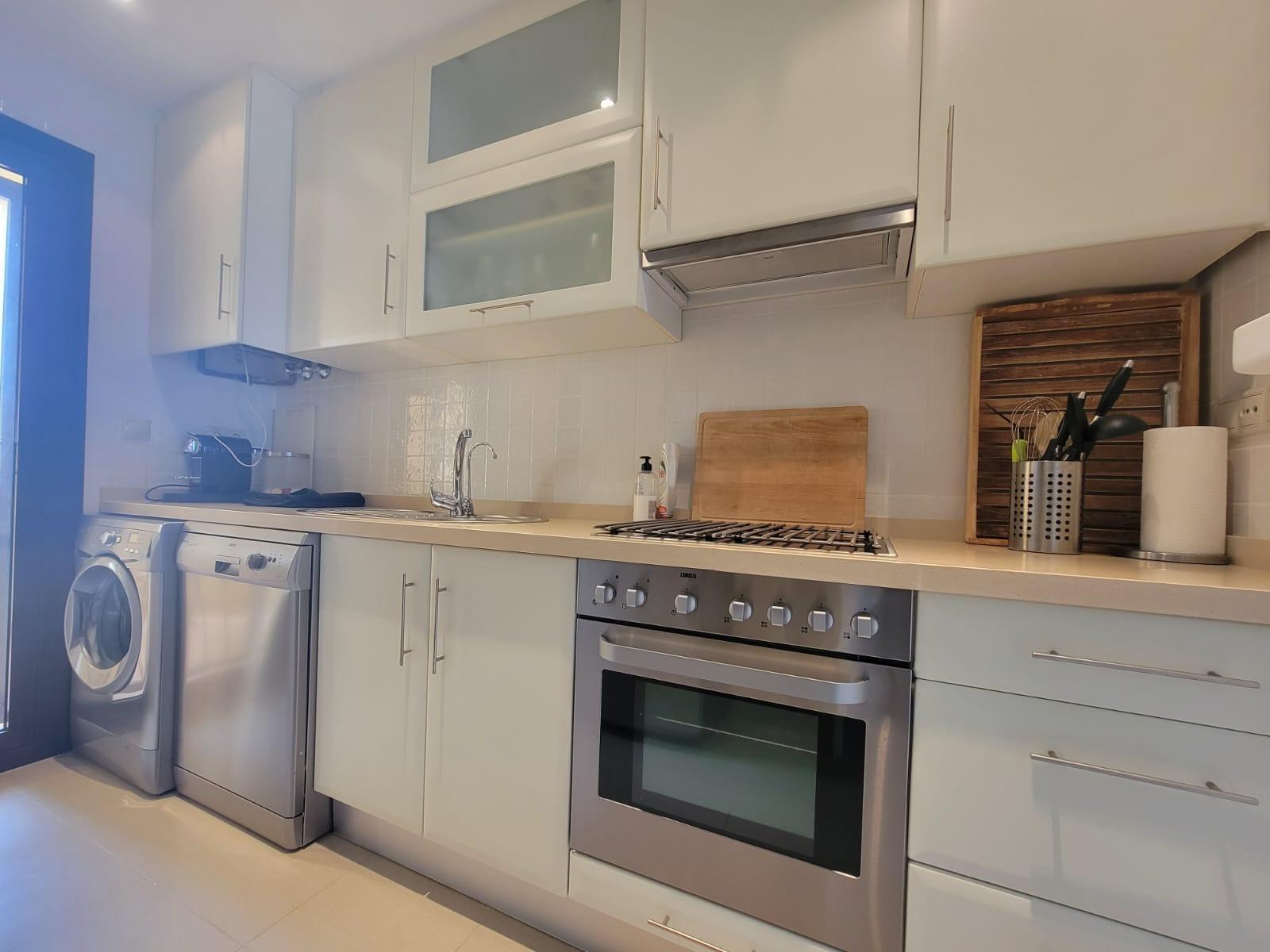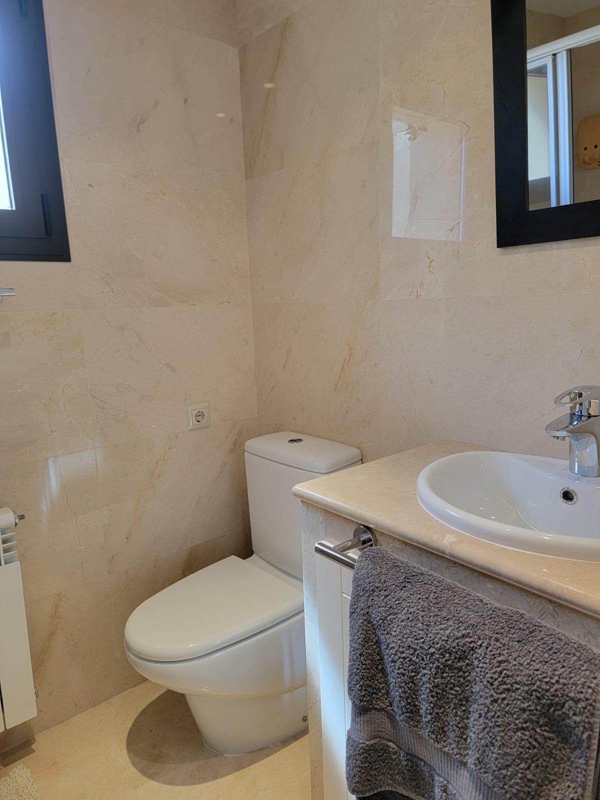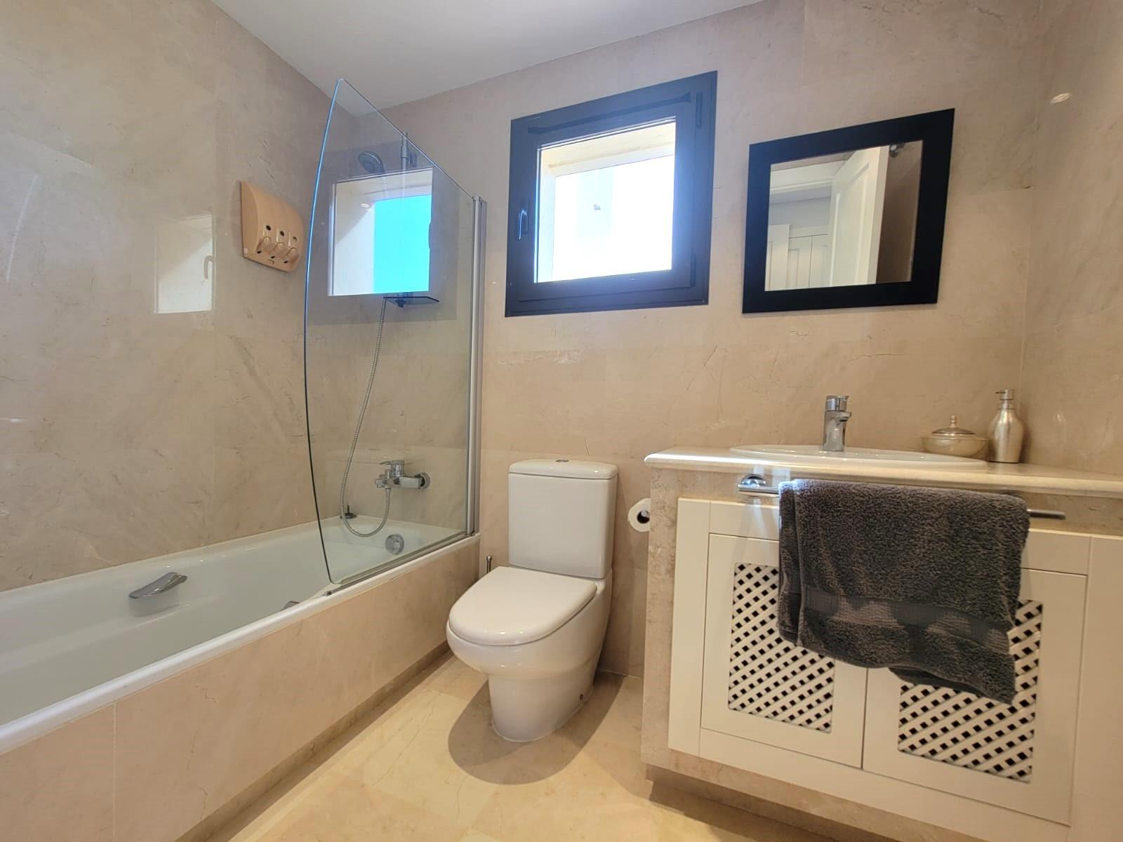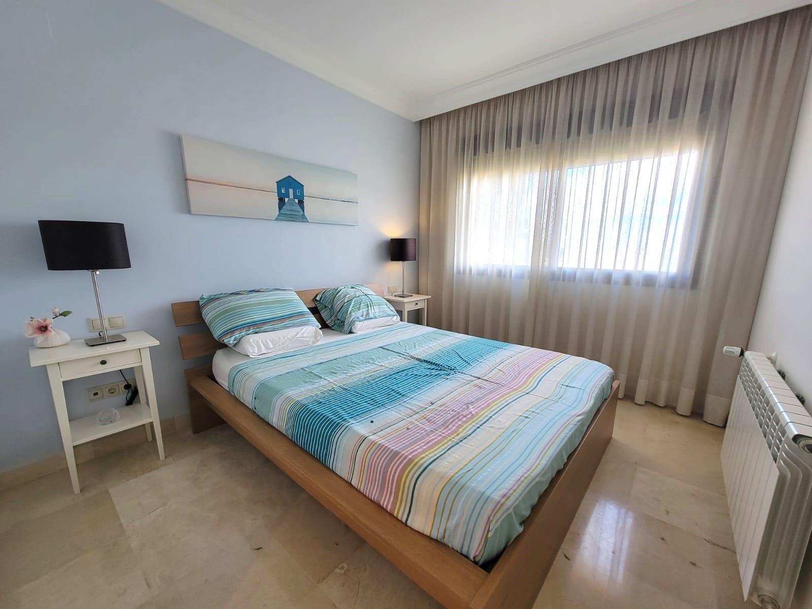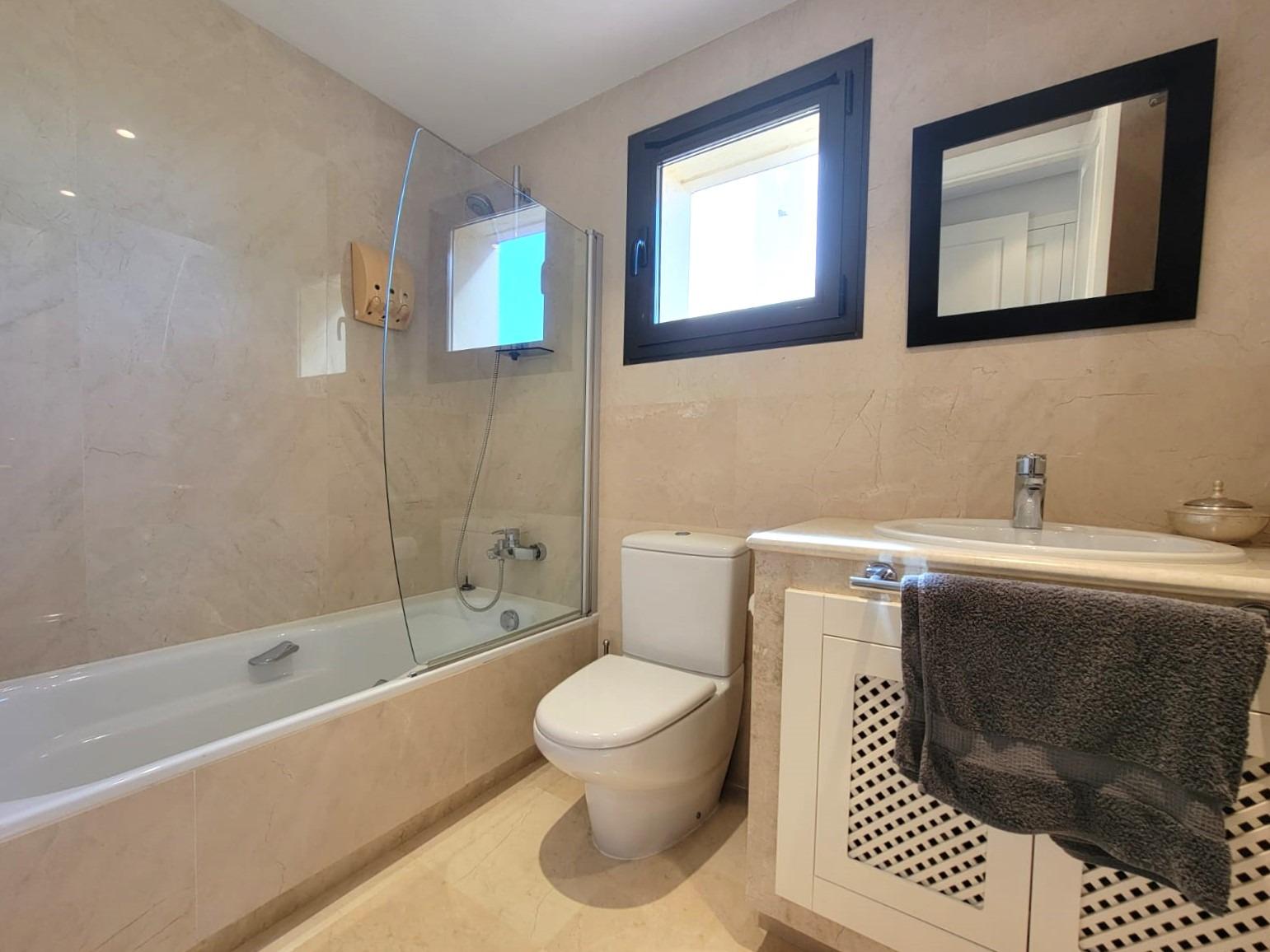Large penthouse located in a Luxury Residential Complex in the Golf Courses near Murcia, surrounded by a natural landscape near the Mediterranean sea. With beautiful views from the solarium! It consists of a living room with a spacious terrace, a large fully equipped kitchen with access to a small patio, 2 double bedrooms (master bedroom with an en-suite bathroom) with built-in wardrobes, 2 bathrooms (one with bathtub, the other with Italian shower), a very large solarium, a storage room and an underground parking space. The solarium is accessed via an external staircase from the terrace. Furnished. Ducted air conditioning. Gas heating. In perfect condition. Modern and bright. High-quality materials. Elevator. 24-hour security. All located in a privileged area with swimming pools, gardens, sports areas (paddle tennis, and so on.), a Social Club, close to all amenities, about a 10-minute drive from San Javier and the beach.