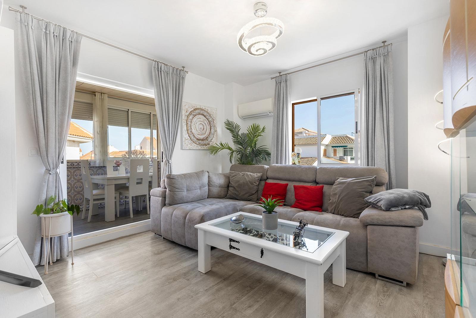 Vi presenterar en magnifik takvåning, helrenoverad, som kombinerar komfort, design och privilegierat läge. Detta hem har tre stora sovrum, perfekta för att säkerställa komforten för hela familjen, och två rymliga badrum, designade för att erbjuda funktionalitet och stil. Dess fördelning optimerar naturligt ljus och framhäver dess östorientering, vilket ger ljusstyrka och trevlig utsikt varje morgon. Takvåningen säljs halvmöblerad, redo att anpassas efter din personliga stil. Det ligger i en urbanisering med en gemensam pool, perfekt för att njuta av stunder av avkoppling och nöje i en lugn och säker miljö.Dessutom innehåller hemmet en bekväm parkeringsplats, perfekt för att garantera säkerheten för ditt fordon och erbjuda dig större komfort i ditt dagliga liv. Beläget bara 350 meter från stranden, kan du njuta av havsbrisen och långa promenader vid havet. Dess strategiska läge erbjuder också tillgång till alla grundläggande tjänster, såsom ett hälsocenter, köpcentrum, stormarknader och restauranger, vilket garanterar komfort i ditt dagliga liv. Ett idealiskt hem både att bo i året runt och att njuta av din semester! Är du intresserad? Kontakta oss för mer information eller för att organisera ett besök.
