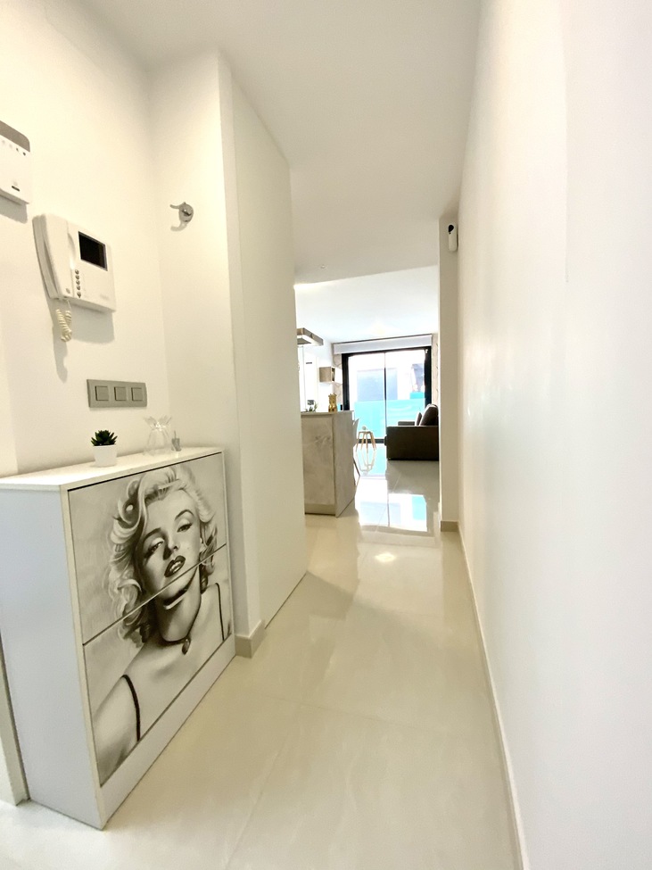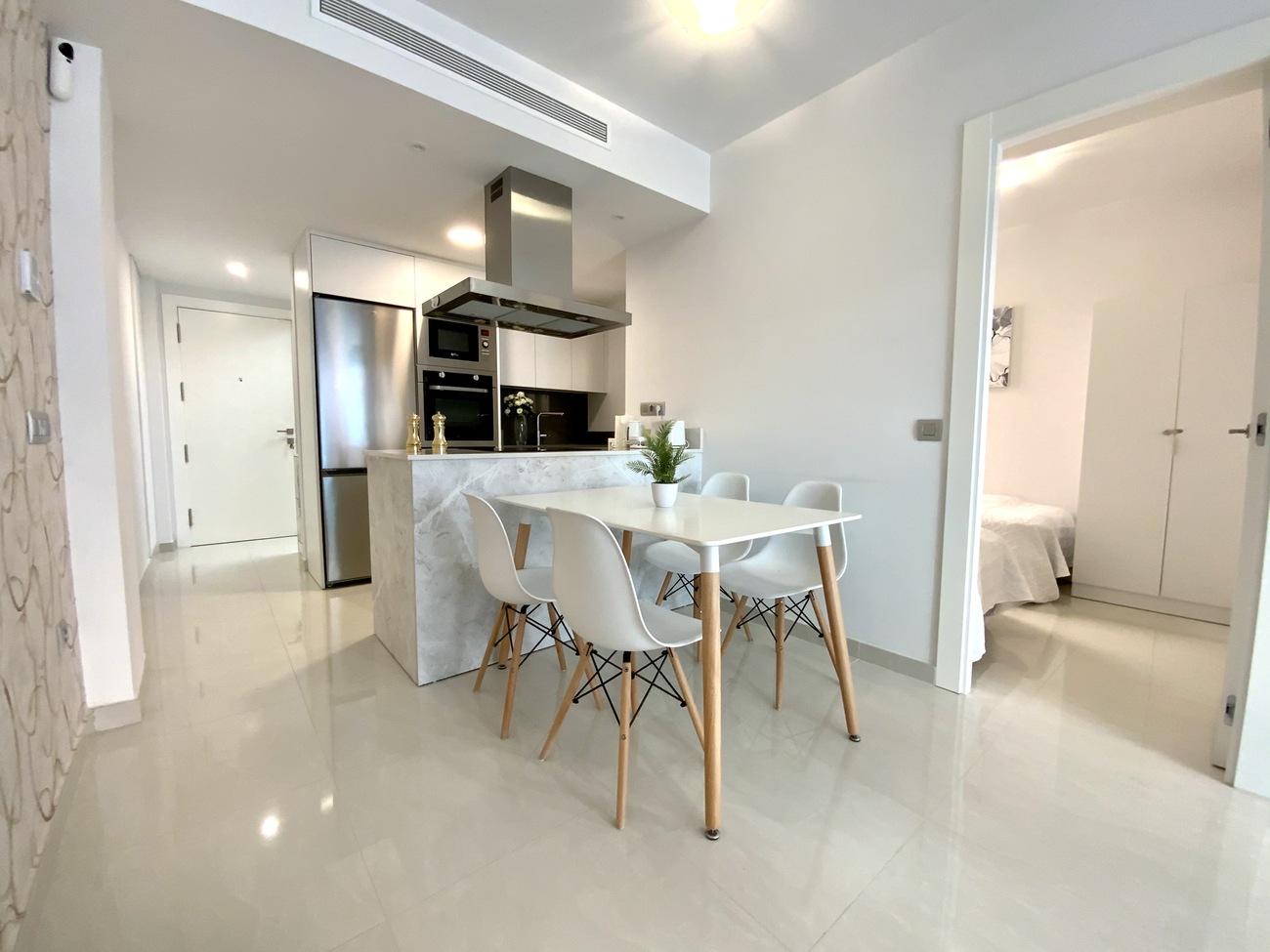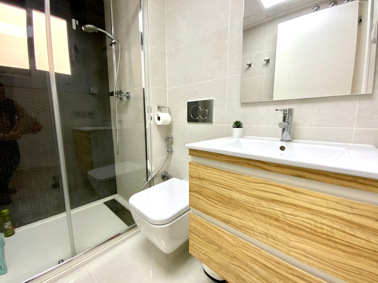 Denna eleganta lägenhet på 68 m² till salu erbjuder en modern och högkvalitativ distribution, utformad för att ge komfort och stil. Den har två mysiga sovrum, båda med stora inbyggda garderober, perfekt för att säkerställa en lugn vila. Badrummet, helt renoverat, är utrustat med en modern dusch och ytbehandlingar av högsta kvalitet, vilket ger ett avkopplande och funktionellt utrymme.Köket, öppet och fullt utrustat med avancerade apparater, integreras perfekt med det ljusa vardagsrummet, vilket skapar en öppen och trevlig atmosfär. Från vardagsrummet finns tillgång till en liten terrass, ett idealiskt utomhusutrymme för att njuta av stunder utomhus, koppla av eller dela med familj och vänner.Byggnaden, med modern design, har en gemensam pool som gör att du kan njuta av det goda vädret och koppla av utan att lämna hemmet. Läget för lägenheten är utmärkt, med enkel tillgång till transport, butiker, restauranger och andra tjänster, vilket garanterar en snabb och bekväm anslutning till resten av staden.Denna lägenhet är det perfekta valet för dem som letar efter ett modernt, väl fördelat, funktionellt hem i ett utmärkt läge. Perfekt både för åretruntboende och för att njuta av en semesterbostad.