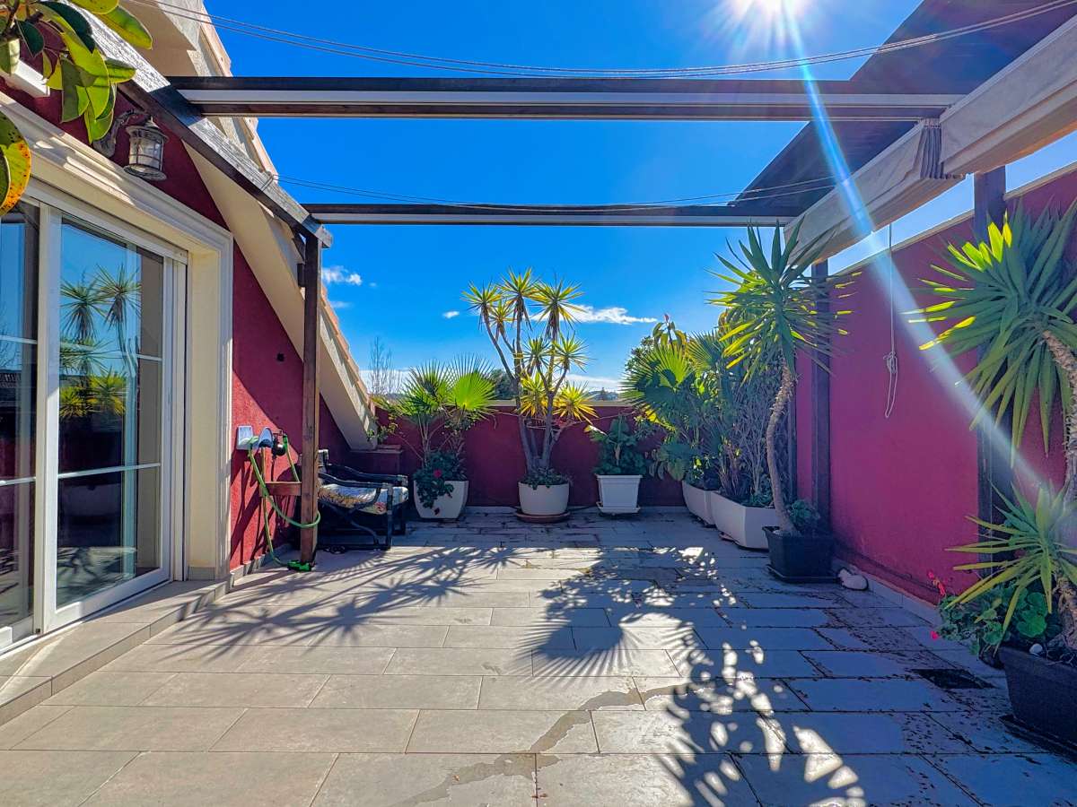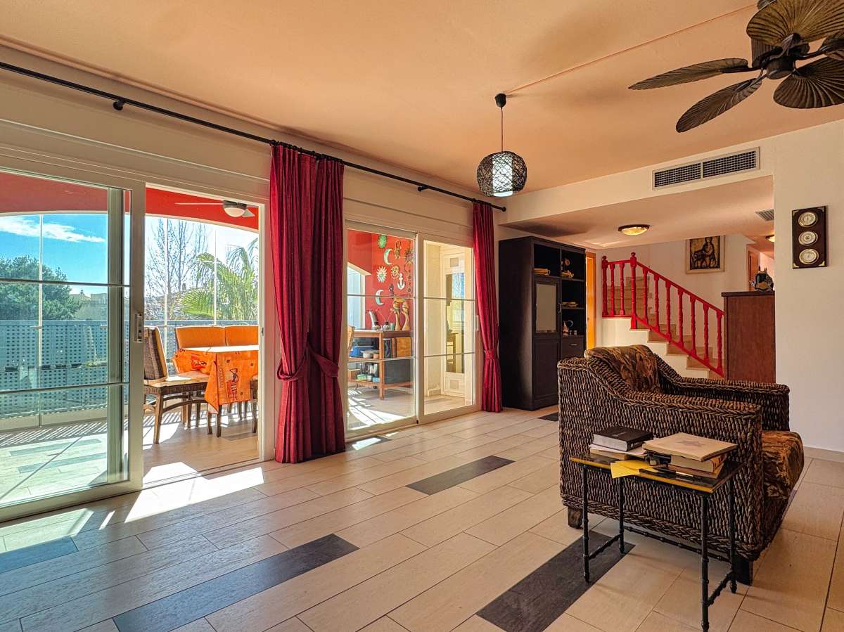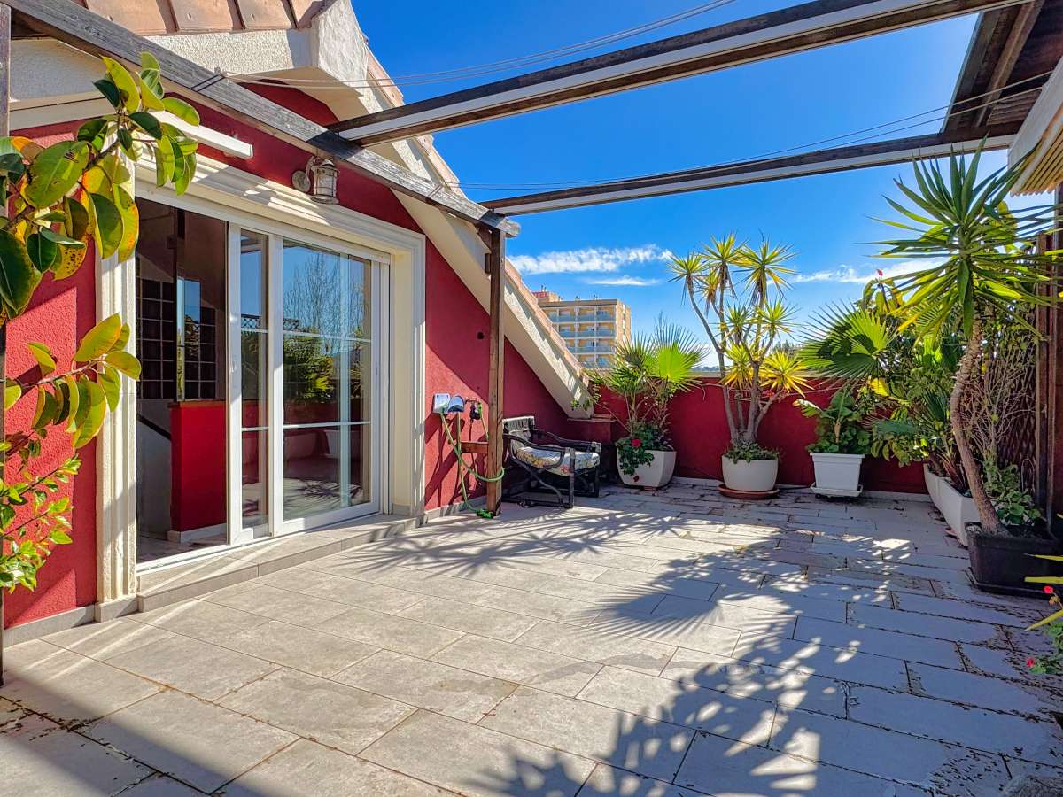 Incredible duplex penthouse located in a well-maintained residential complex in Montañar I, just a short walk from Arenal beach in Jávea. The development offers excellent amenities, including a swimming pool, landscaped gardens, and a children's play area.The property is distributed over two levels. The main floor features an inviting entrance hall that leads to a spacious, bright living/dining area, which opens onto a south-facing glazed terrace with beautiful views of the Canal. The independent kitchen is fully equipped, and there are two bedrooms, each with built-in wardrobes, and two bathrooms—one of which is en-suite.Upstairs, an internal staircase leads to a large, private space with a master bedroom, a full bathroom, a cozy fireplace, and a spectacular terrace/solarium of around 30 m², offering panoramic views to the north and south.Additional features include hot/cold air conditioning throughout the bedrooms, a double parking space, a storage room in the basement, and an elevator for easy access.