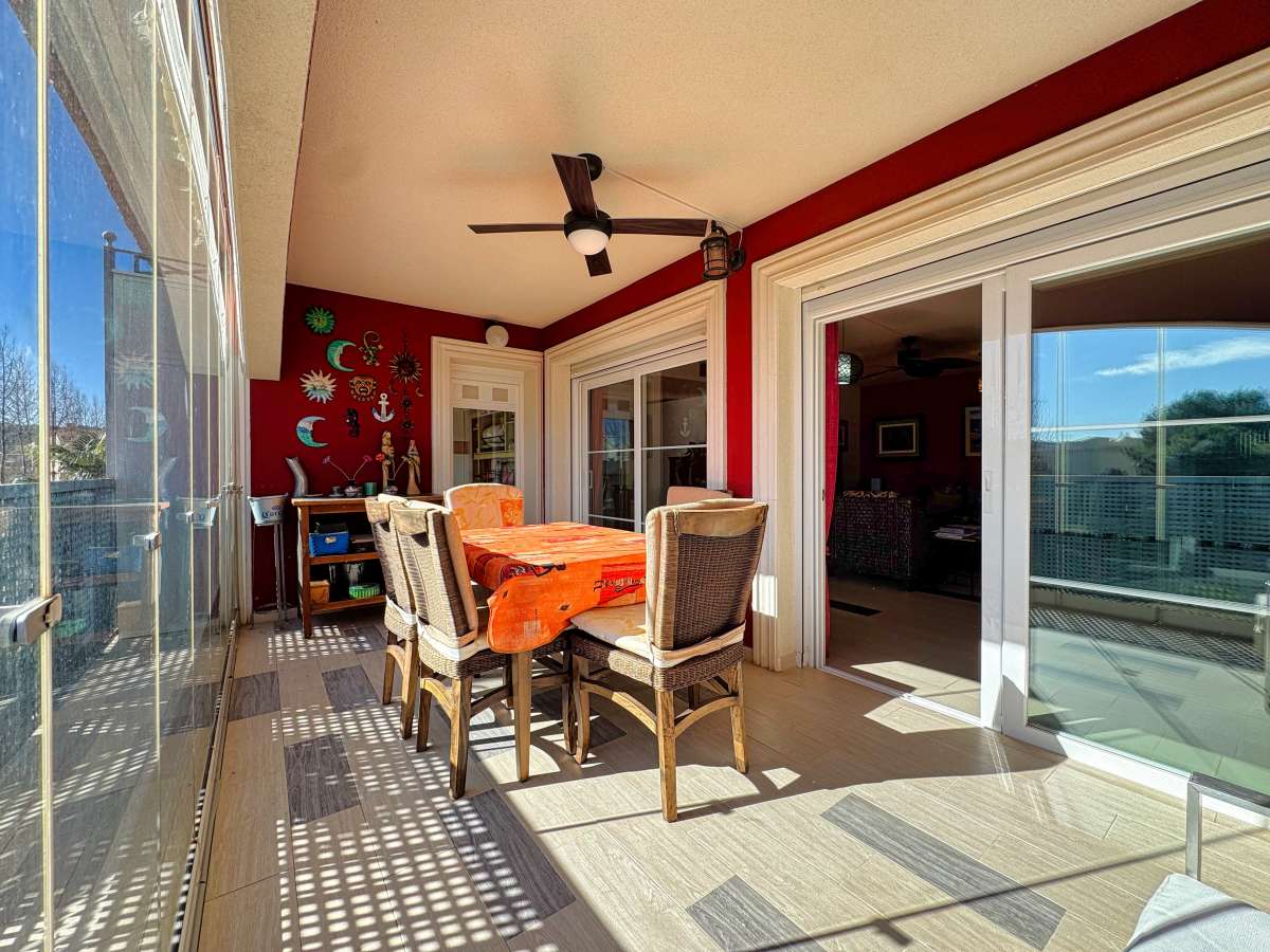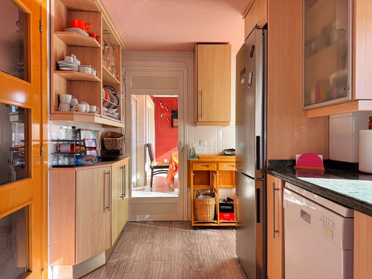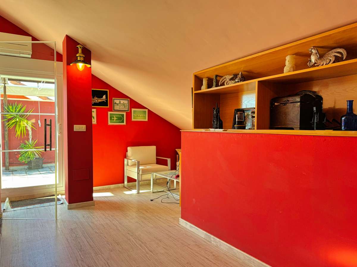 Incredible duplex penthouse located in a well-maintained residential complex in Montañar I, just a short walk from Arenal beach in Jávea. The development offers excellent amenities, including a swimming pool, landscaped gardens, and a children's play area.The property is distributed over two levels. The main floor features an inviting entrance hall that leads to a spacious, bright living/dining area, which opens onto a south-facing glazed terrace with beautiful views of the Canal. The independent kitchen is fully equipped, and there are two bedrooms, each with built-in wardrobes, and two bathrooms—one of which is en-suite.Upstairs, an internal staircase leads to a large, private space with a master bedroom, a full bathroom, a cozy fireplace, and a spectacular terrace/solarium of around 30 m², offering panoramic views to the north and south.Additional features include hot/cold air conditioning throughout the bedrooms, a double parking space, a storage room in the basement, and an elevator for easy access.