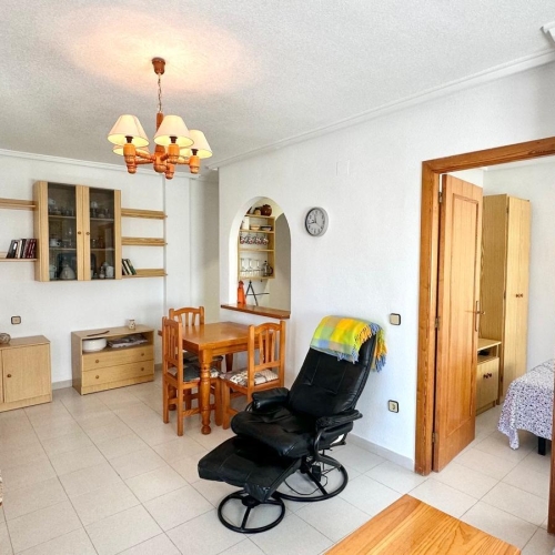 Renoverad takvåning till salu - Torrevieja centrumUnik möjlighet i hjärtat av Torrevieja!Vacker helrenoverad takvåning till salu, belägen bara 300 meter från stadshuset, i ett centralt område med alla tjänster i närheten.Fastigheten har följande egenskaper:1 ljust och rymligt sovrumVardagsrum/matsal med kök i öppen planlösningModernt och funktionellt badrumStor 18 m² stor terrass, perfekt för att njuta av solen och den friska luftenSydostlig orientering, mycket soligt hela dagenLuftkonditionering (varm och kall)Säkerhet bepansrad dörrSäljs fullt möblerad med helt nya vitvarorByggnad med hissPerfekt som permanent bostad eller en hyresinvestering, tack vare sitt utmärkta läge och inflyttningsklara skick.IBI - 142 EUROS PER YEARCOMM- 118 EUROS X4